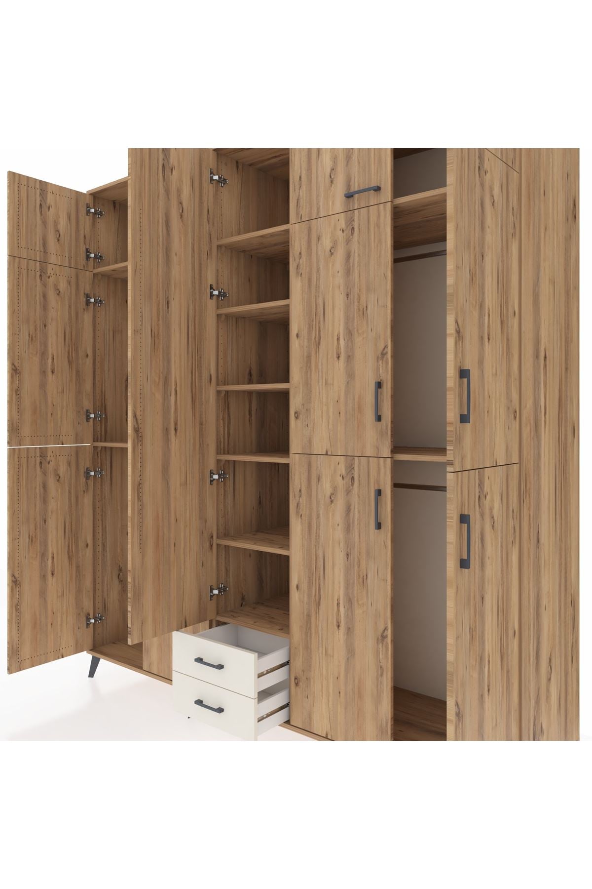 Kronos Dolap 10 Raflı 2 Çekmeceli 4 Askılı 220x59x243 Çam-Çam/Aytaşı