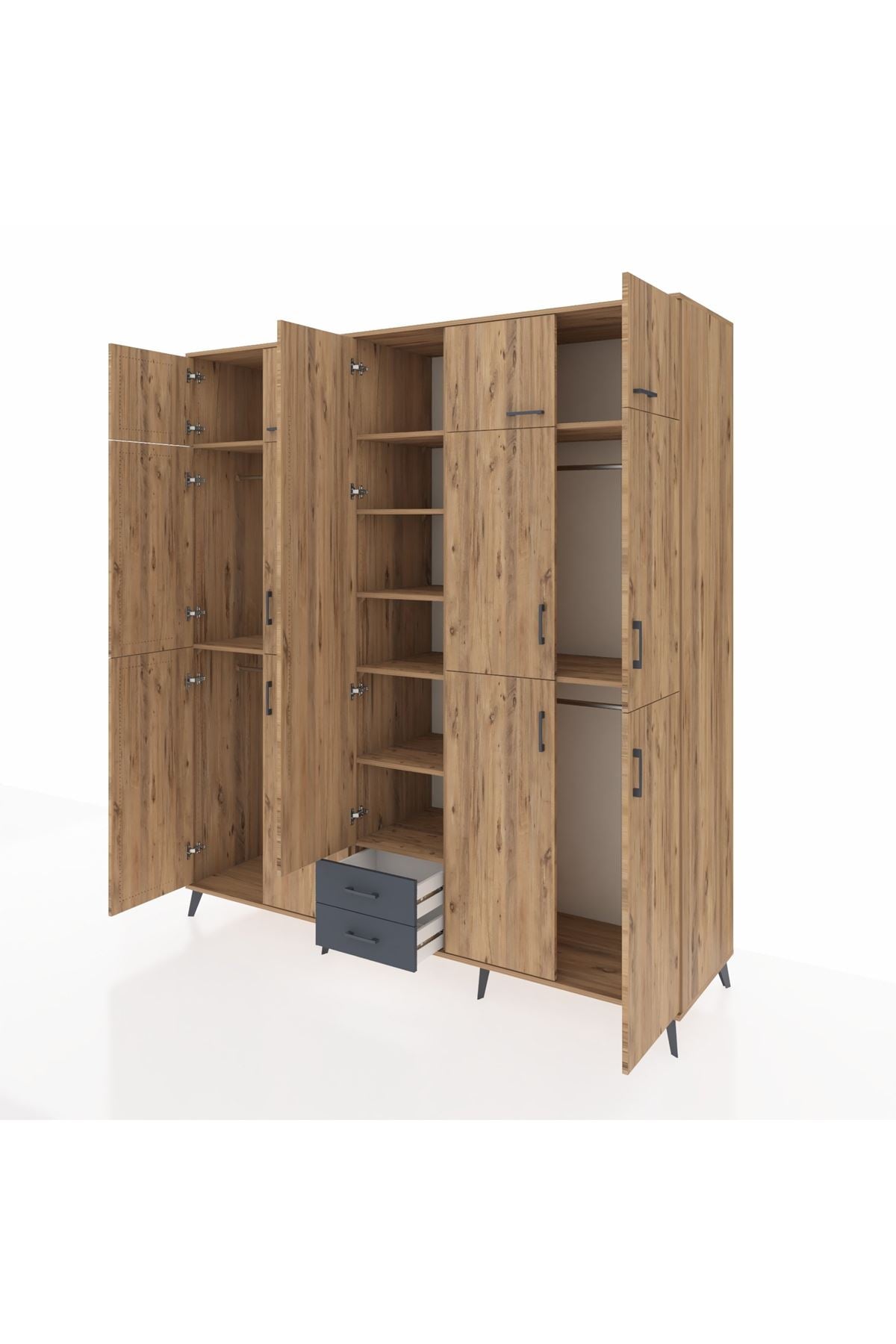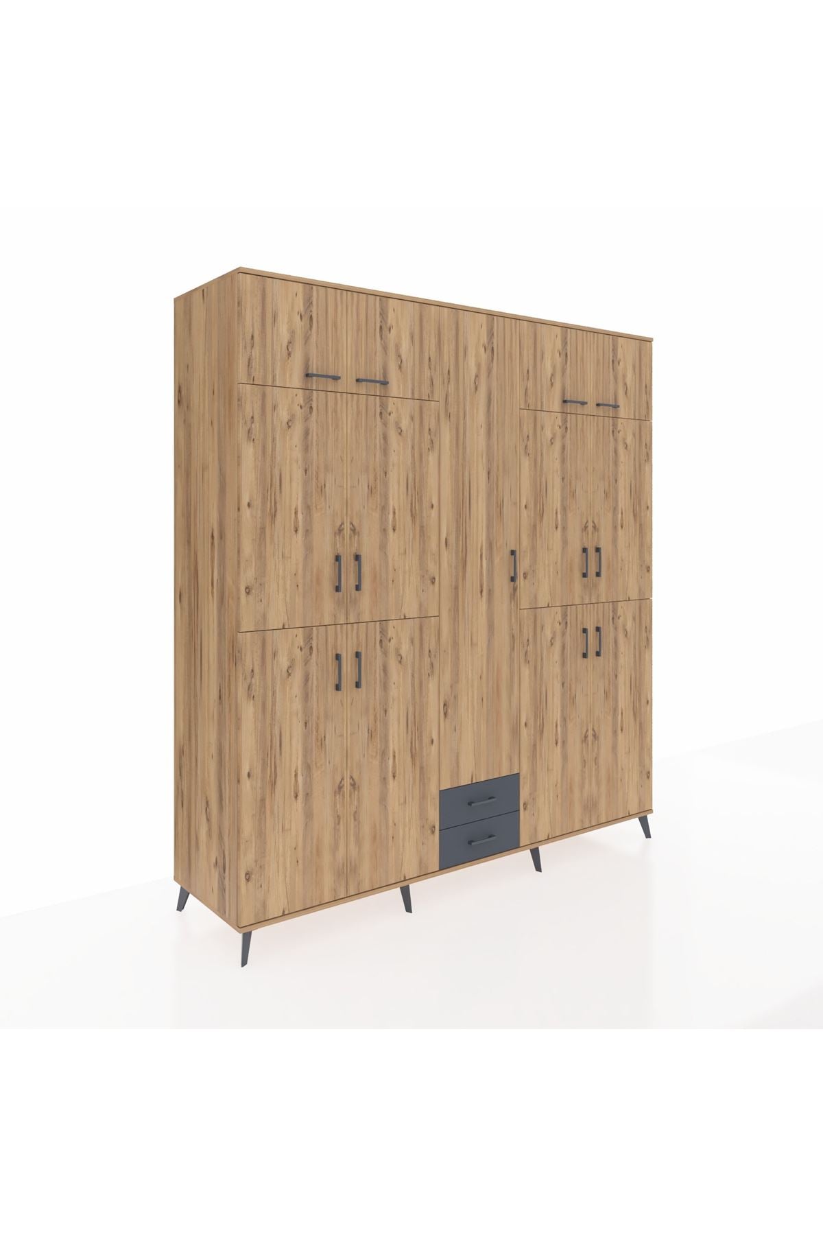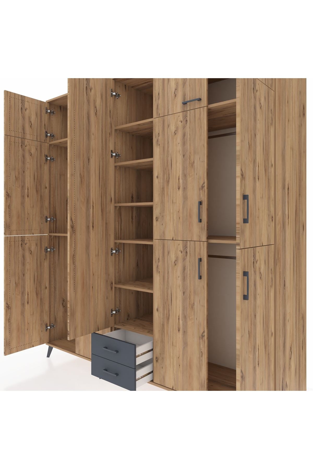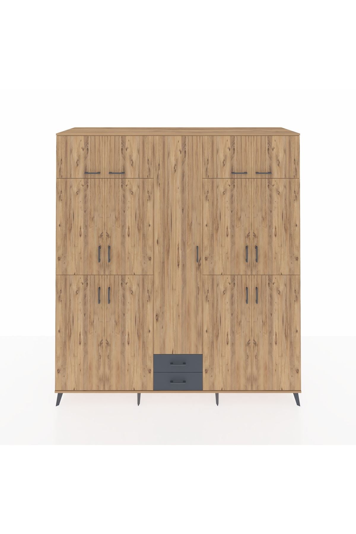 Kronos Dolap 10 Raflı 2 Çekmeceli 4 Askılı 220x59x243 Çam-Çam/Antrasit