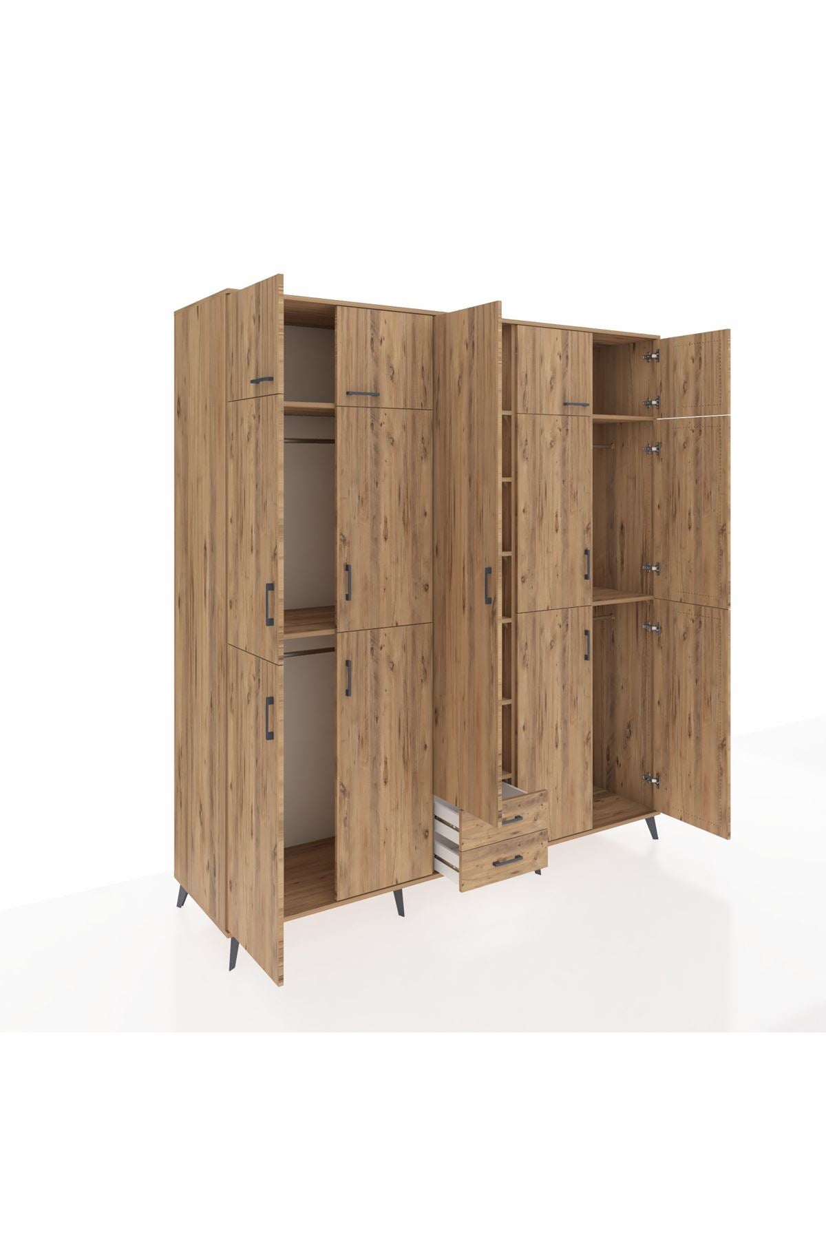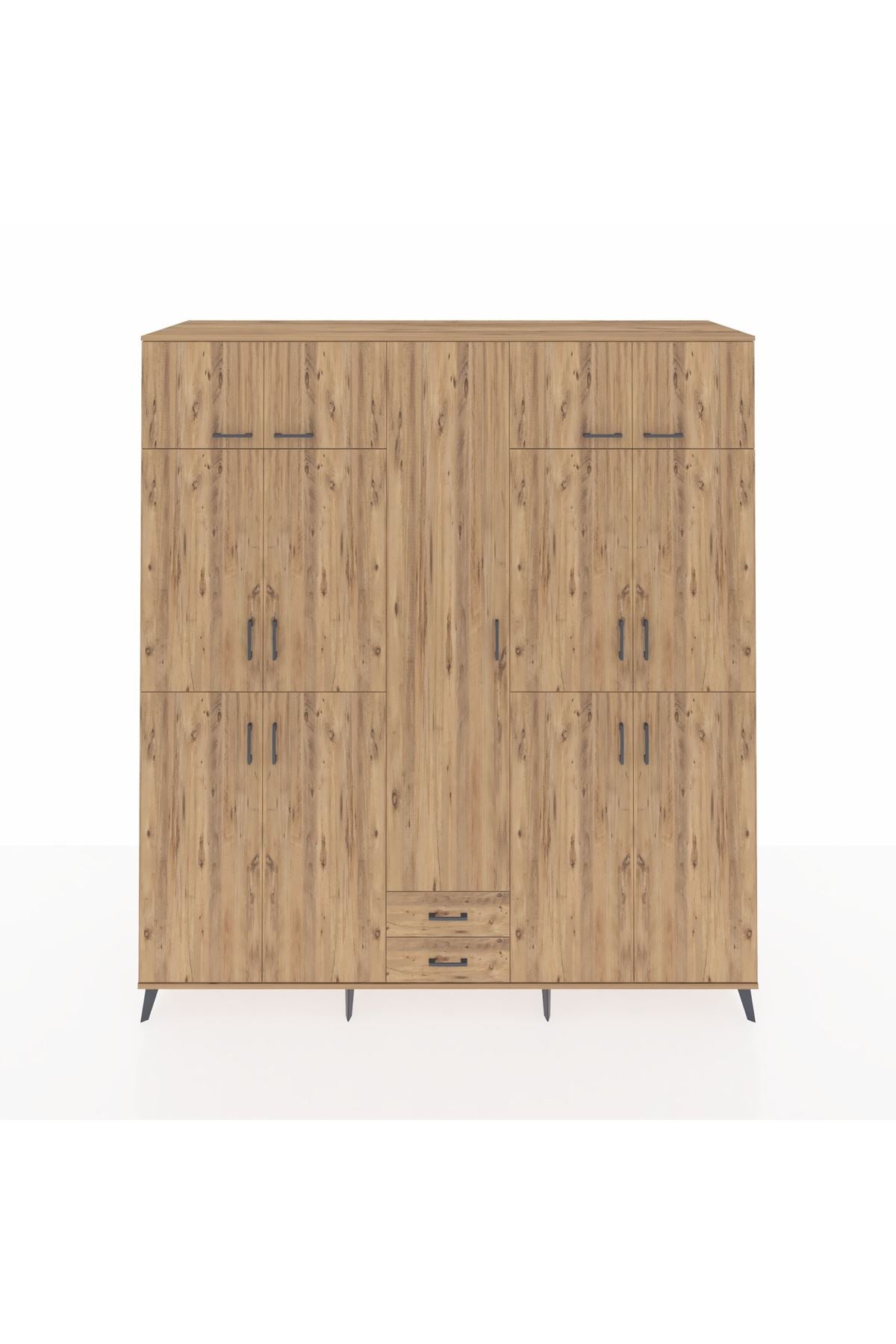 Kronos Dolap 10 Raflı 2 Çekmeceli 4 Askılı 220x59x243 Çam-Çam/Çam