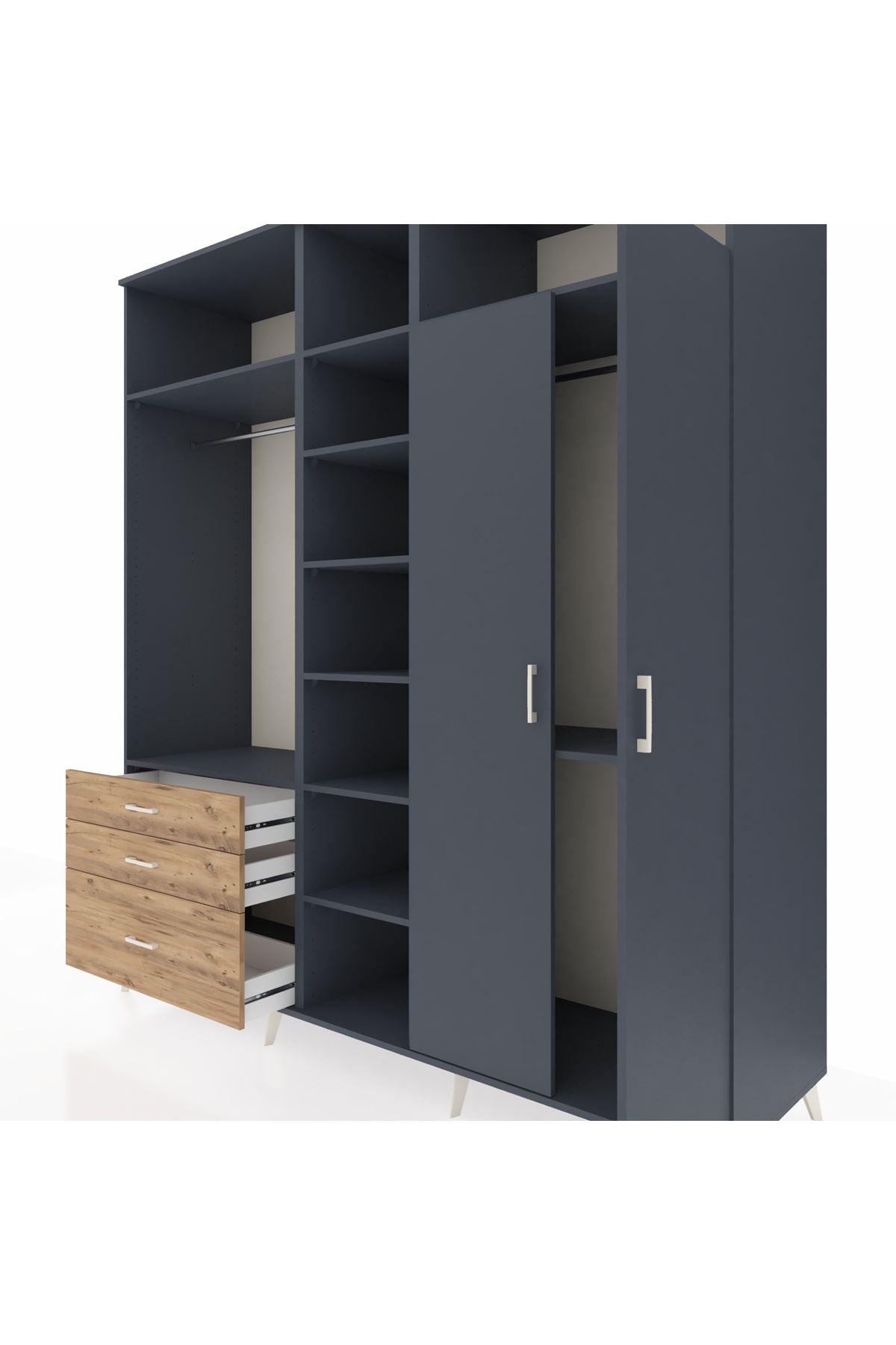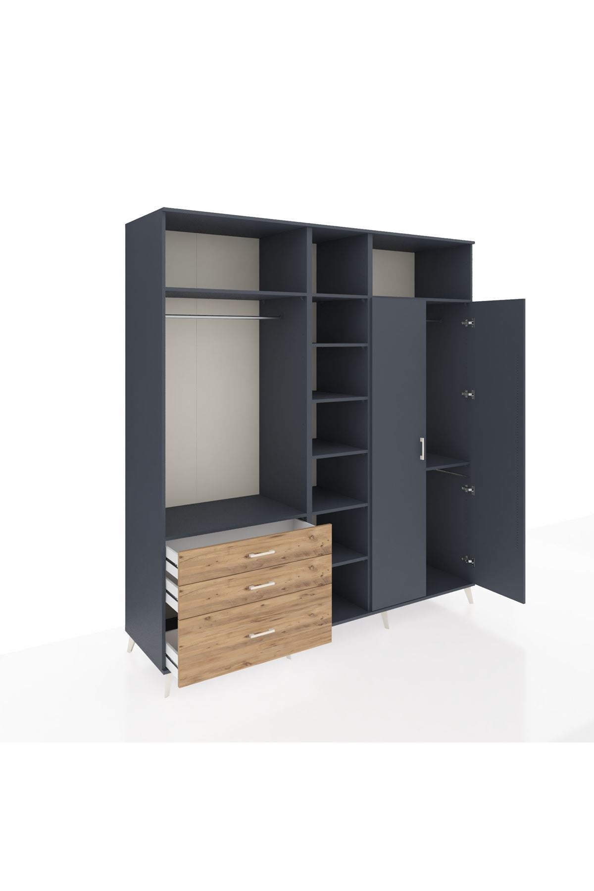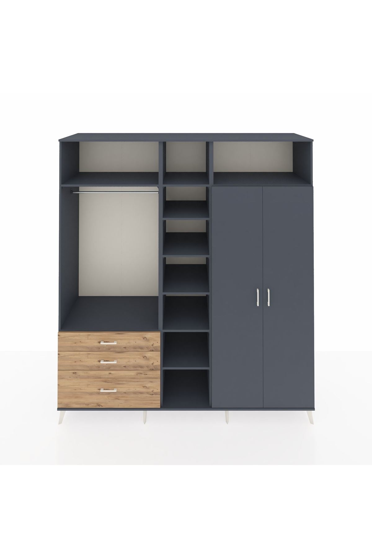 Kronos Dolap 10 Raflı 3 Çekmeceli 2 Askılı 220x59x243 Antrasit-Antrasit/Çam