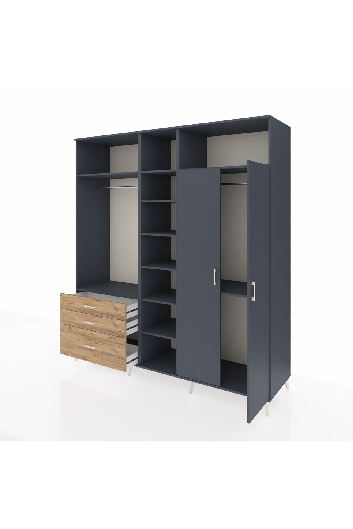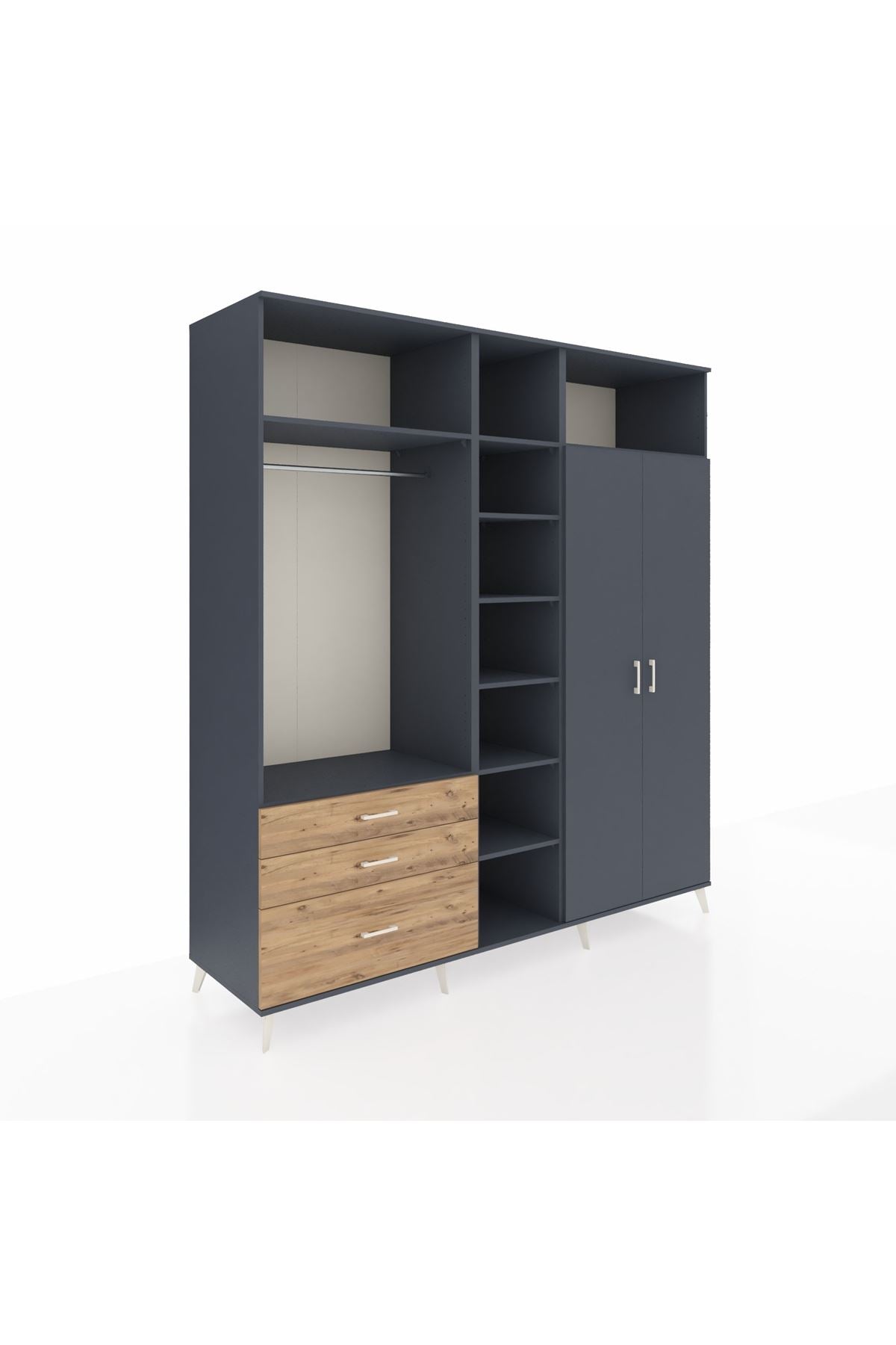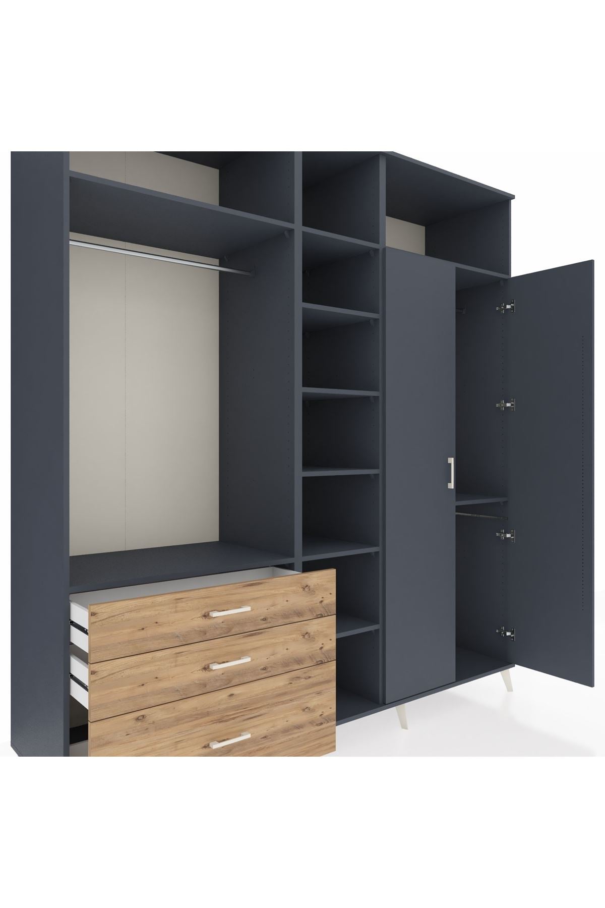 Kronos Dolap 10 Raflı 3 Çekmeceli 2 Askılı 220x59x243 Antrasit-Antrasit/Çam