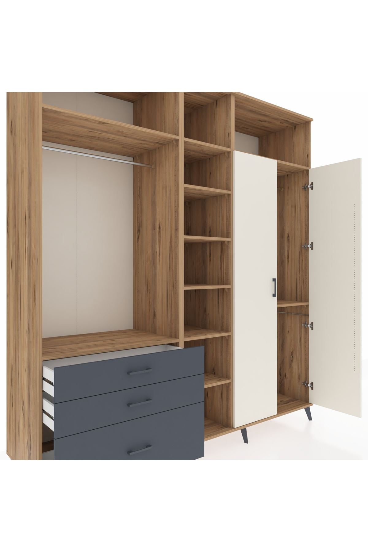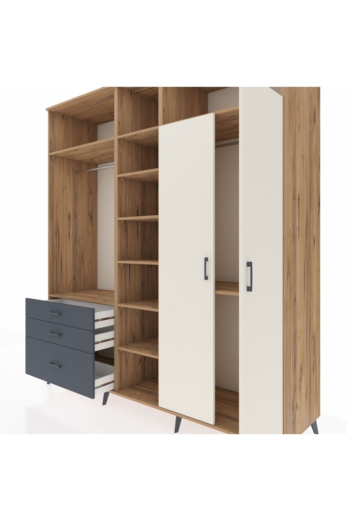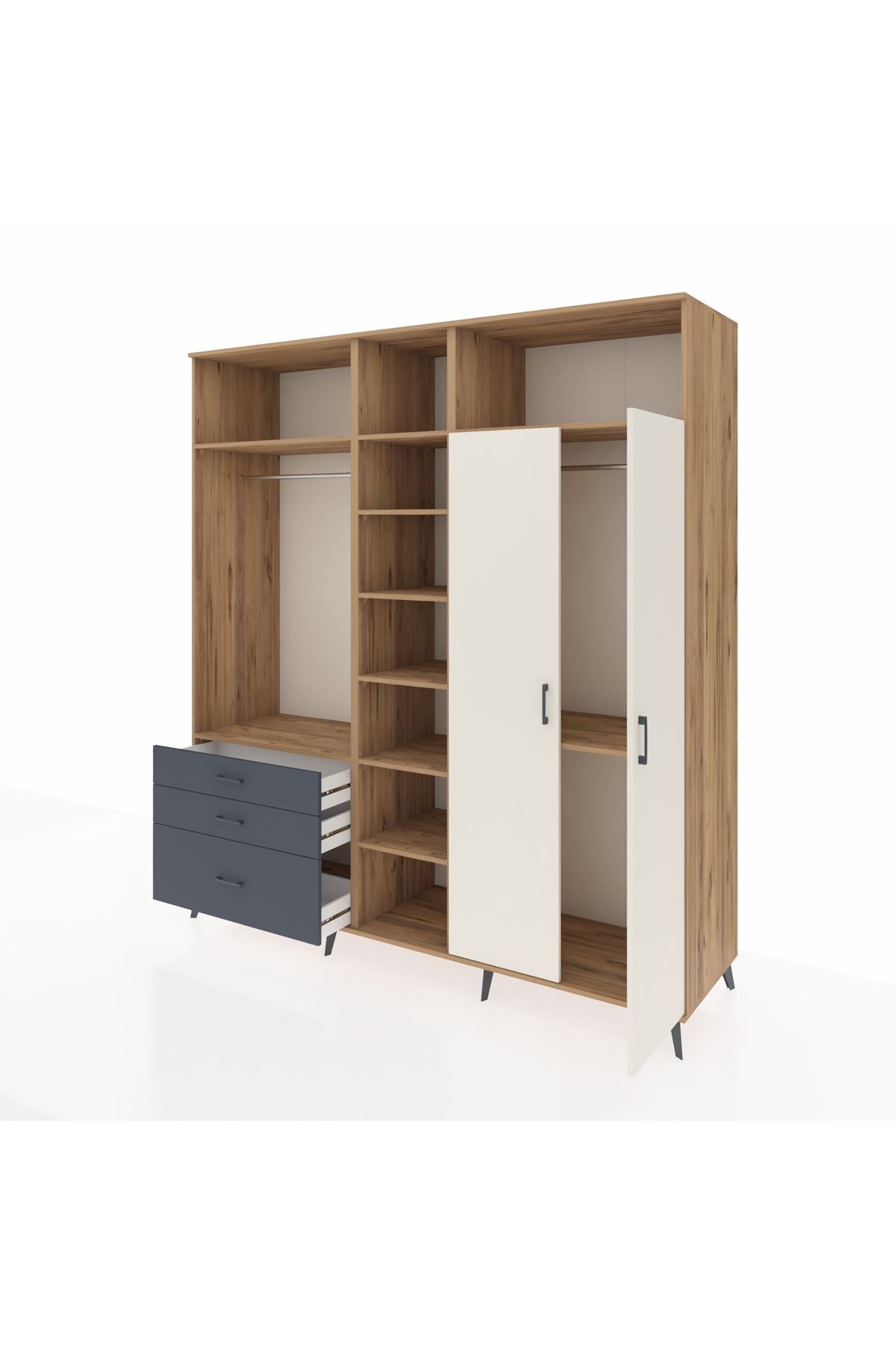 Kronos Dolap 10 Raflı 3 Çekmeceli 2 Askılı 220x59x243 Çam-Aytaşı/Antrasit