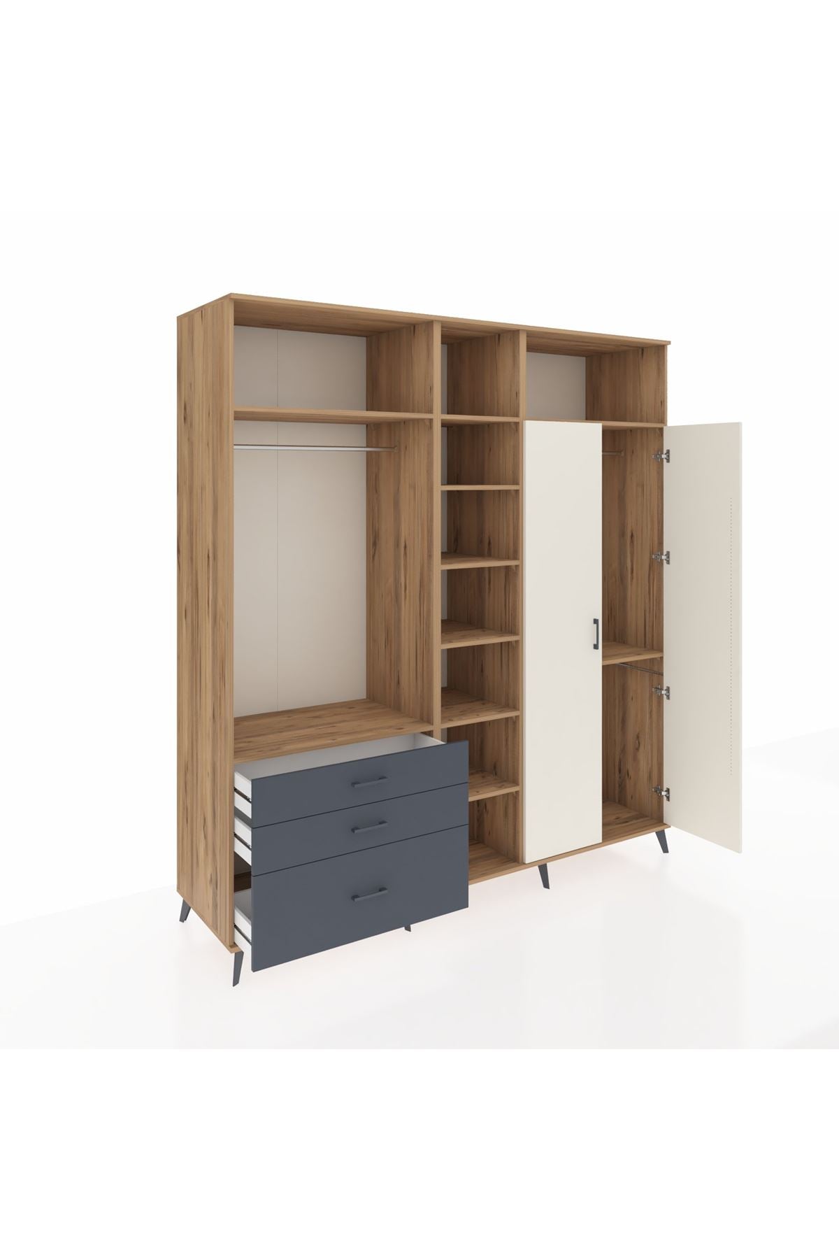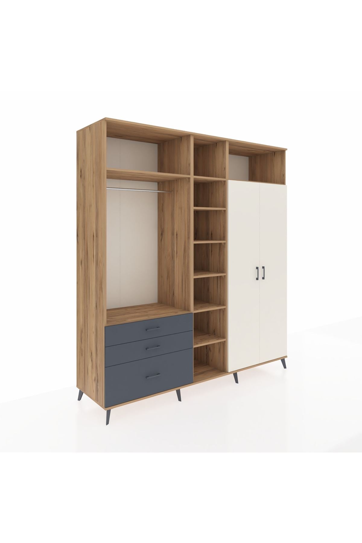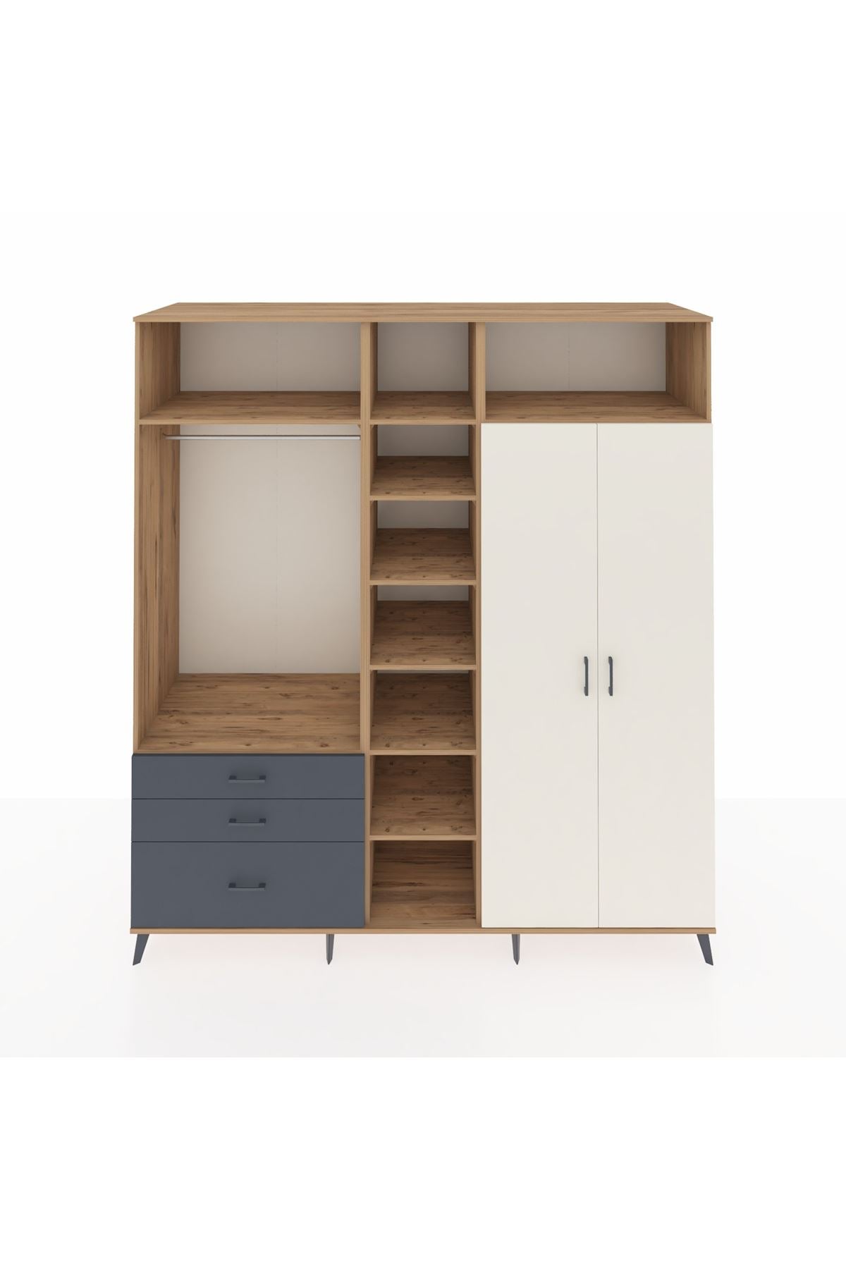 Kronos Dolap 10 Raflı 3 Çekmeceli 2 Askılı 220x59x243 Çam-Aytaşı/Antrasit