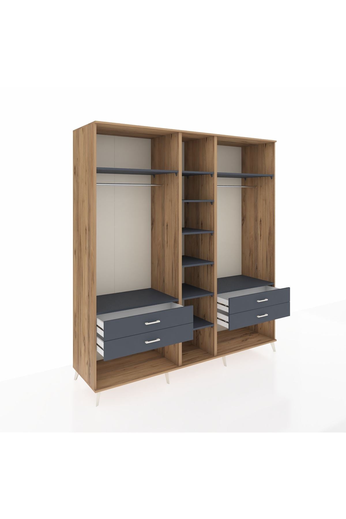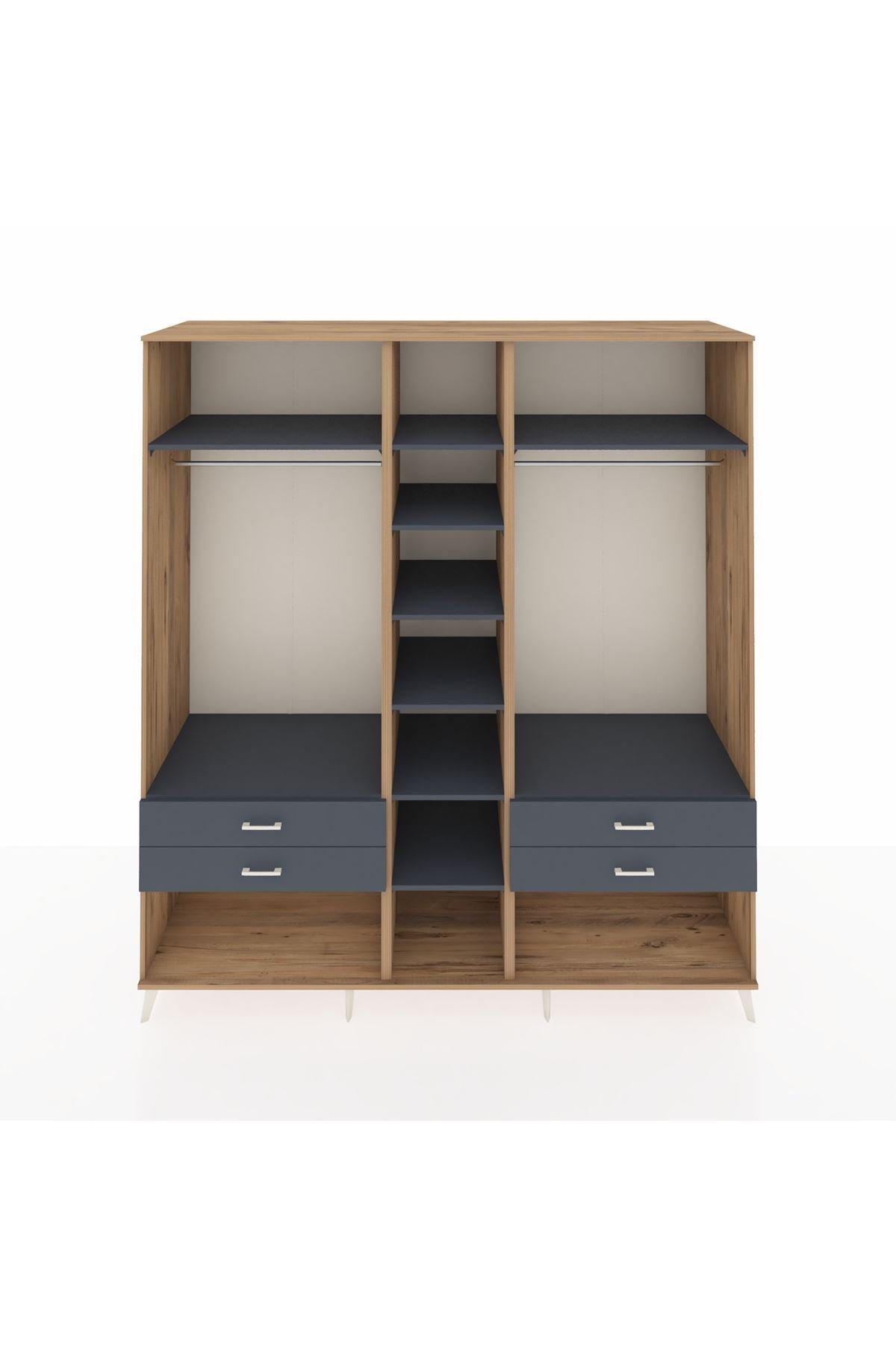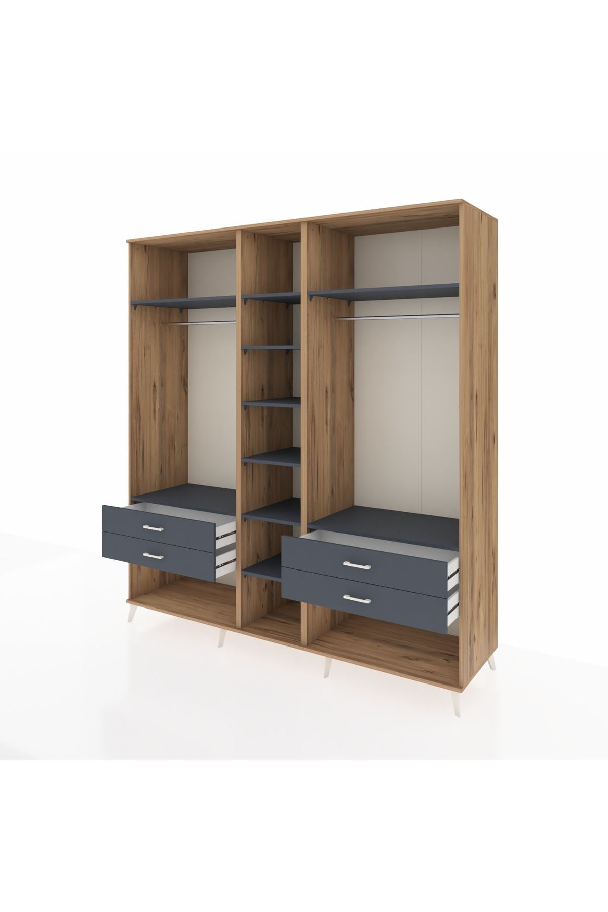 Kronos Dolap 10 Raflı 4 Çekmeceli 2 Askılı 220x59x243 Çam-Antrasit/Antrasit