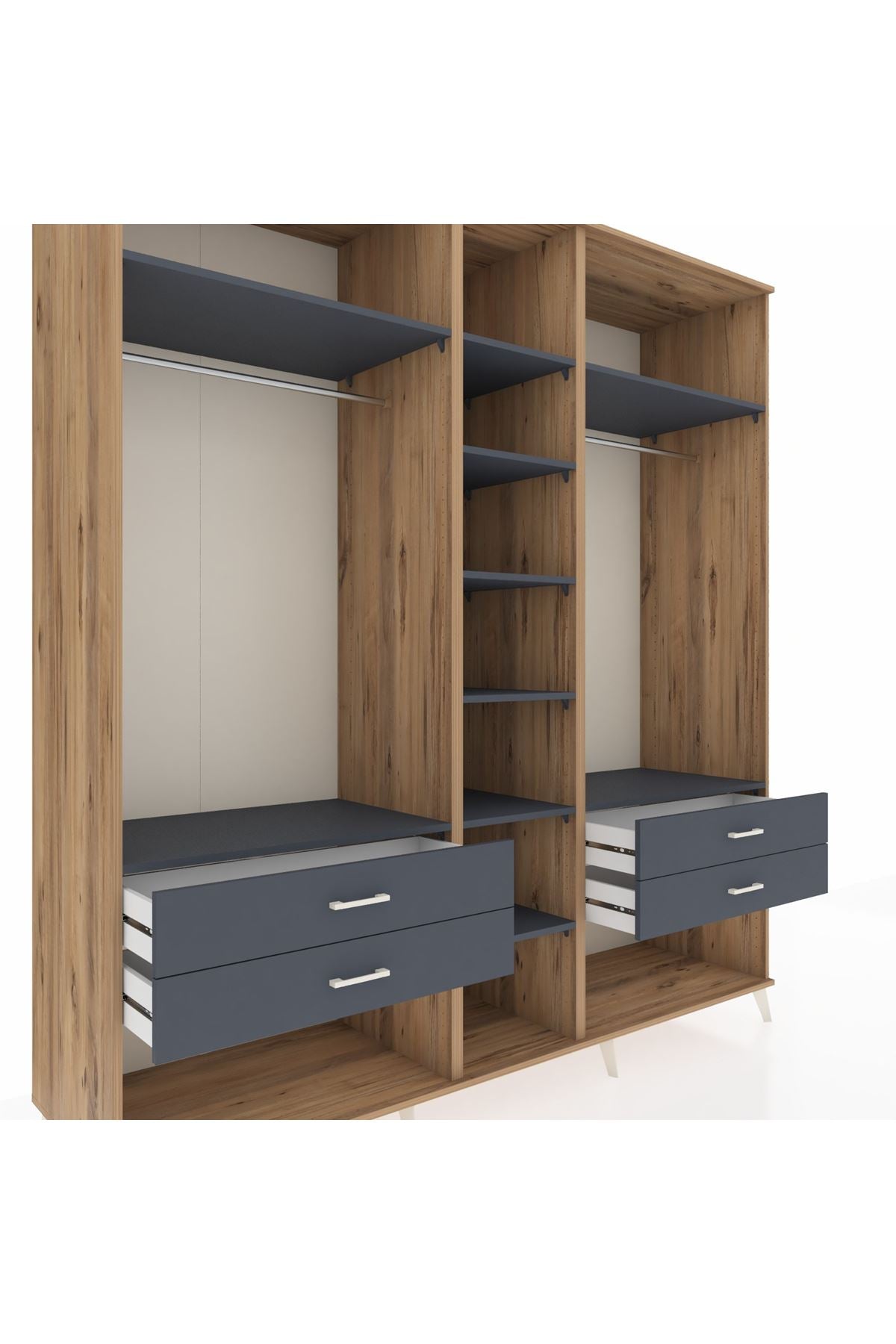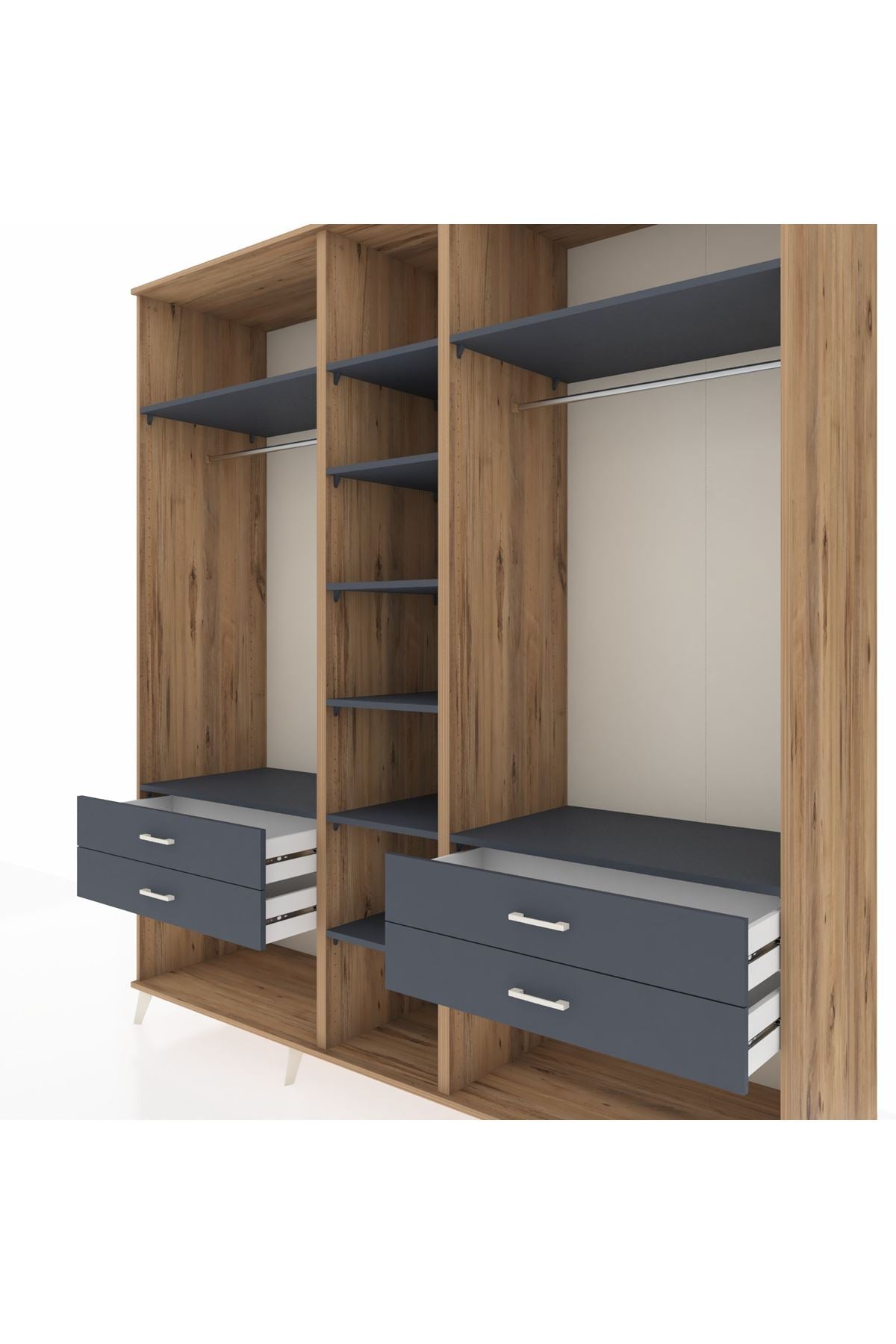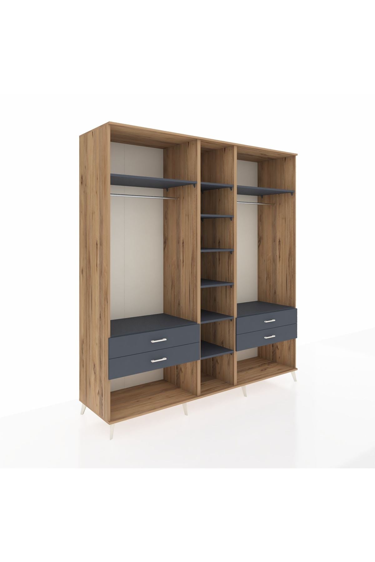 Kronos Dolap 10 Raflı 4 Çekmeceli 2 Askılı 220x59x243 Çam-Antrasit/Antrasit