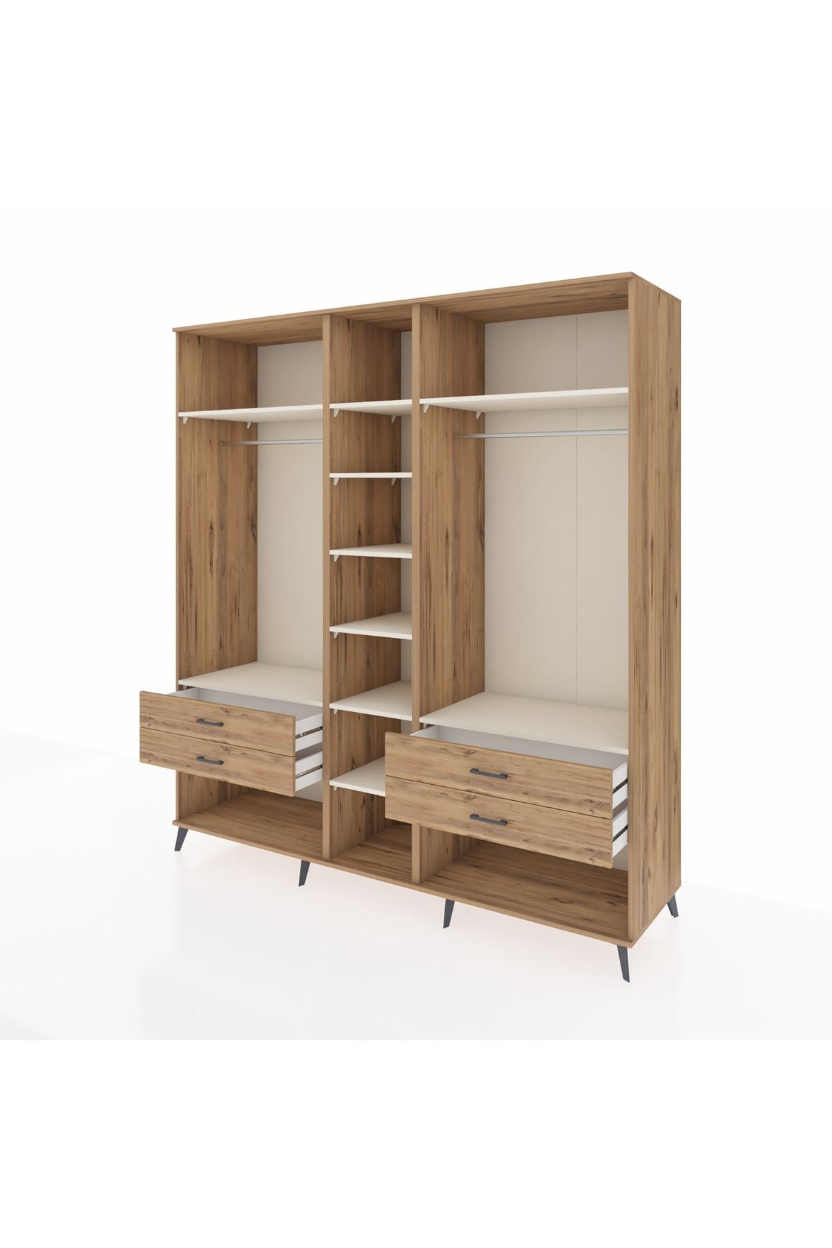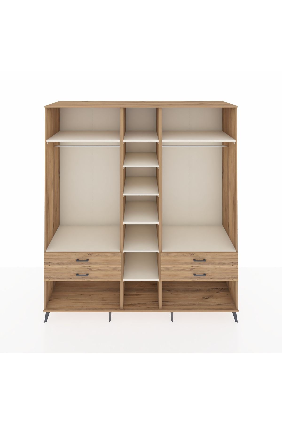 Kronos Dolap 10 Raflı 4 Çekmeceli 2 Askılı 220x59x243 Çam-Aytaşı/Çam