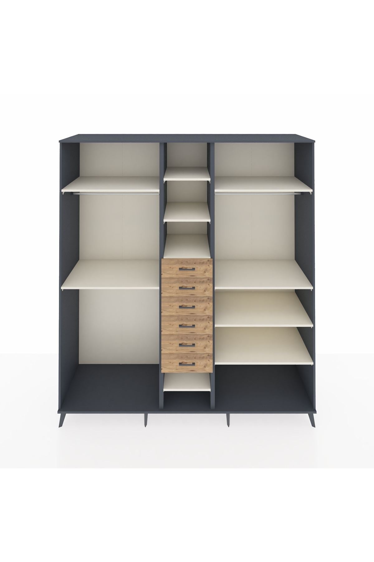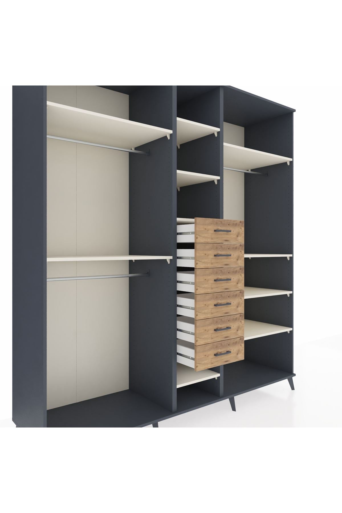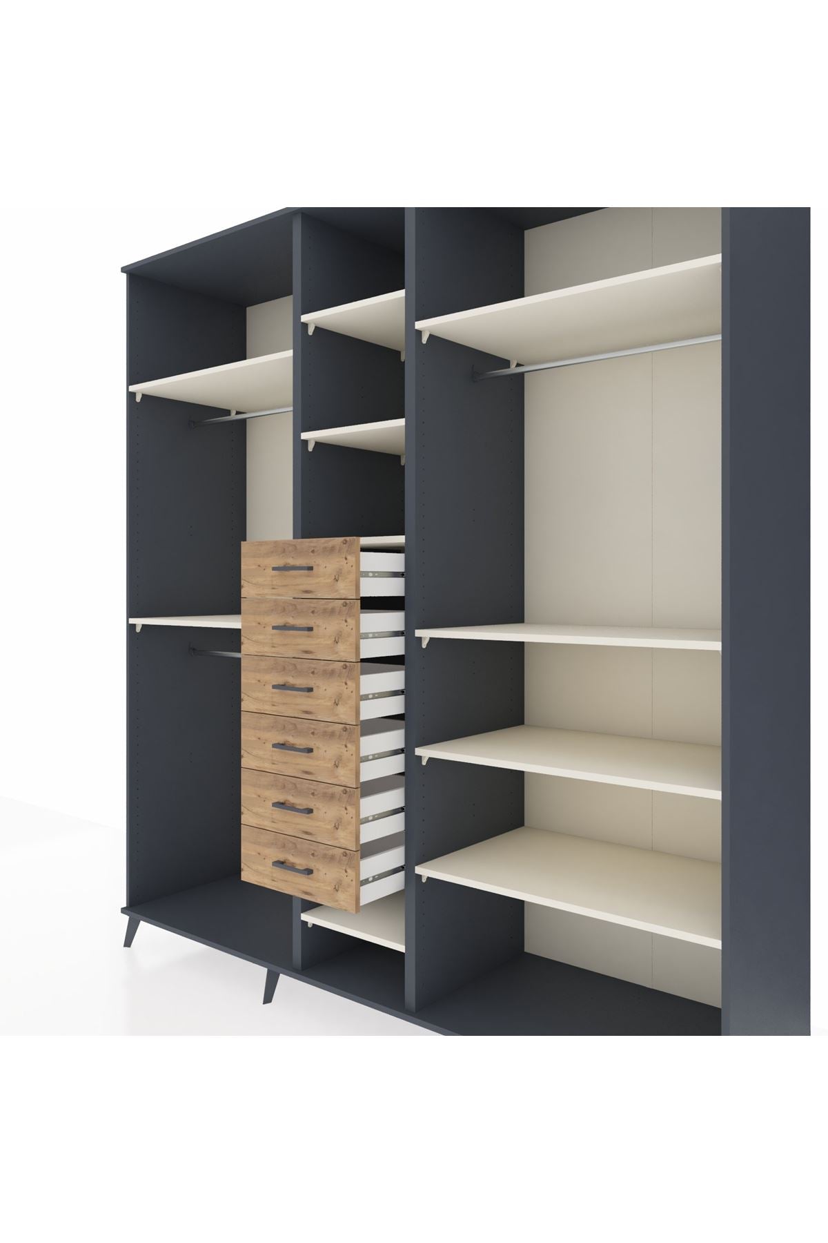 Kronos Dolap 10 Raflı 6 Çekmeceli 3 Askılı 220x59x243 Antrasit-Aytaşı/Çam