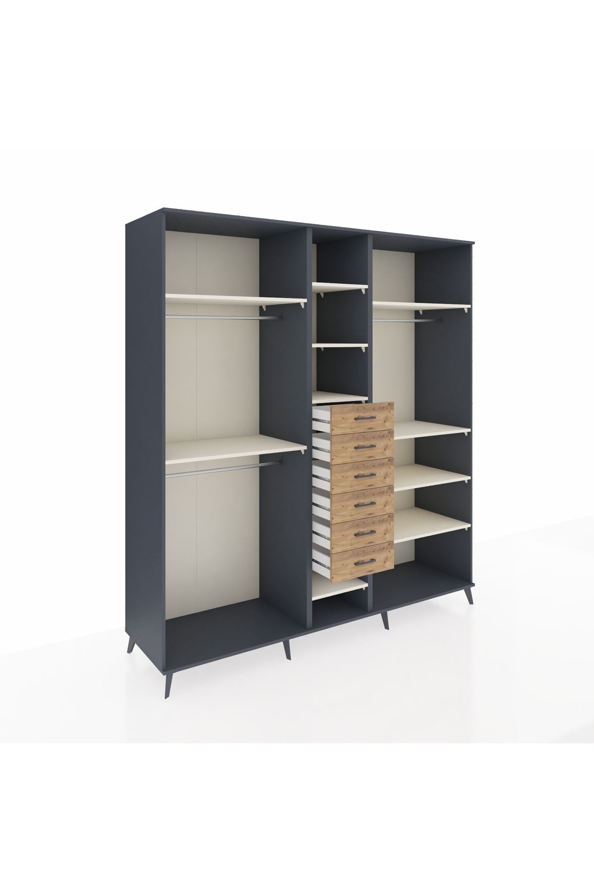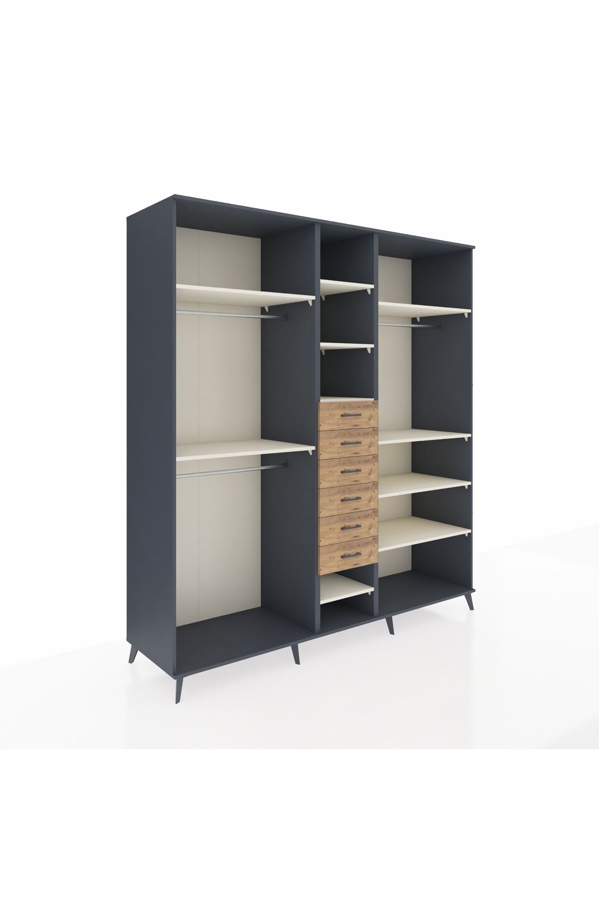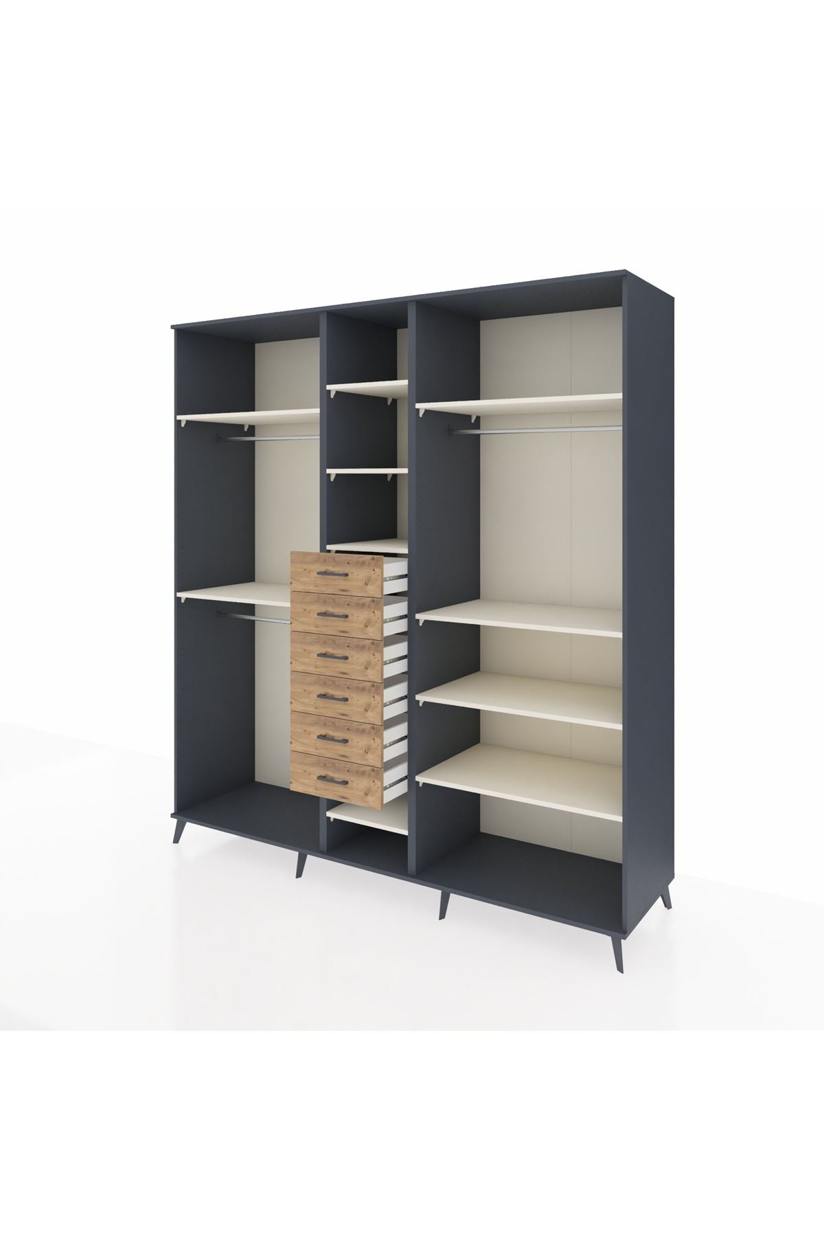 Kronos Dolap 10 Raflı 6 Çekmeceli 3 Askılı 220x59x243 Antrasit-Aytaşı/Çam