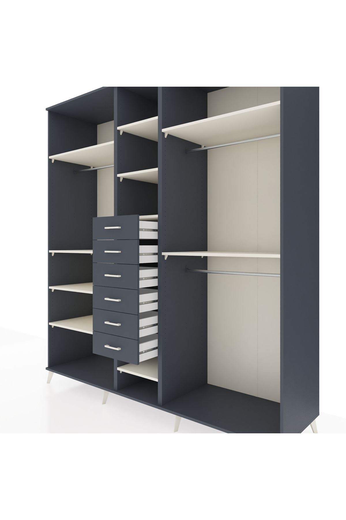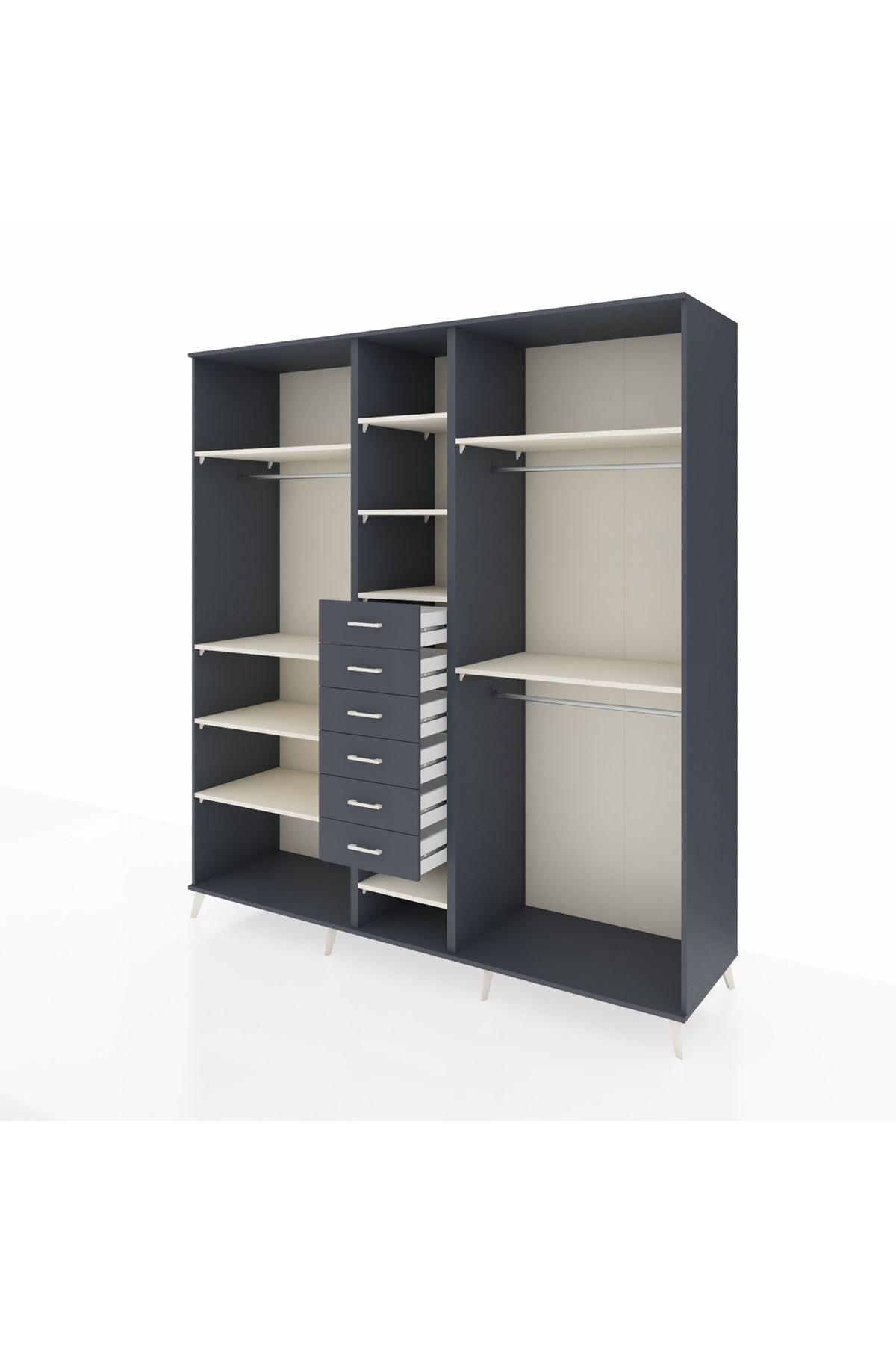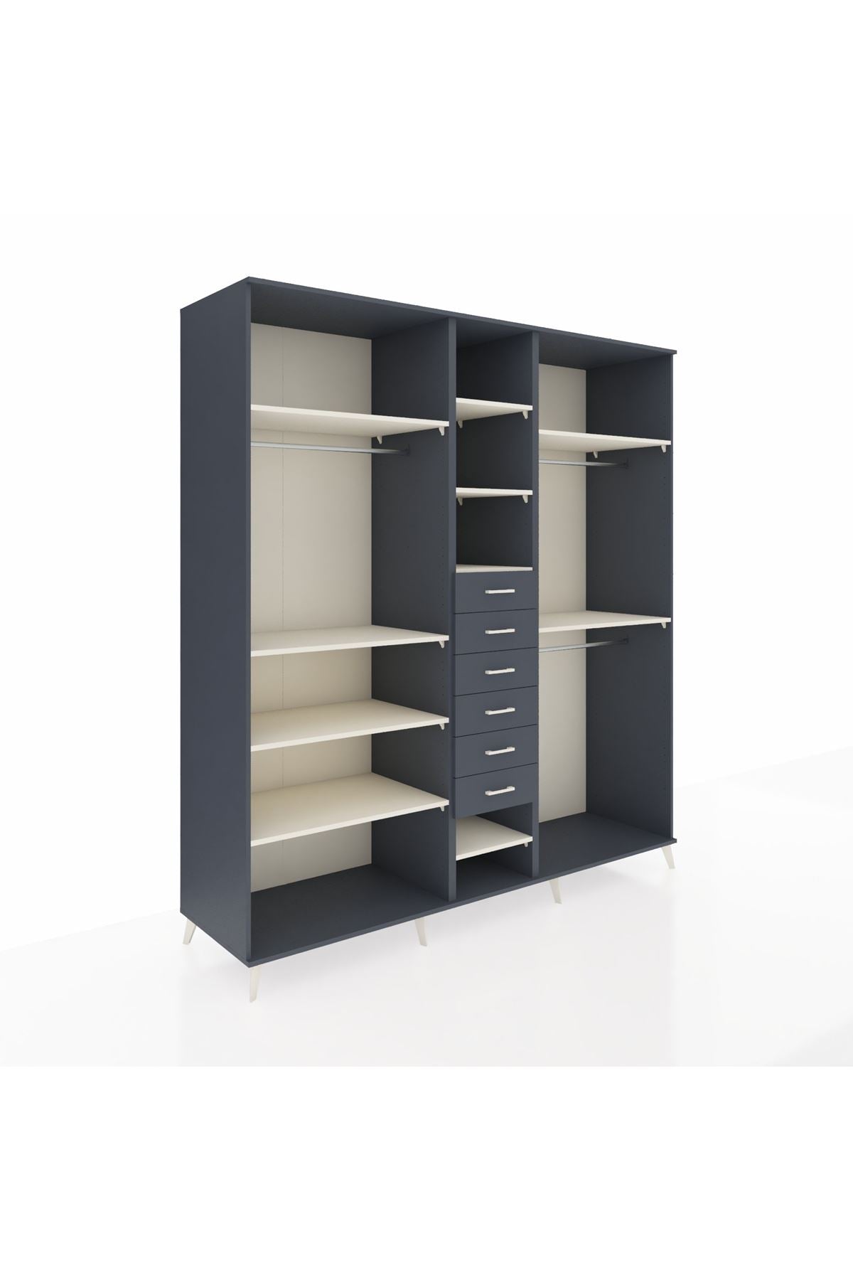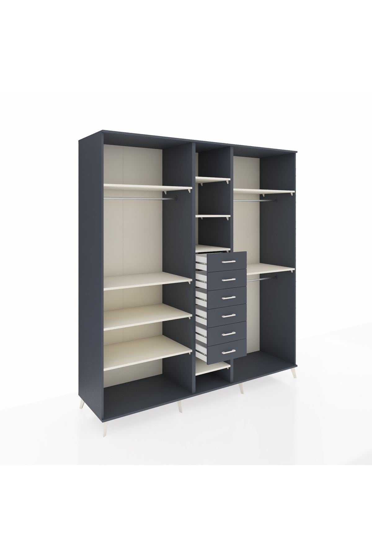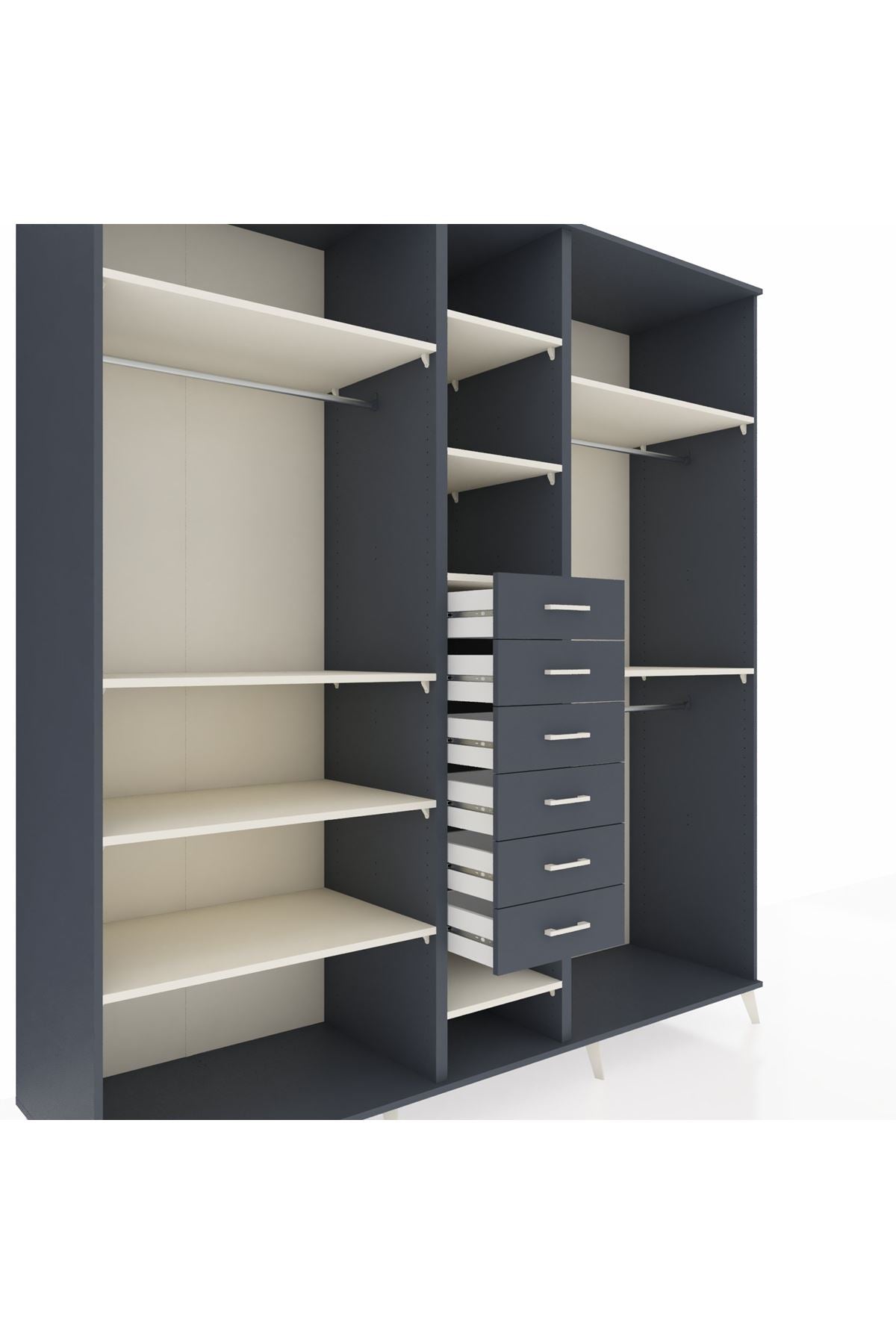 Kronos Dolap 10 Raflı 6 Çekmeceli 3 Askılı 220x59x243 Antrasit-Aytaşı/Antrasit