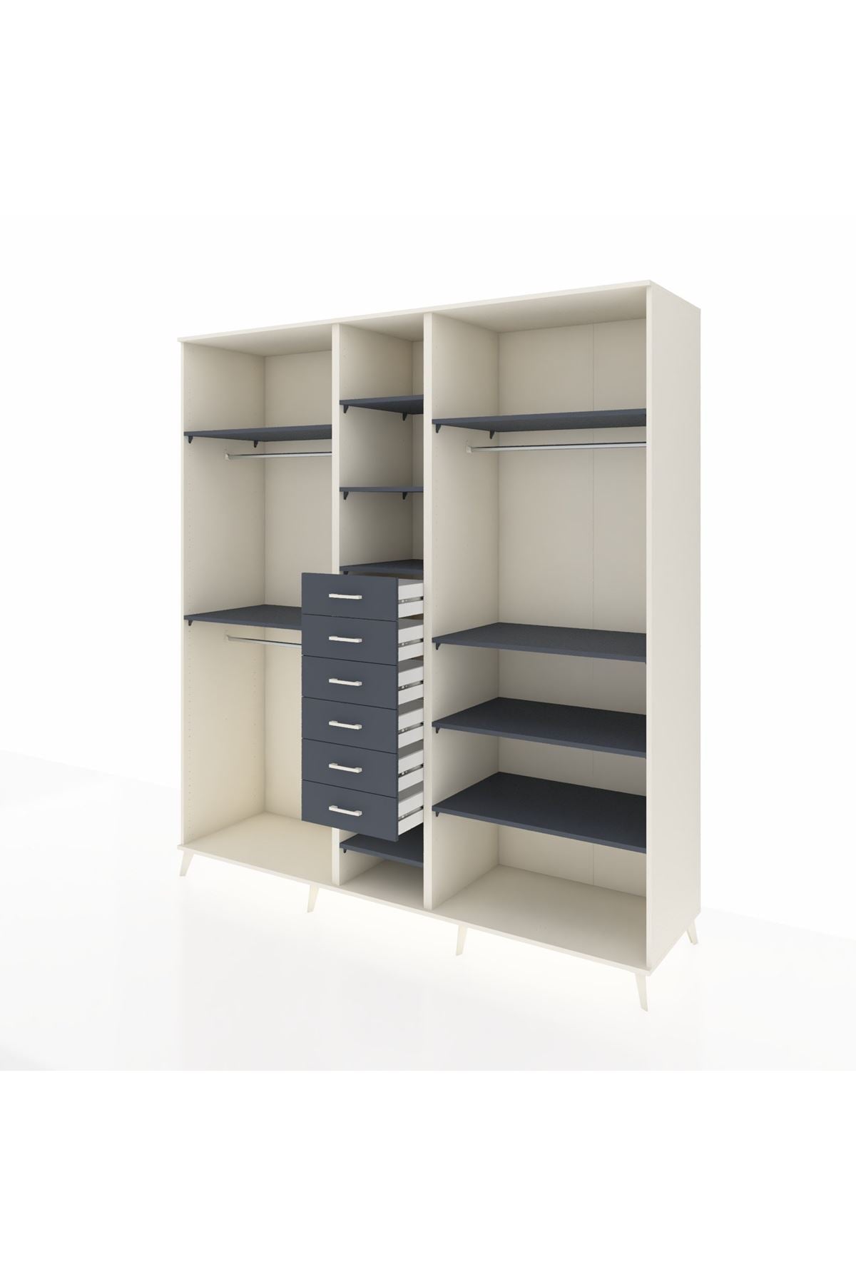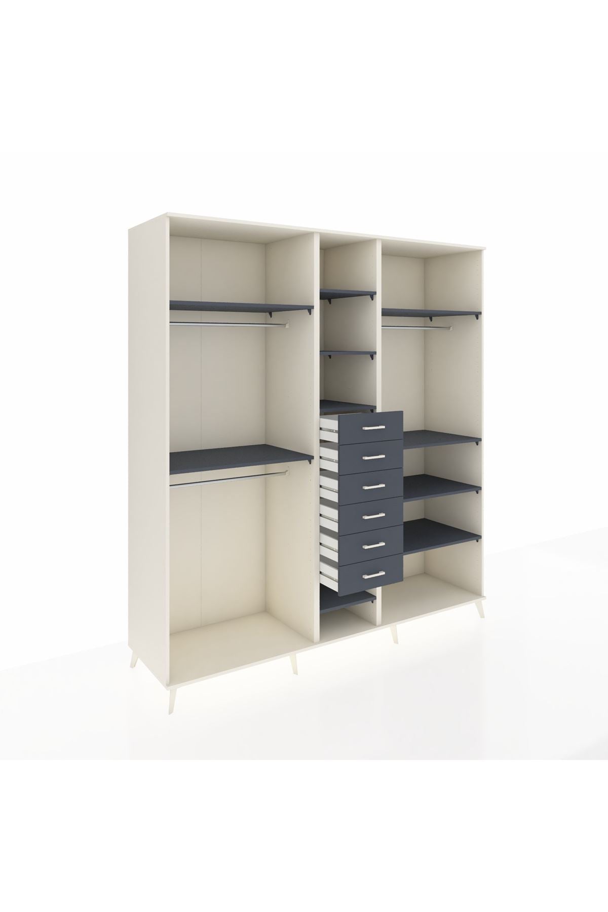 Kronos Dolap 10 Raflı 6 Çekmeceli 3 Askılı 220x59x243 Aytaşı-Antrasit/Antrasit