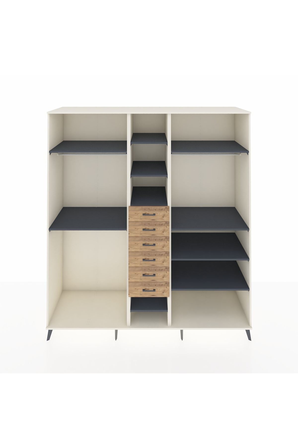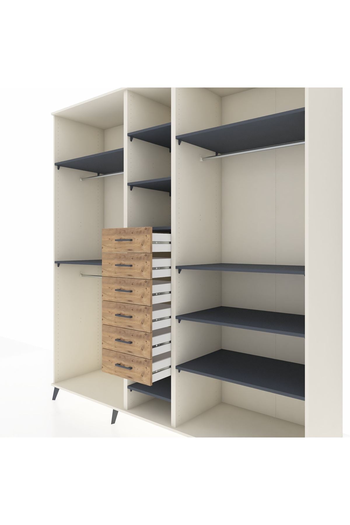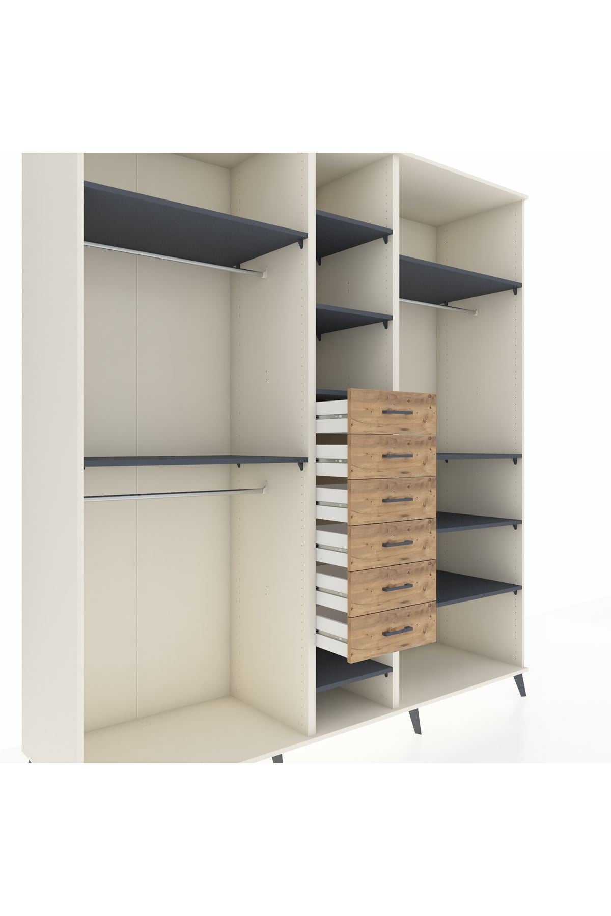Kronos Dolap 10 Raflı 6 Çekmeceli 3 Askılı 220x59x243 Aytaşı-Antrasit/Çam