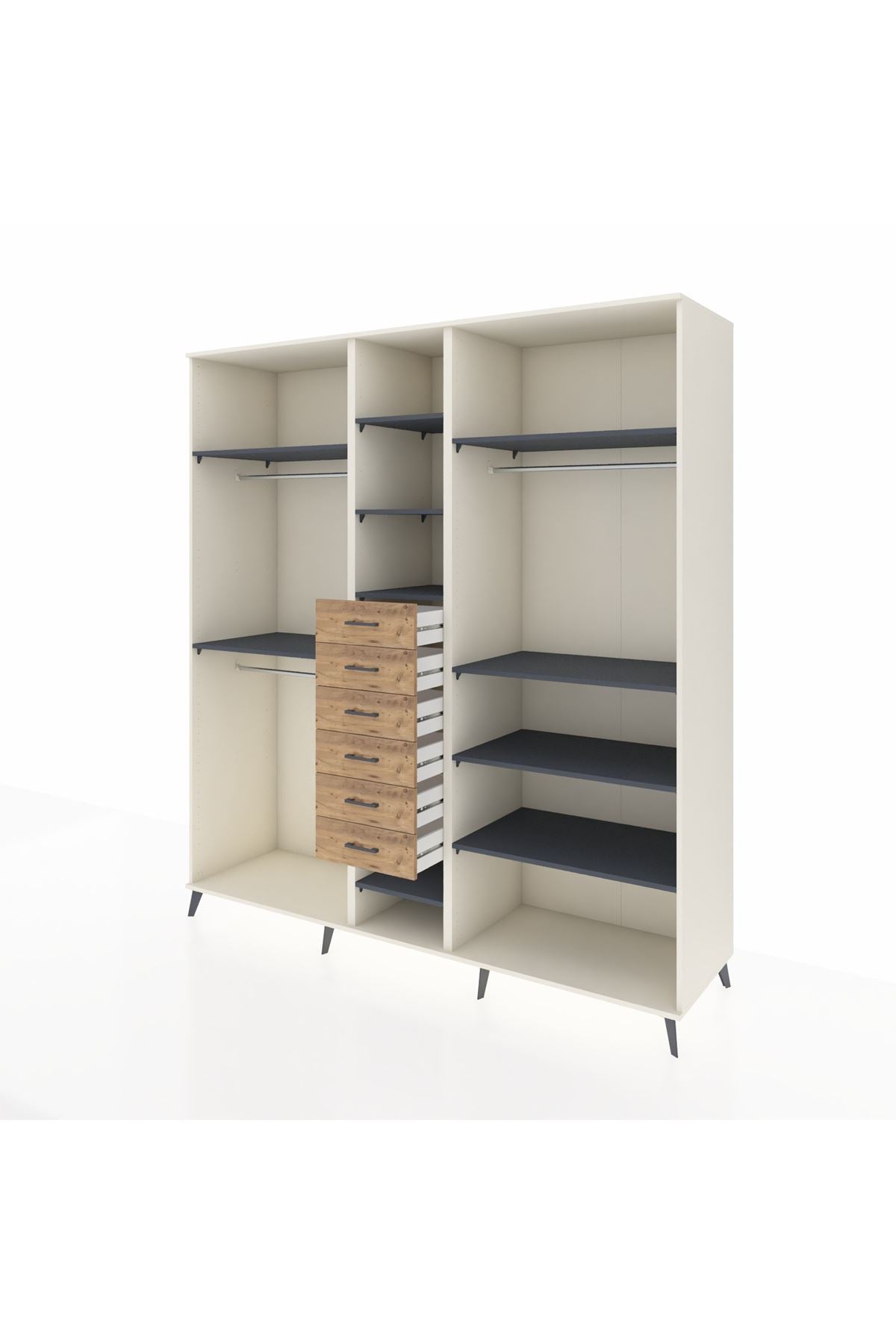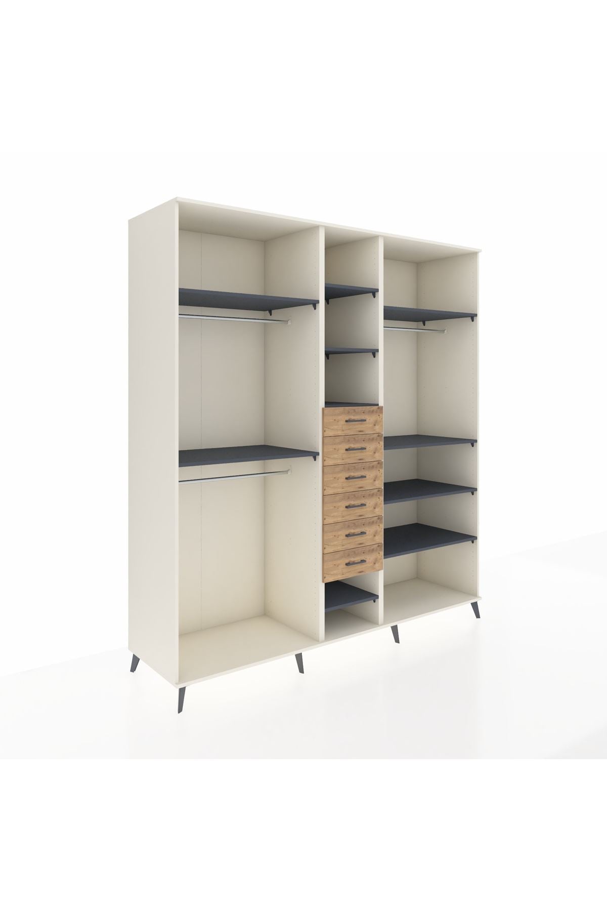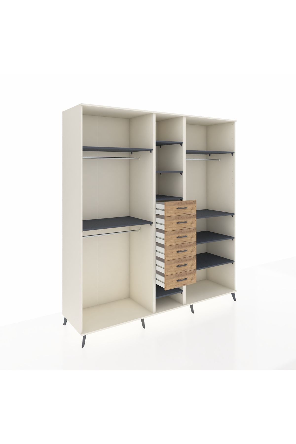 Kronos Dolap 10 Raflı 6 Çekmeceli 3 Askılı 220x59x243 Aytaşı-Antrasit/Çam