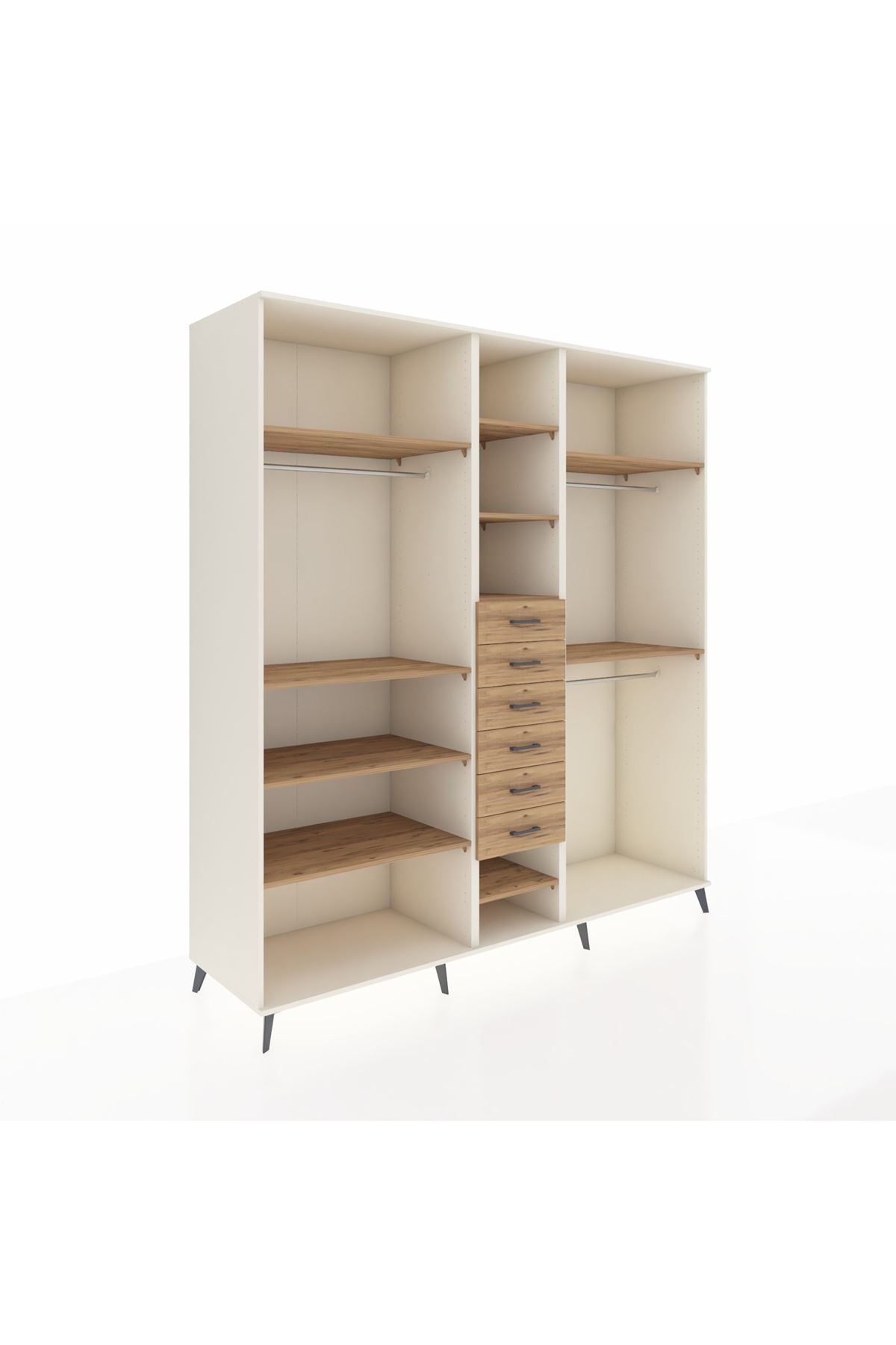 Kronos Dolap 10 Raflı 6 Çekmeceli 3 Askılı 220x59x243 Aytaşı-Çam/Çam