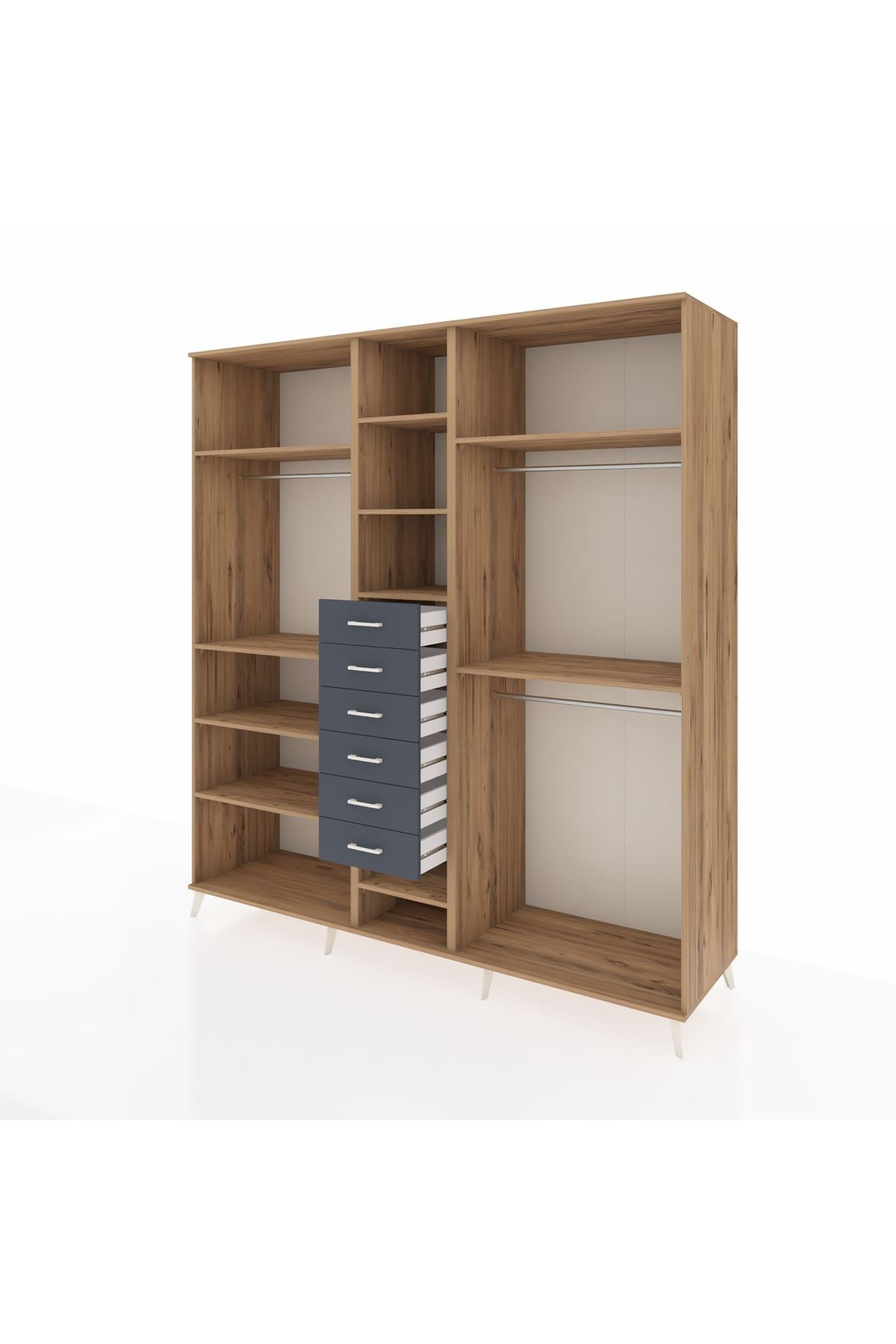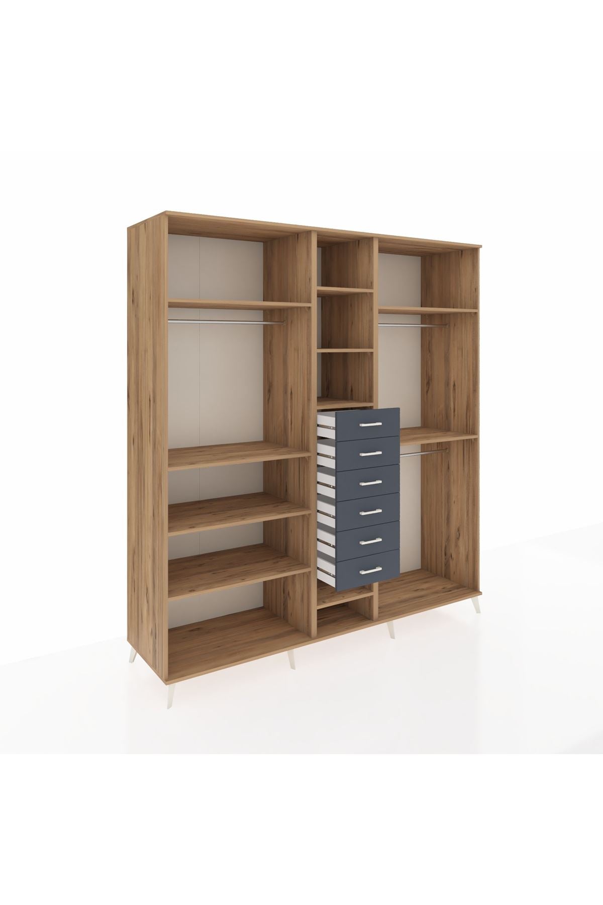 Kronos Dolap 10 Raflı 6 Çekmeceli 3 Askılı 220x59x243 Çam-Çam/Antrasit