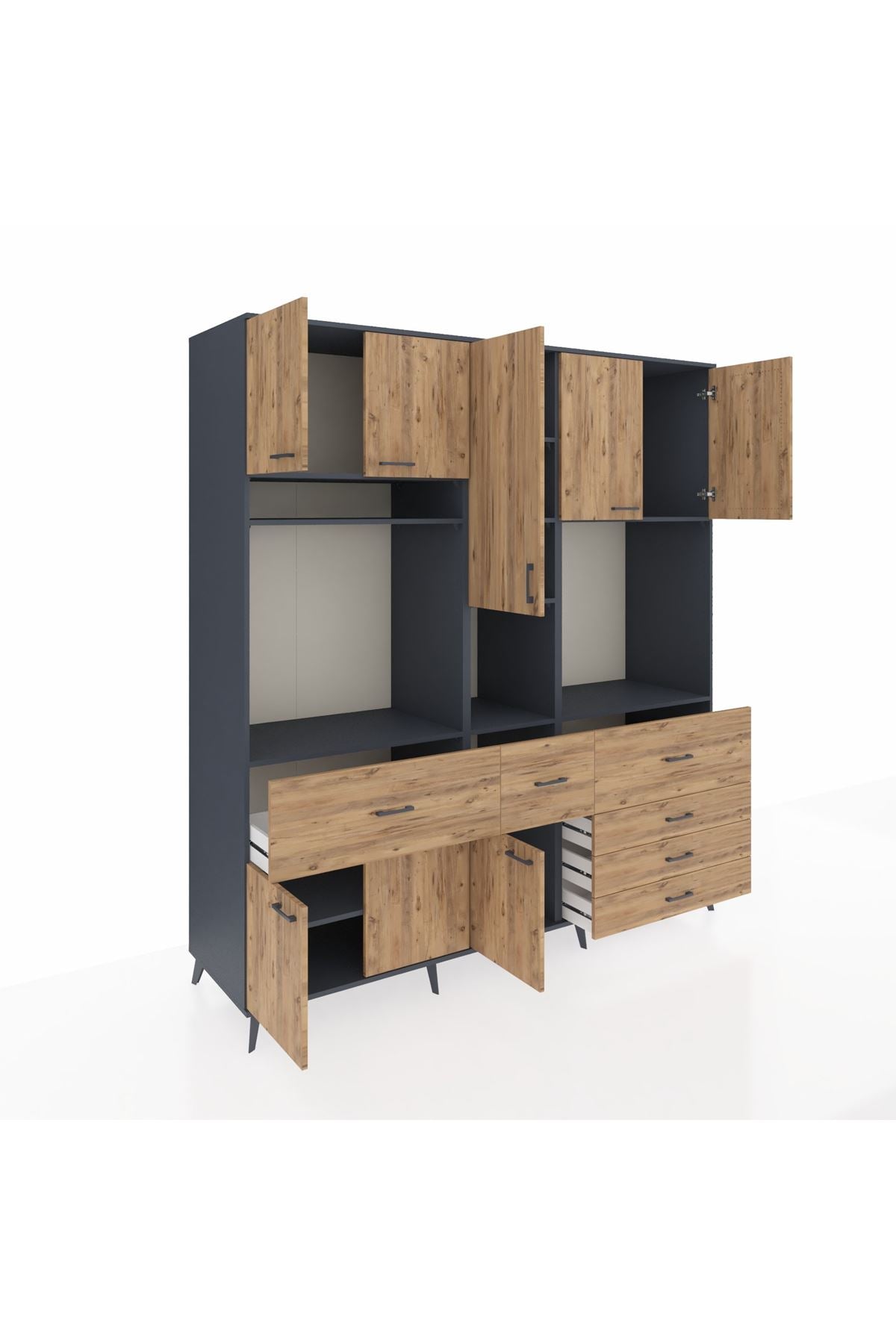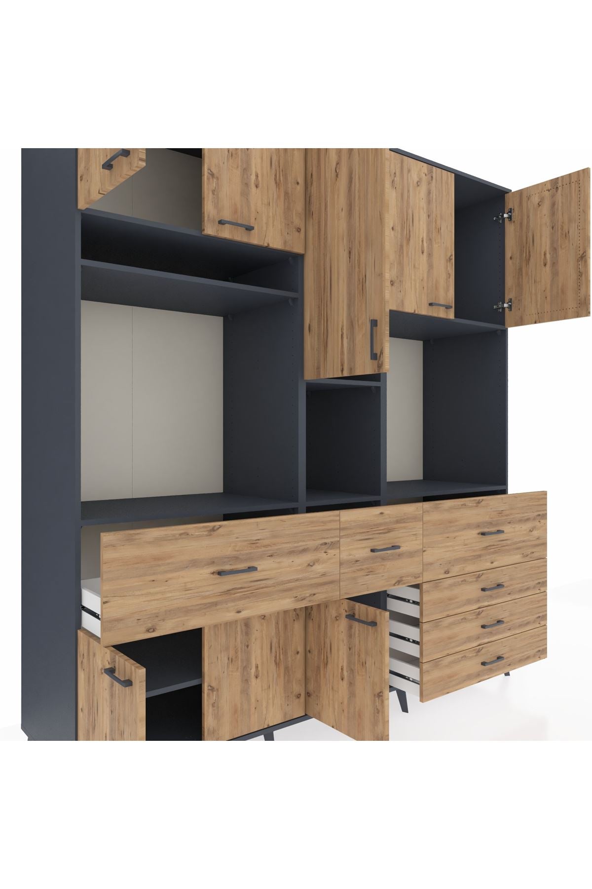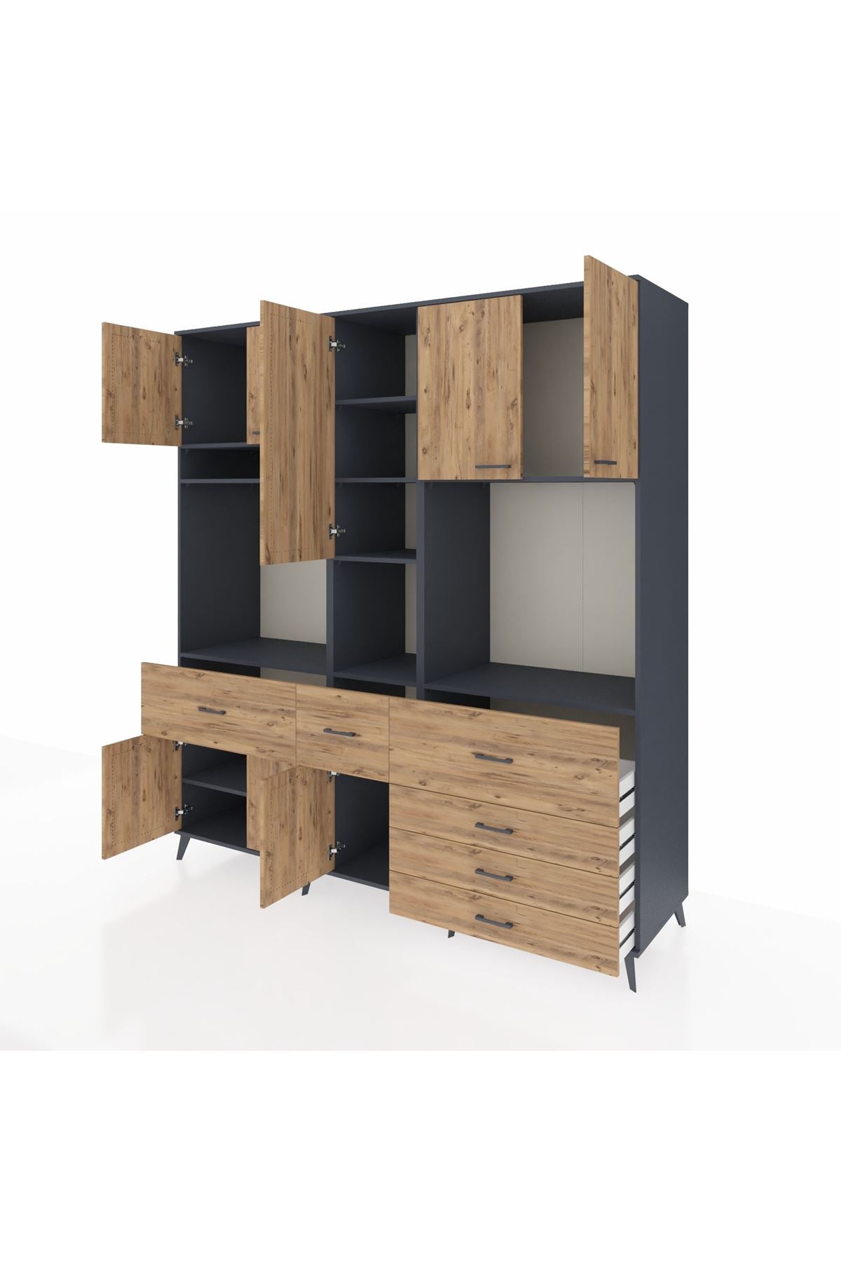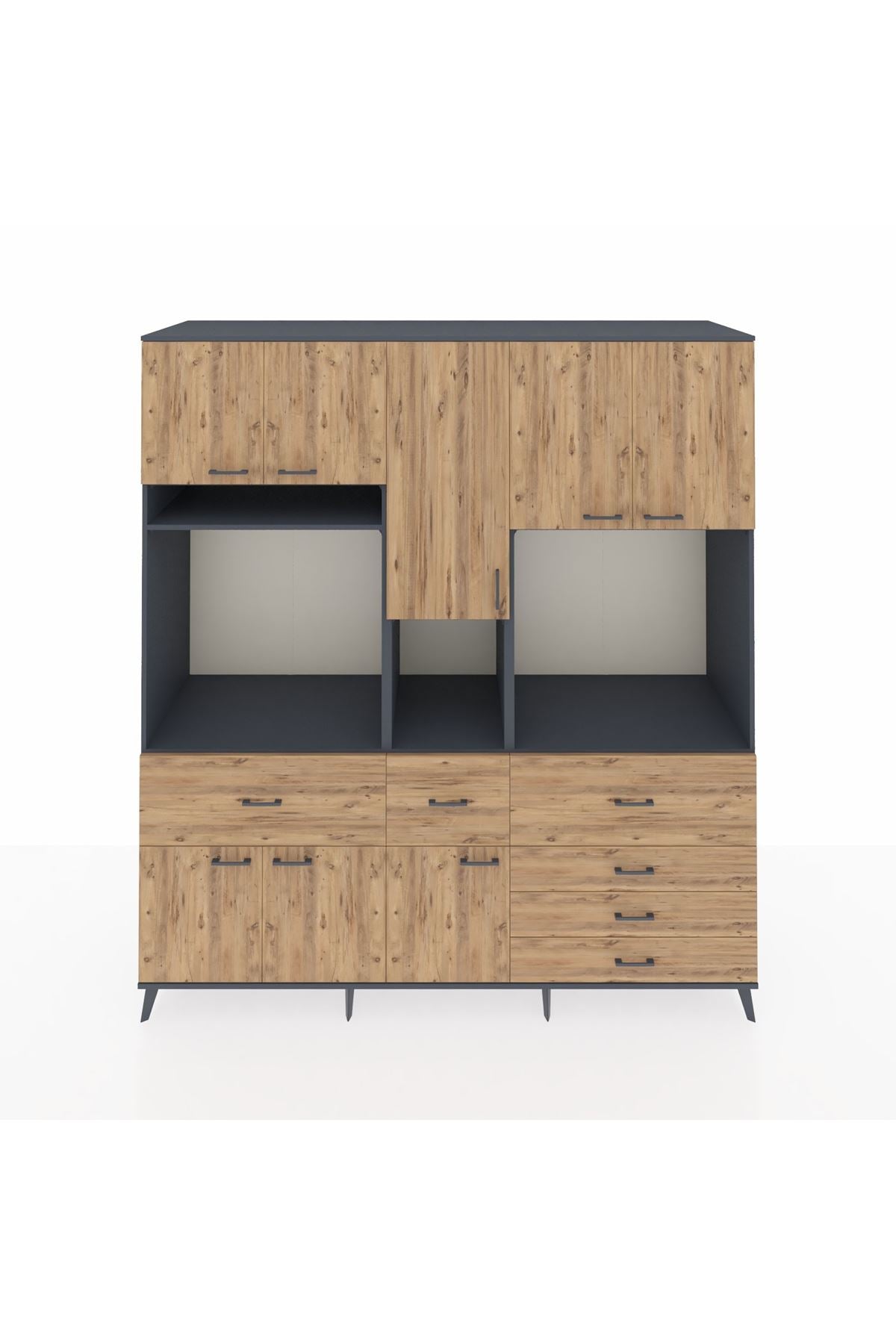 Kronos Dolap 10 Raflı 6 Çekmeceli 8 Kapaklı 220x59x243 Antrasit-Çam/Çam