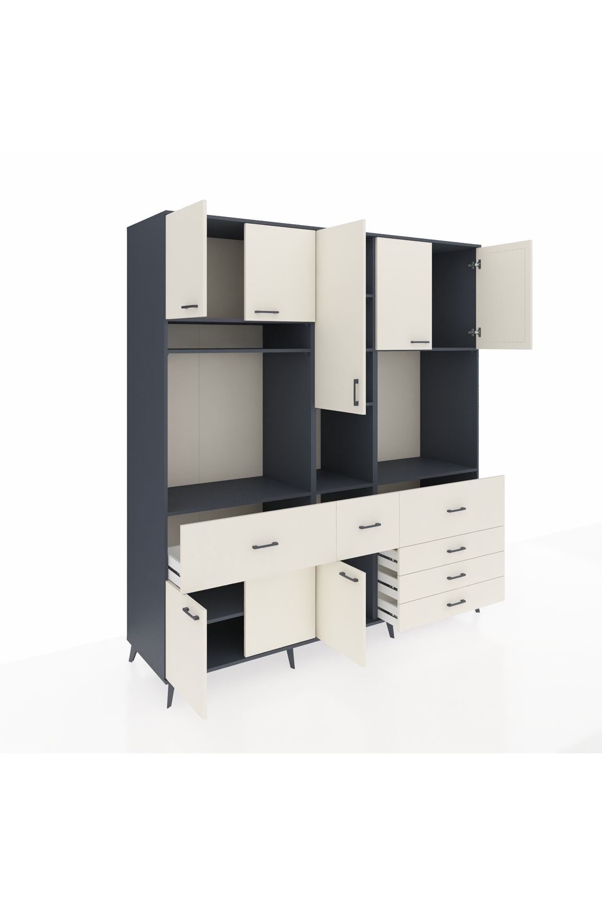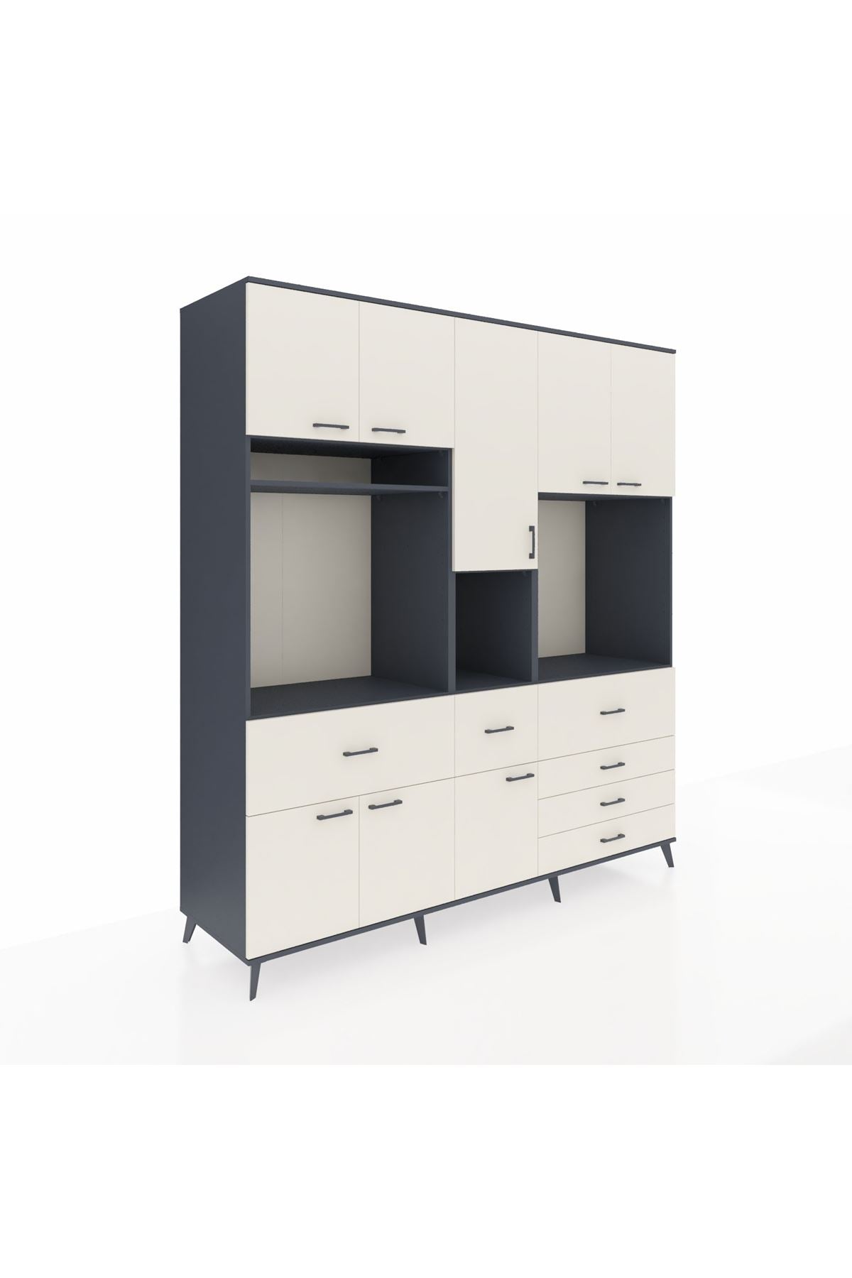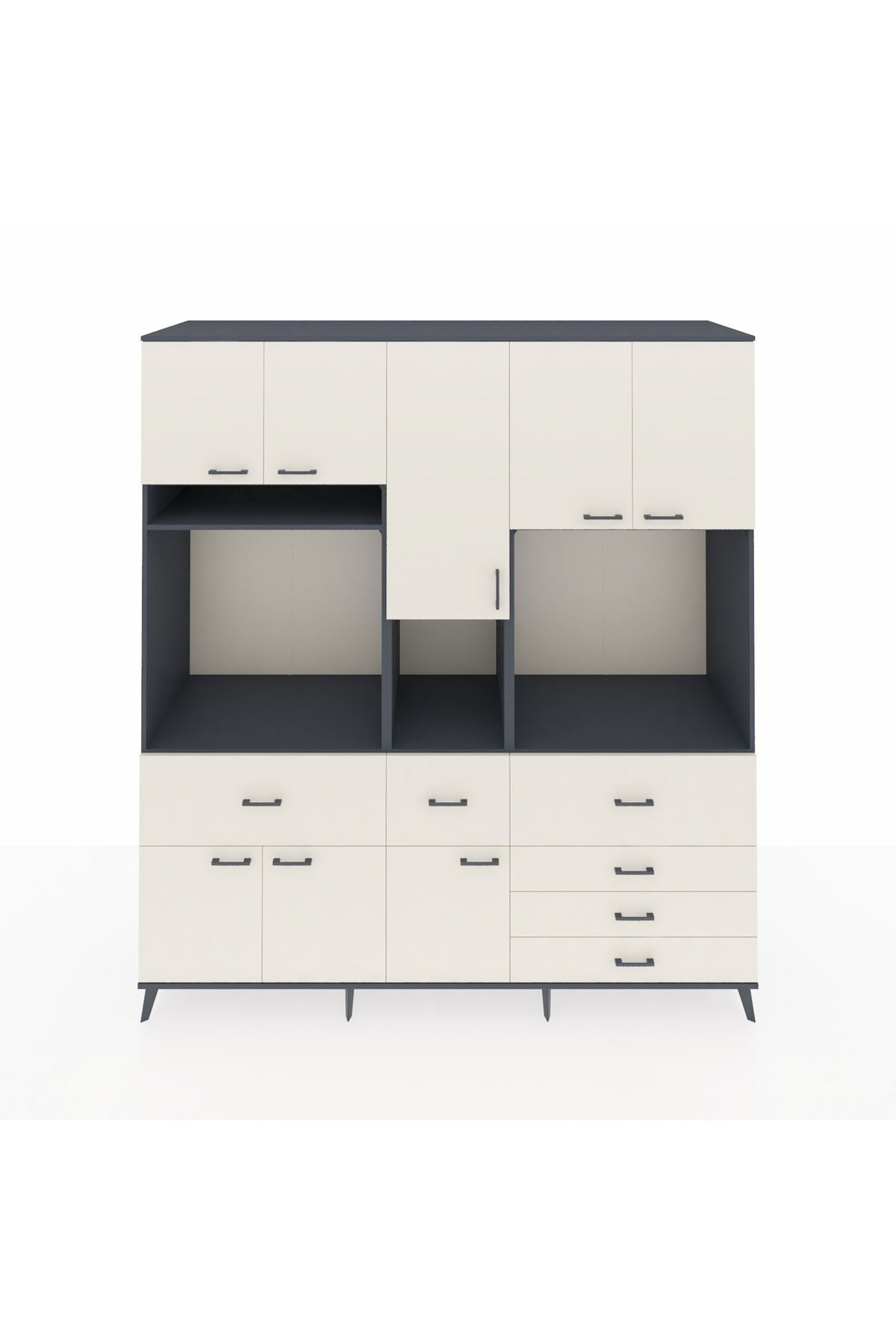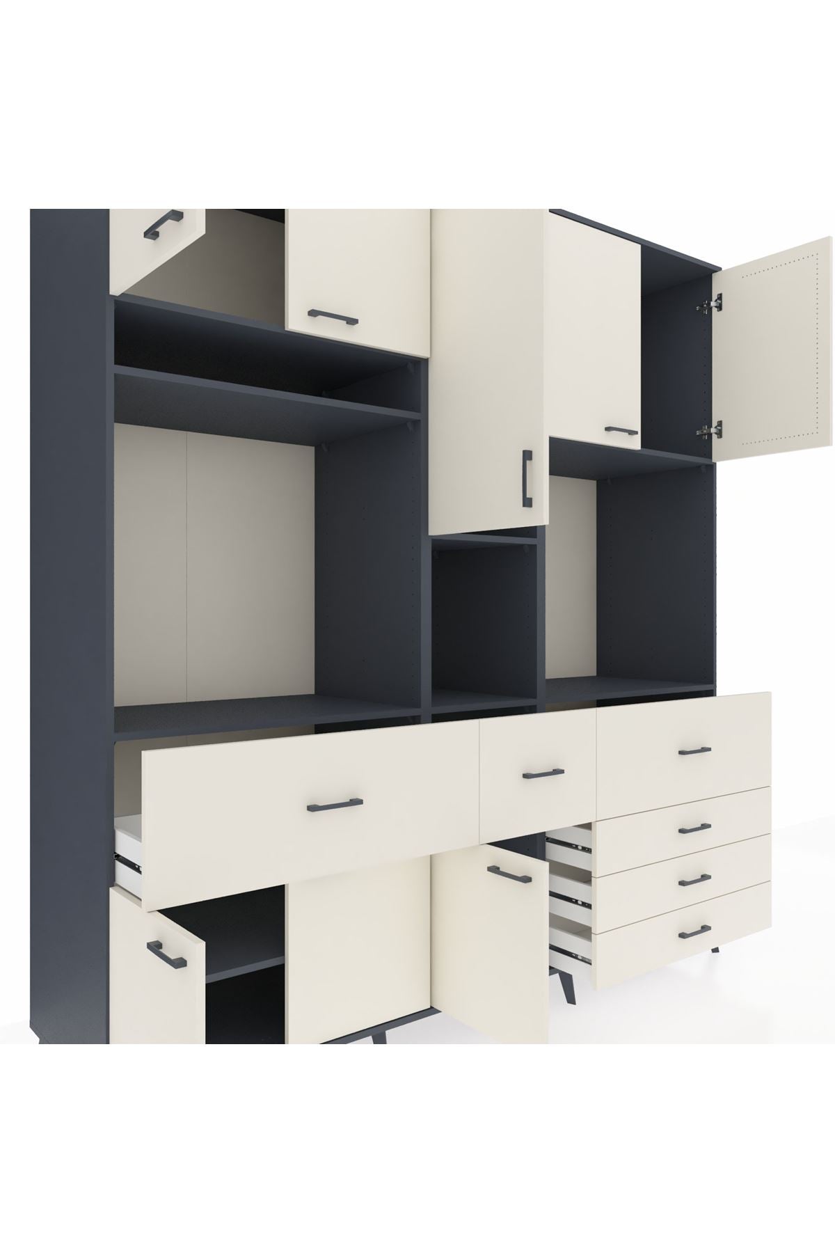 Kronos Dolap 10 Raflı 6 Çekmeceli 8 Kapaklı 220x59x243 Antrasit-Aytaşı/Aytaşı