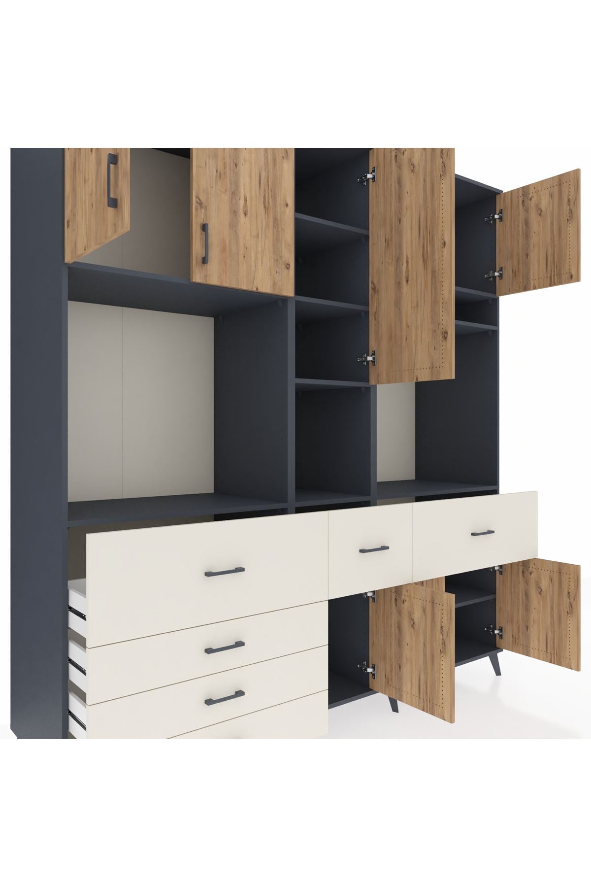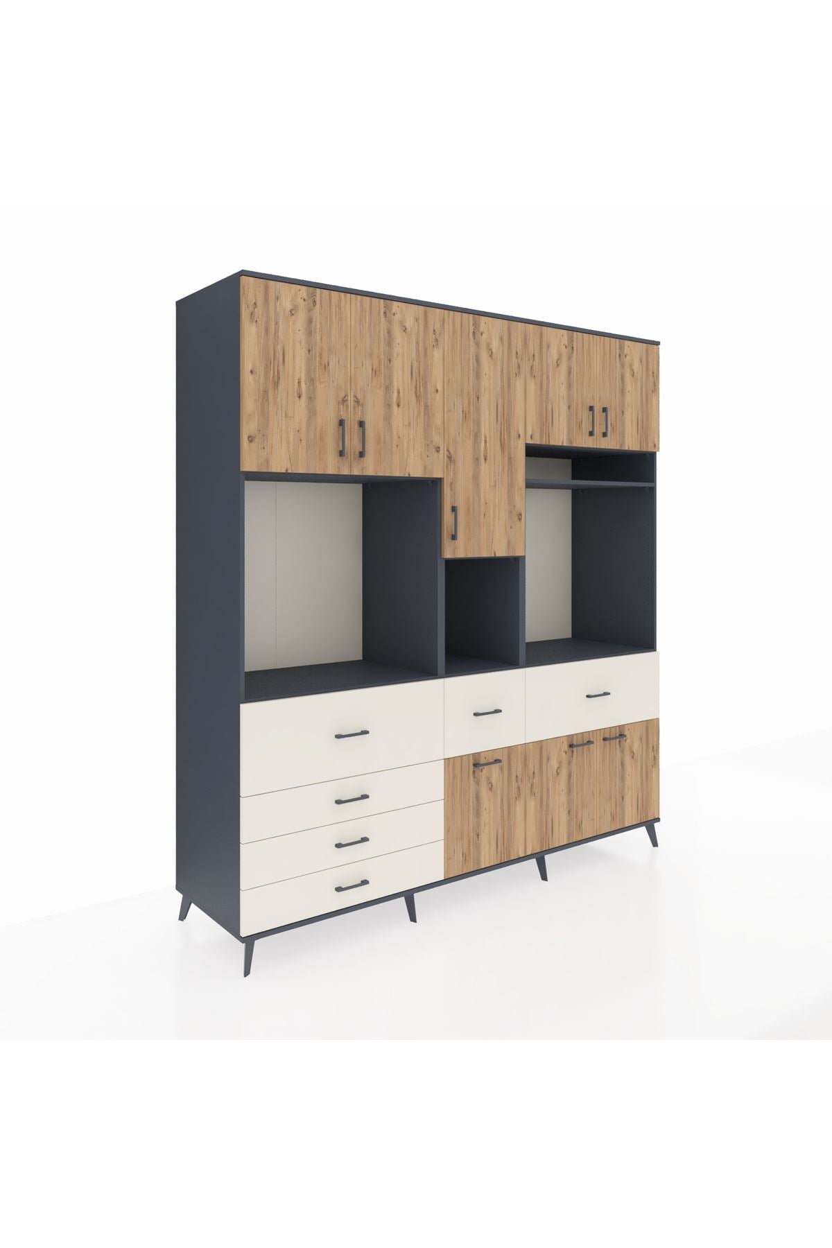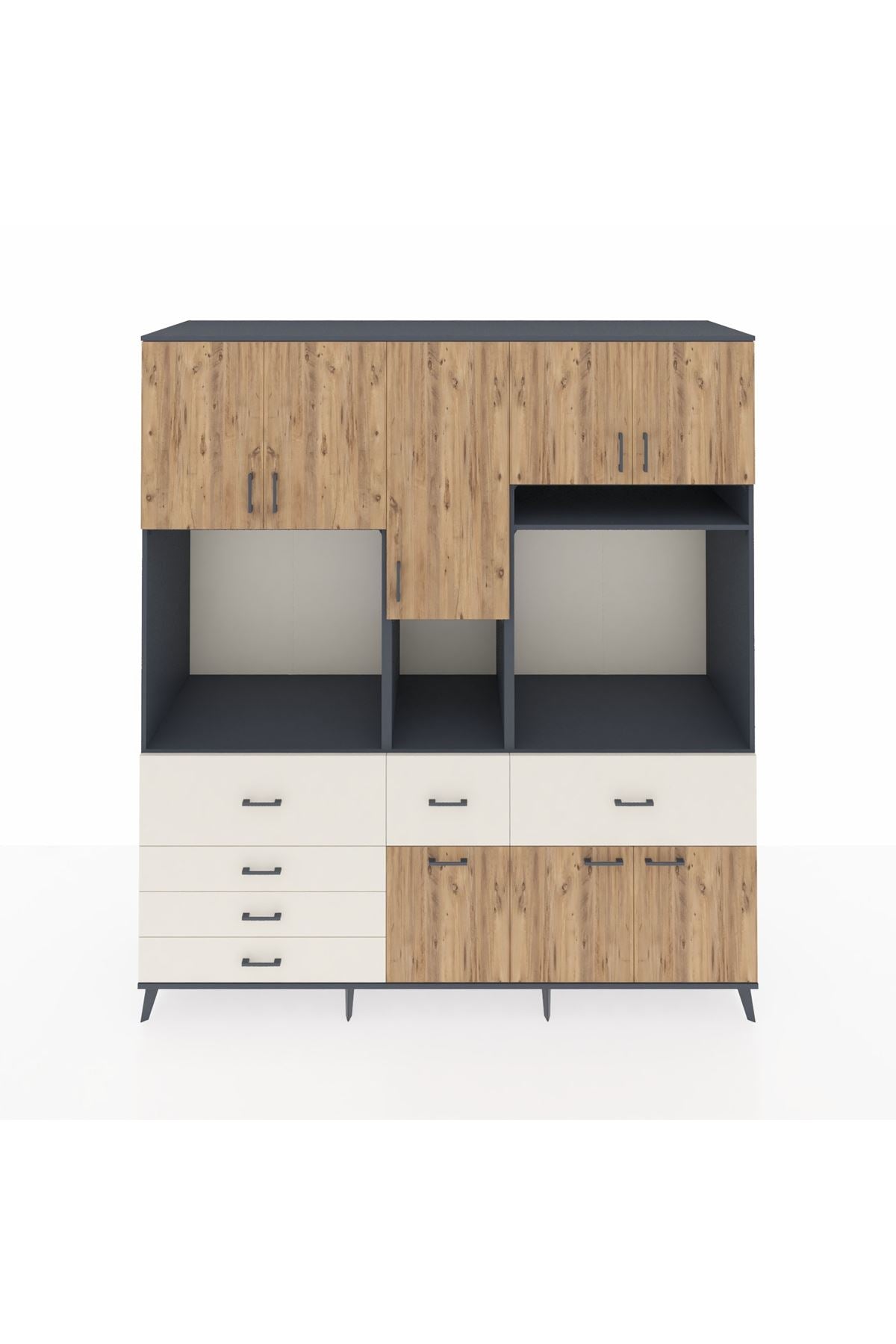 Kronos Dolap 10 Raflı 6 Çekmeceli 8 Kapaklı 220x59x243 Antrasit-Çam/Aytaşı