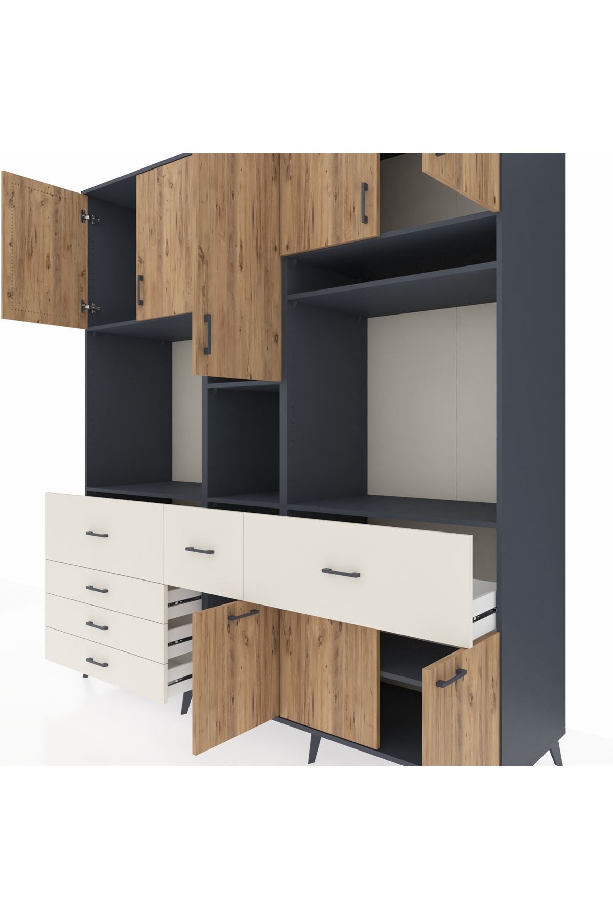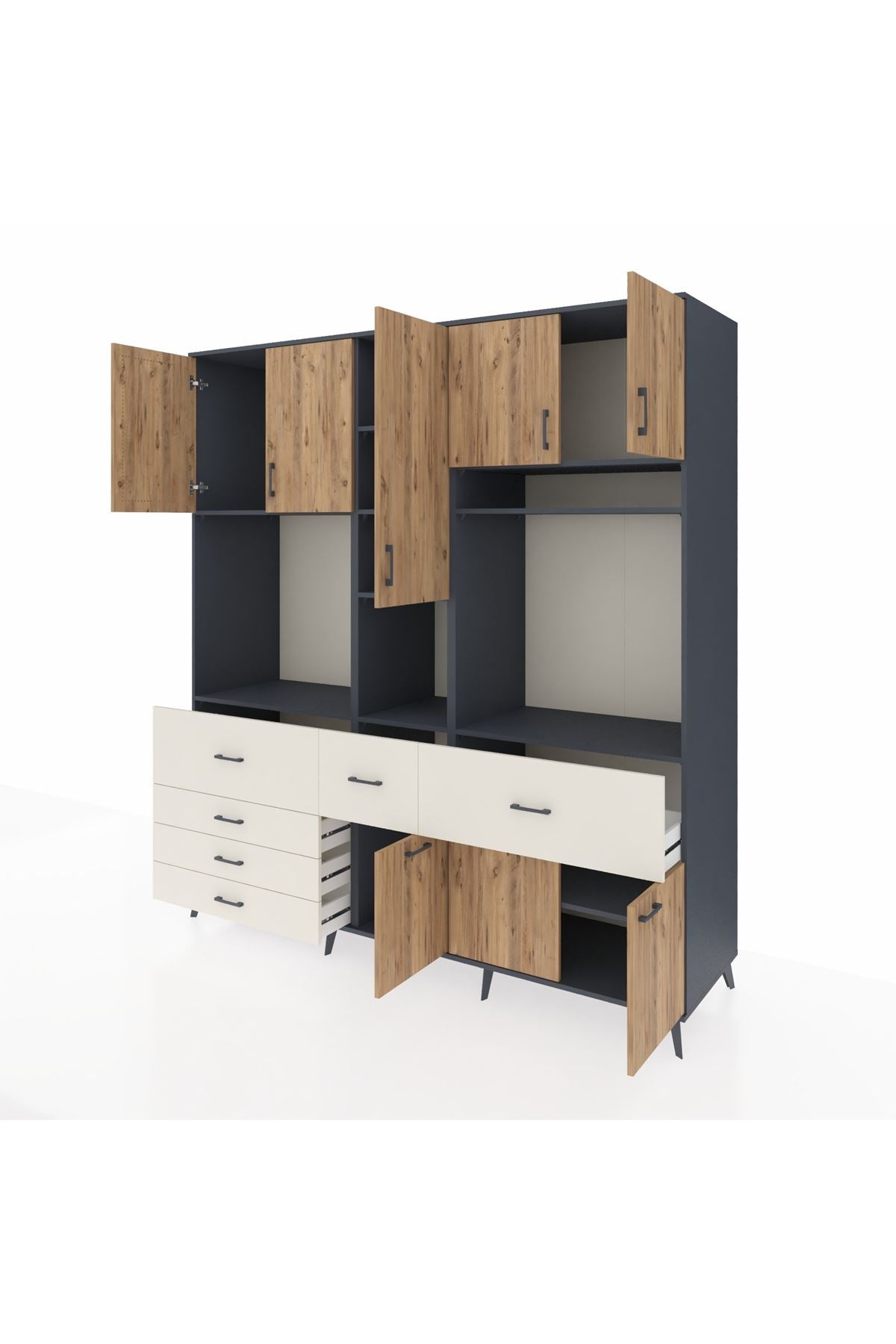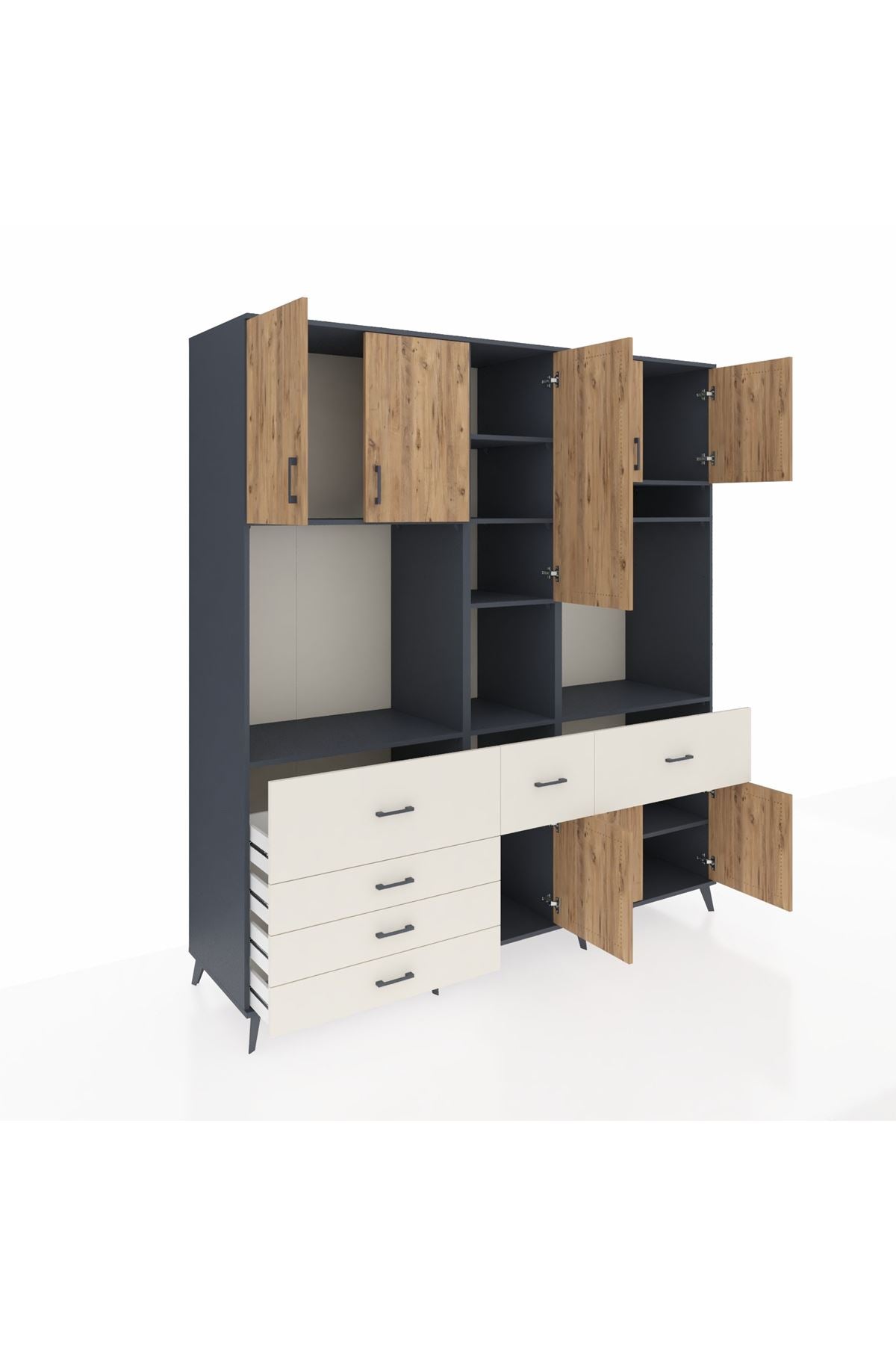 Kronos Dolap 10 Raflı 6 Çekmeceli 8 Kapaklı 220x59x243 Antrasit-Çam/Aytaşı