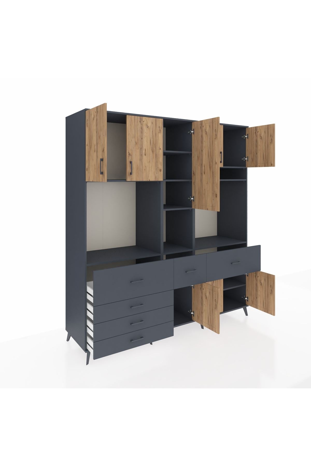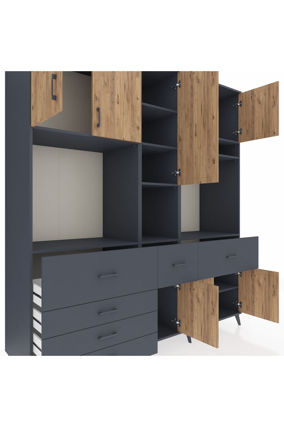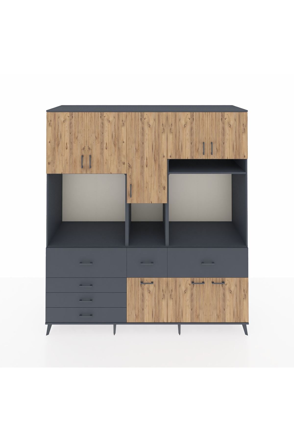 Kronos Dolap 10 Raflı 6 Çekmeceli 8 Kapaklı 220x59x243 Antrasit-Çam/Antrasit
