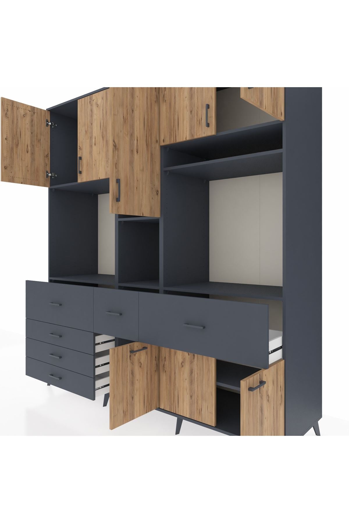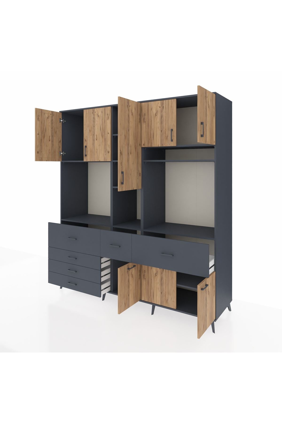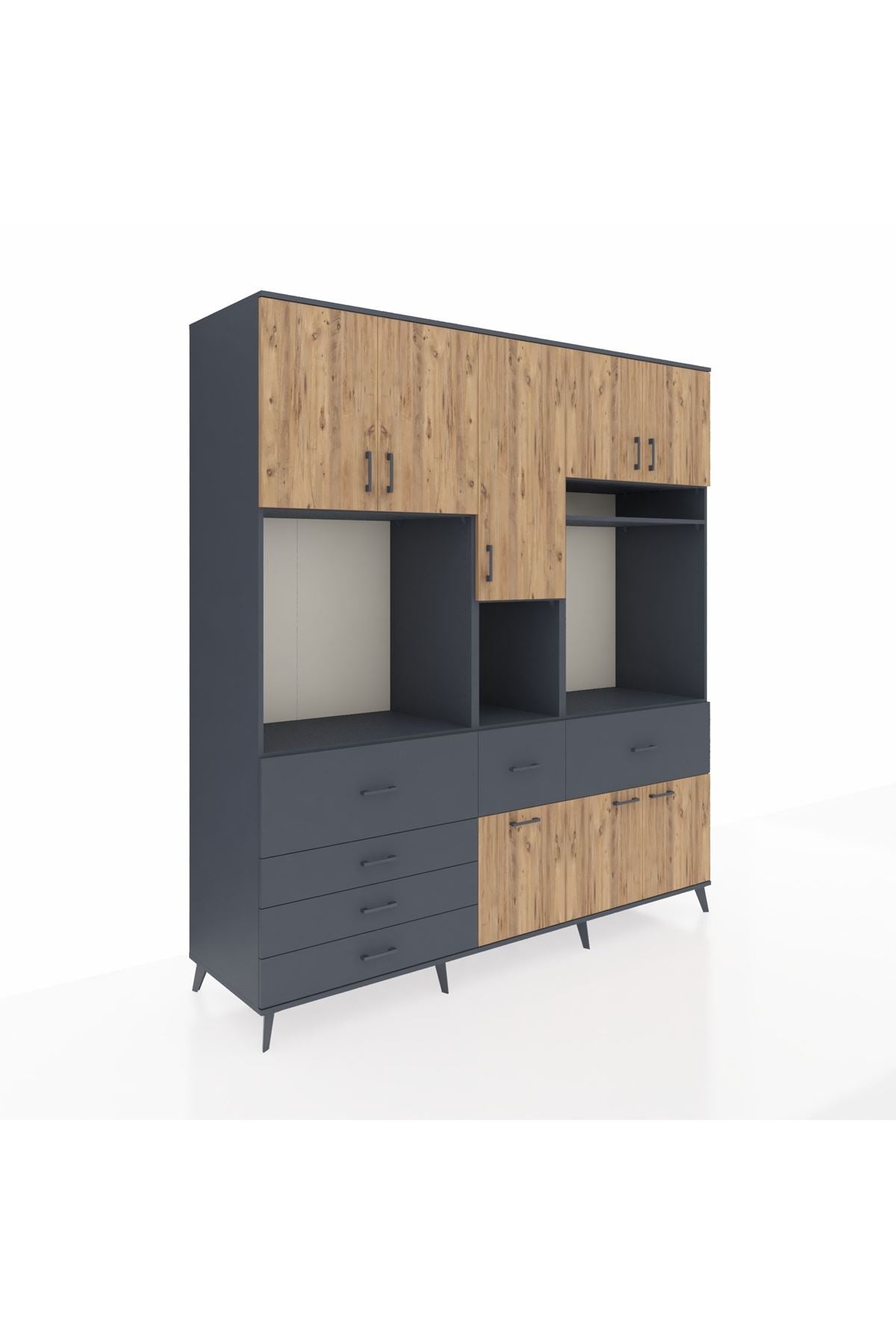 Kronos Dolap 10 Raflı 6 Çekmeceli 8 Kapaklı 220x59x243 Antrasit-Çam/Antrasit