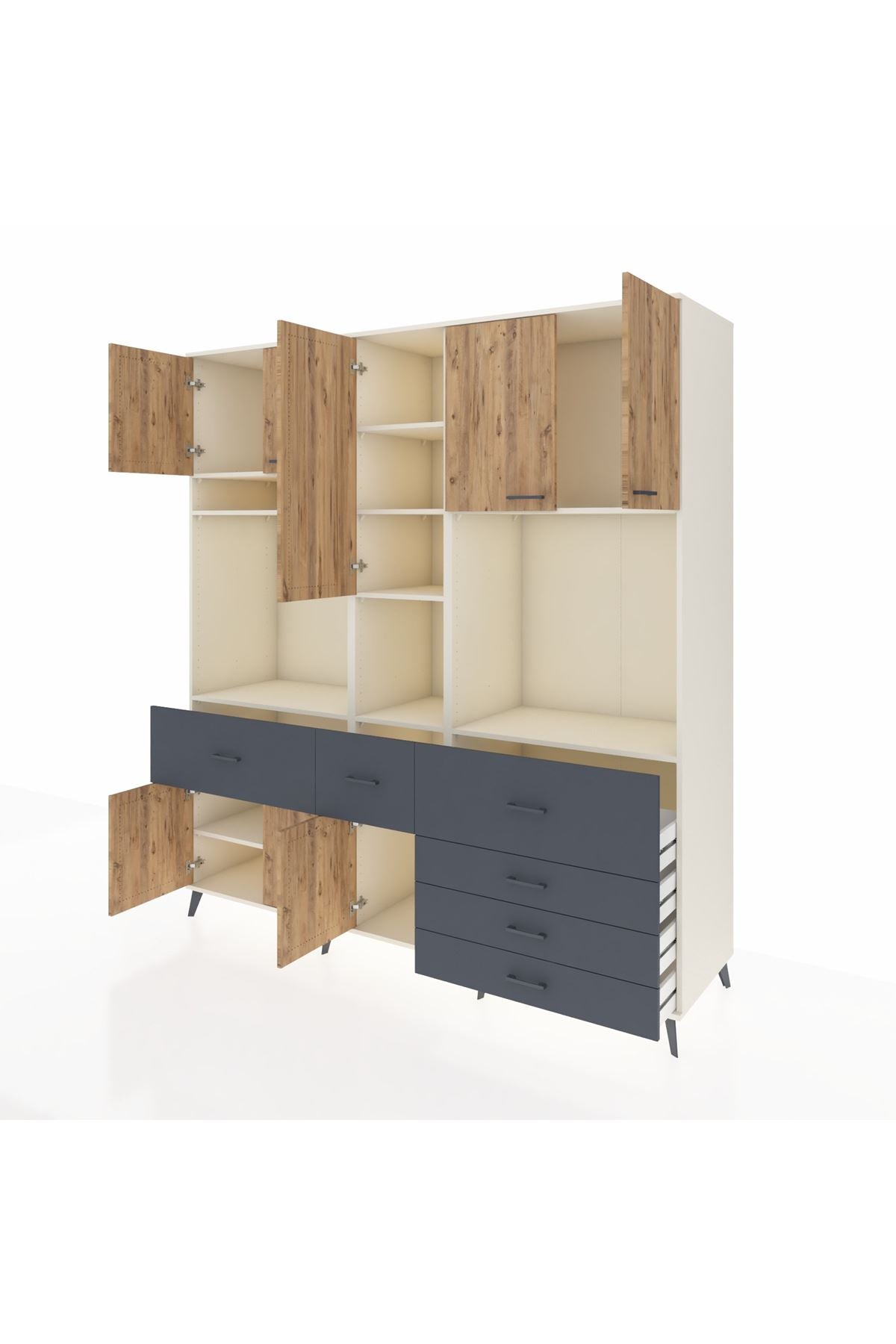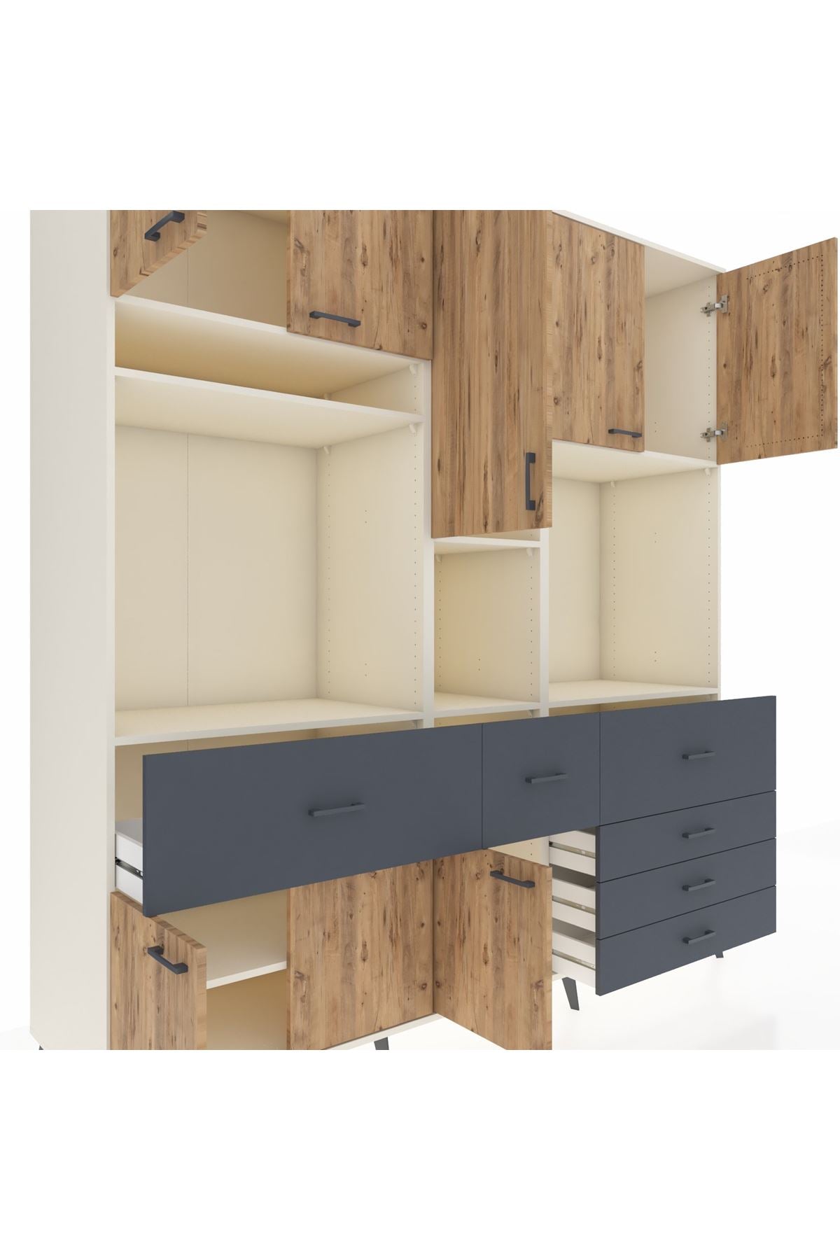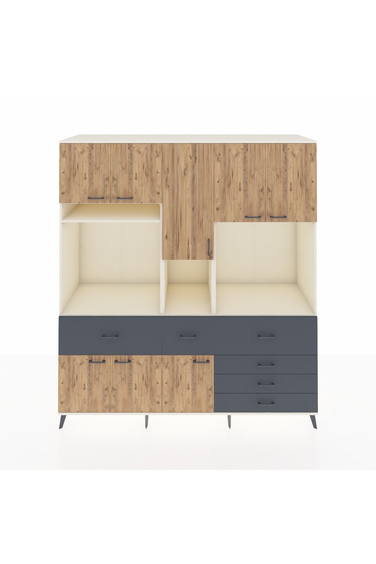 Kronos Dolap 10 Raflı 6 Çekmeceli 8 Kapaklı 220x59x243 Aytaşı-Çam/Antrasit