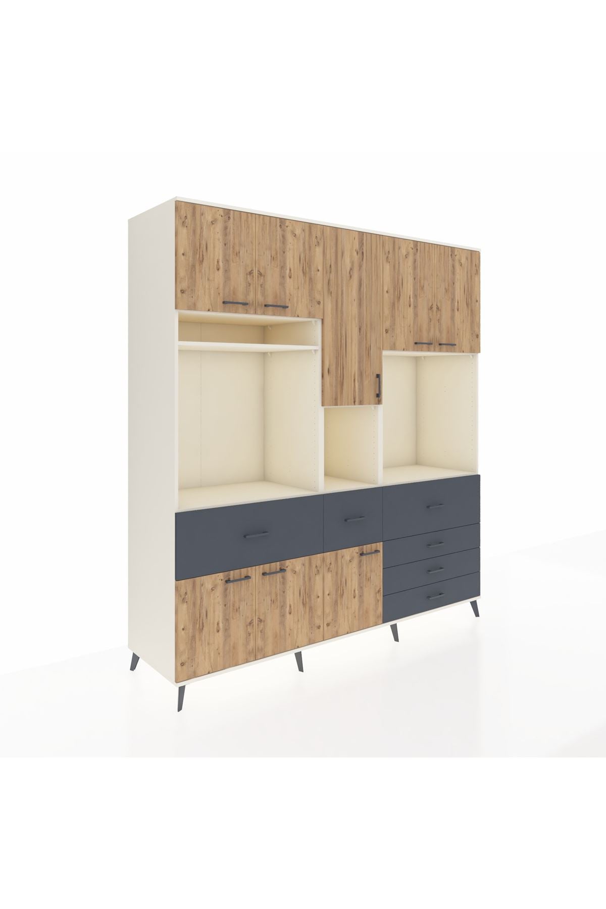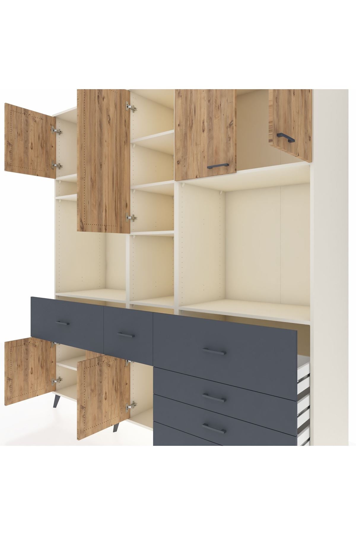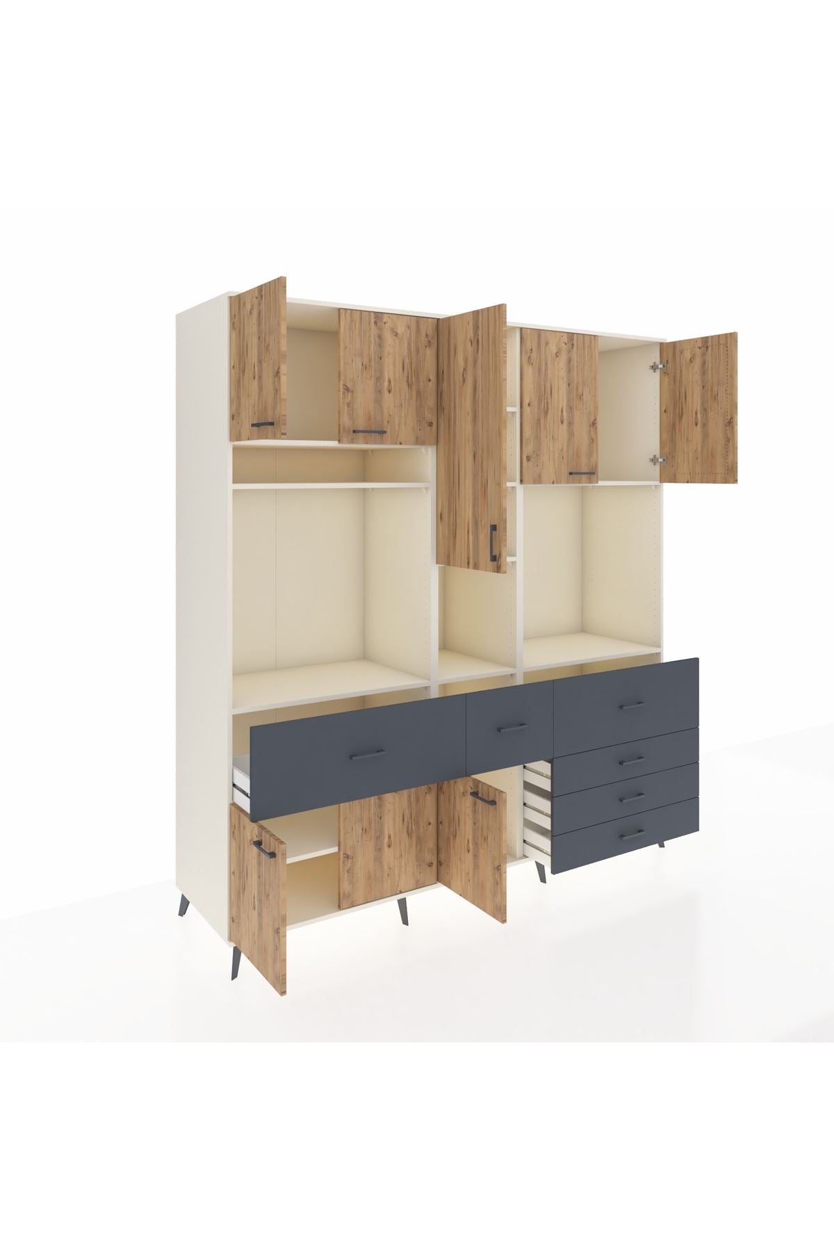 Kronos Dolap 10 Raflı 6 Çekmeceli 8 Kapaklı 220x59x243 Aytaşı-Çam/Antrasit