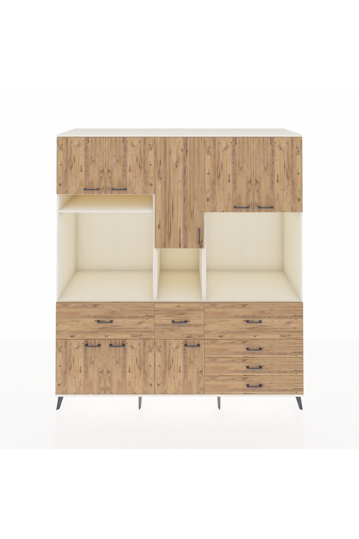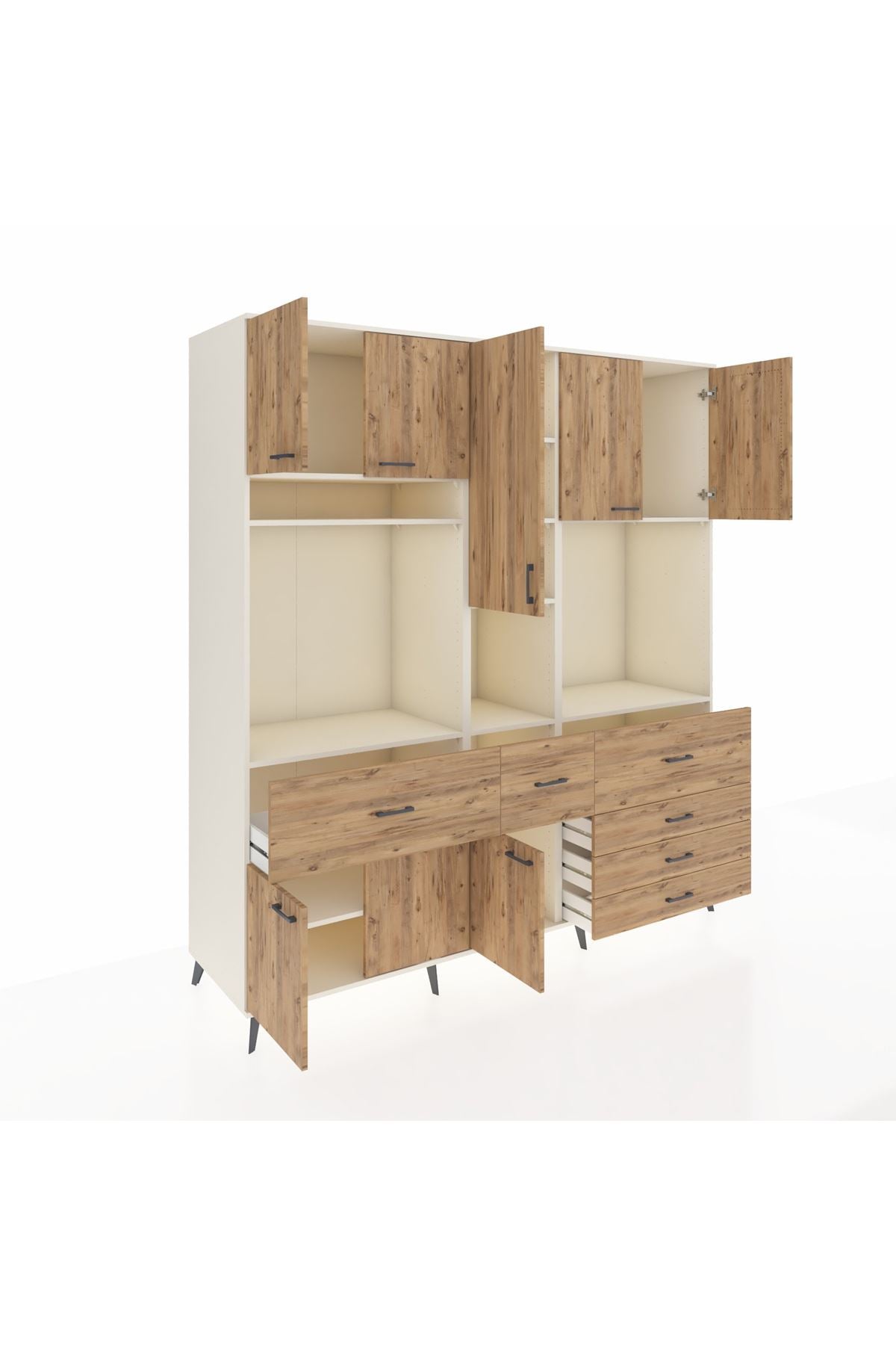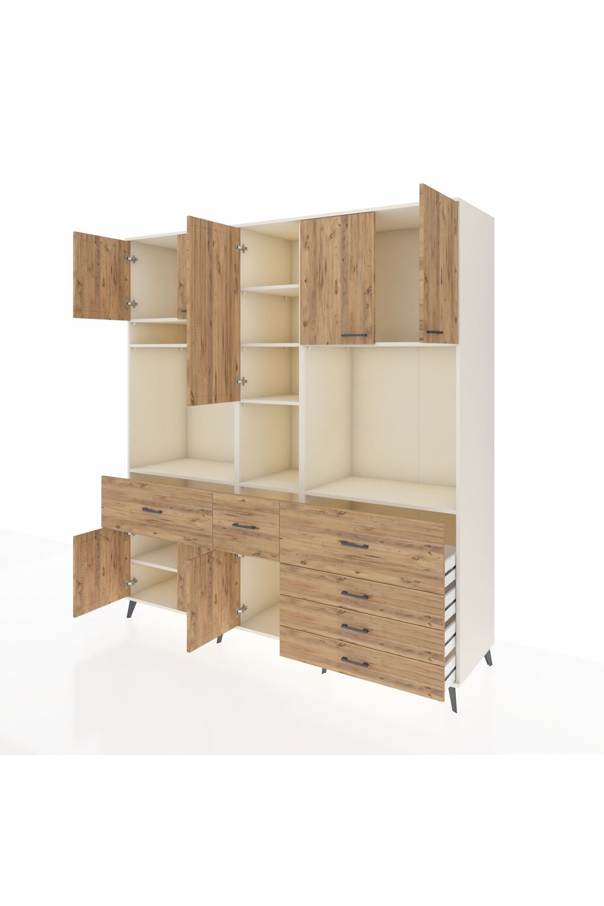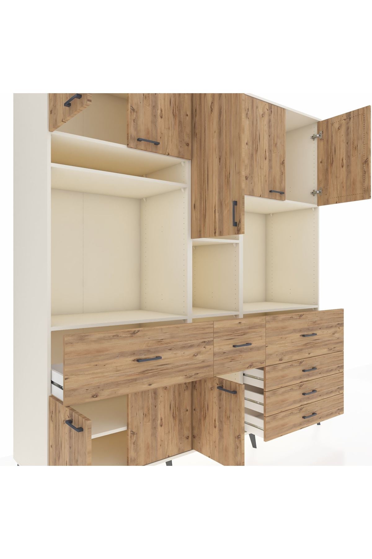Kronos Dolap 10 Raflı 6 Çekmeceli 8 Kapaklı 220x59x243 Aytaşı-Çam/Çam