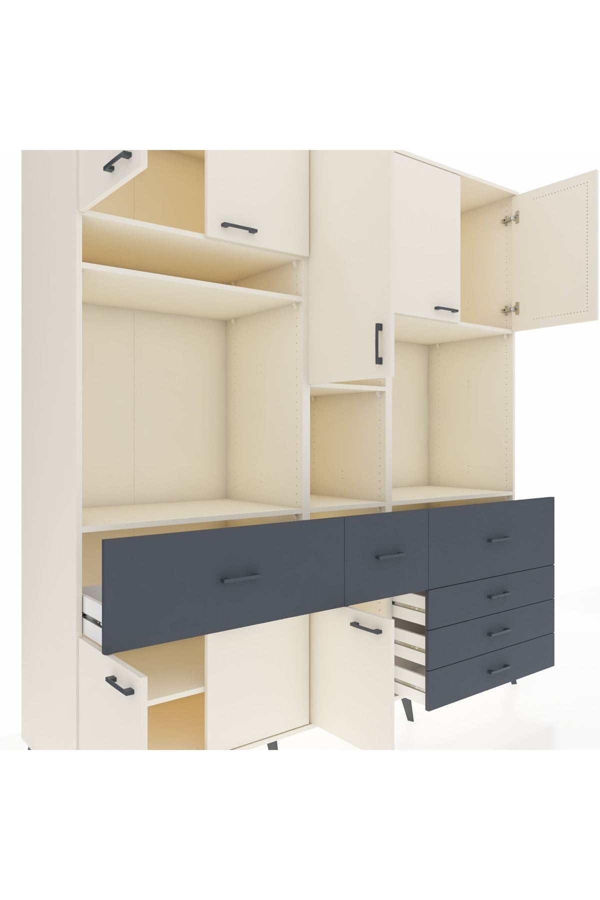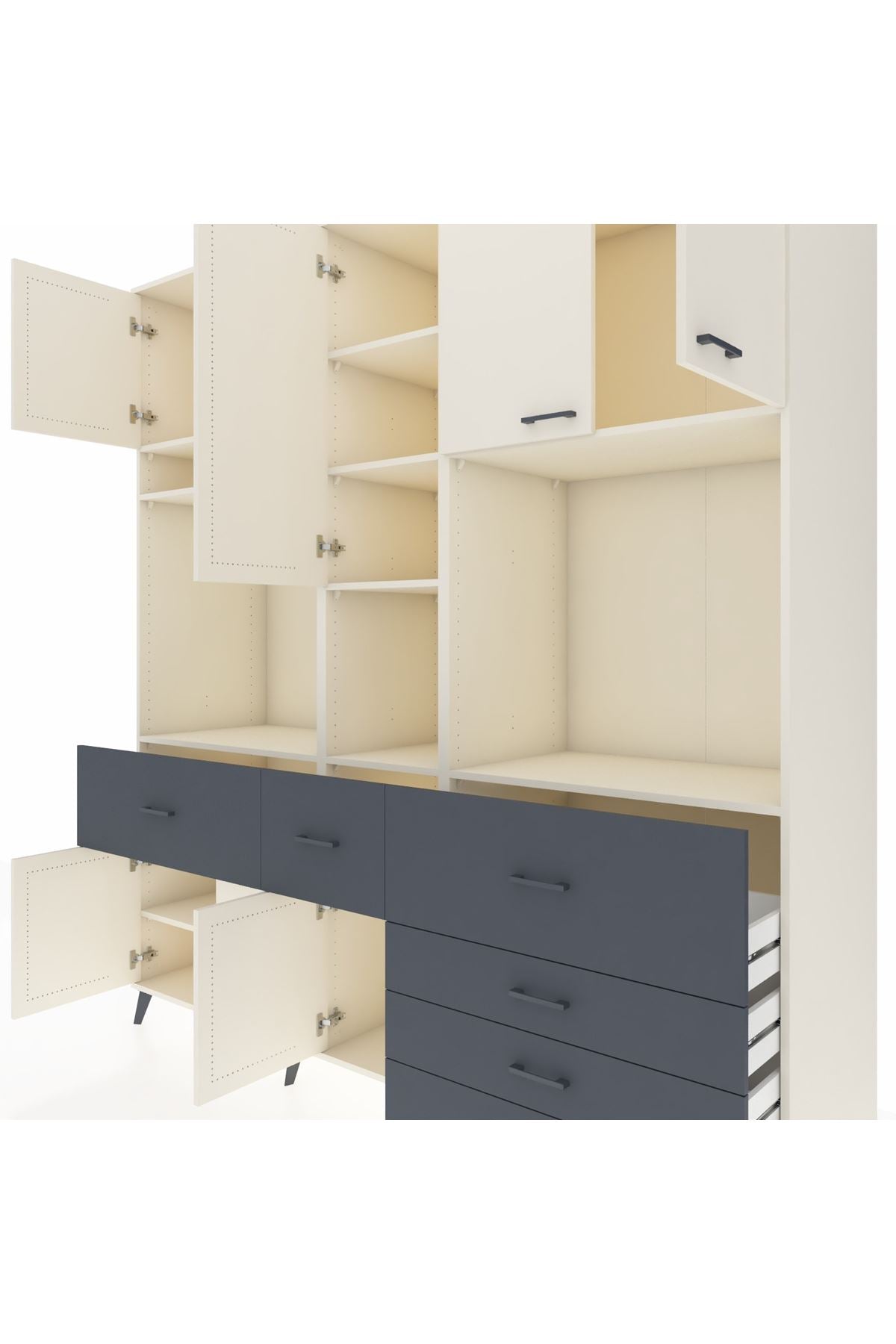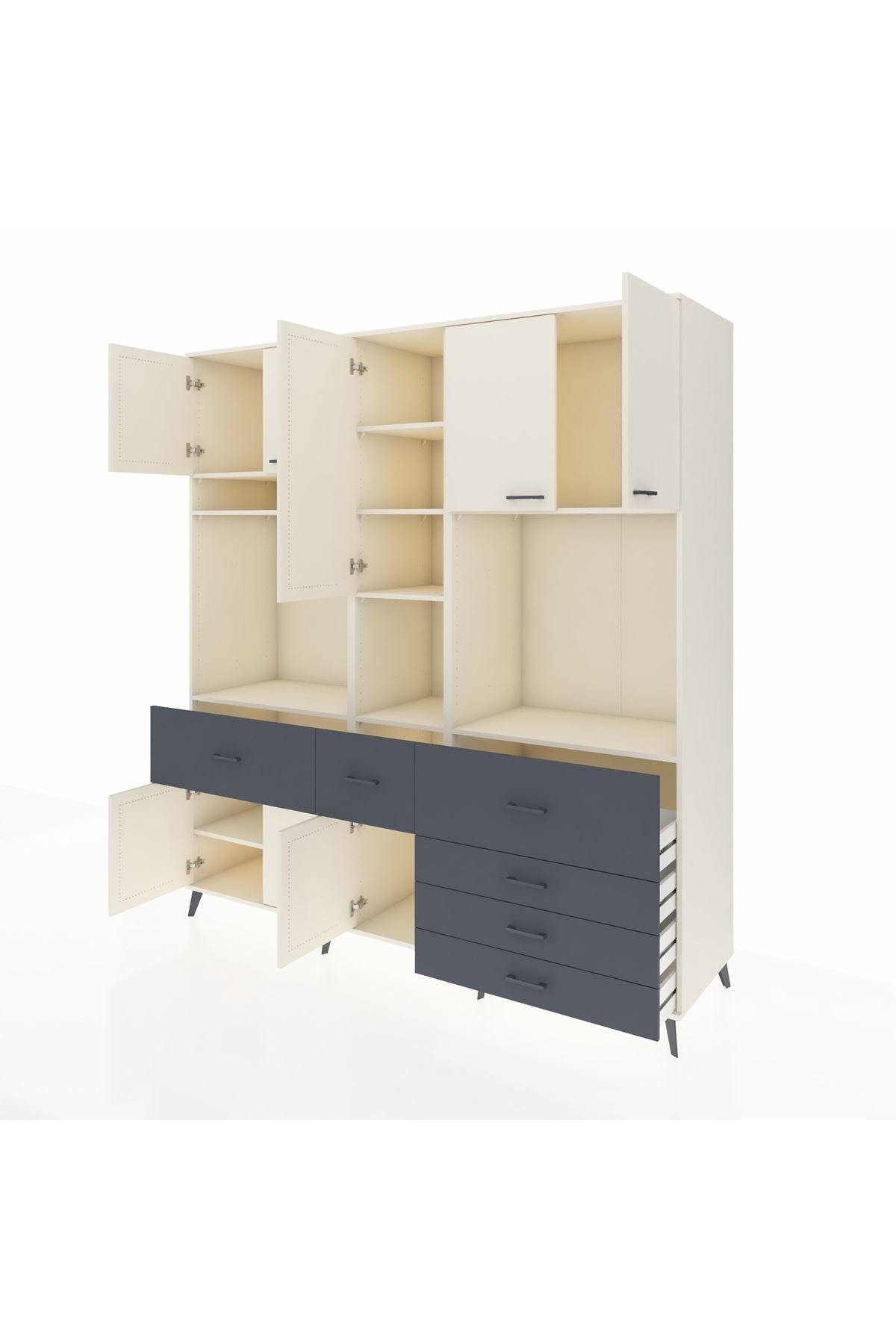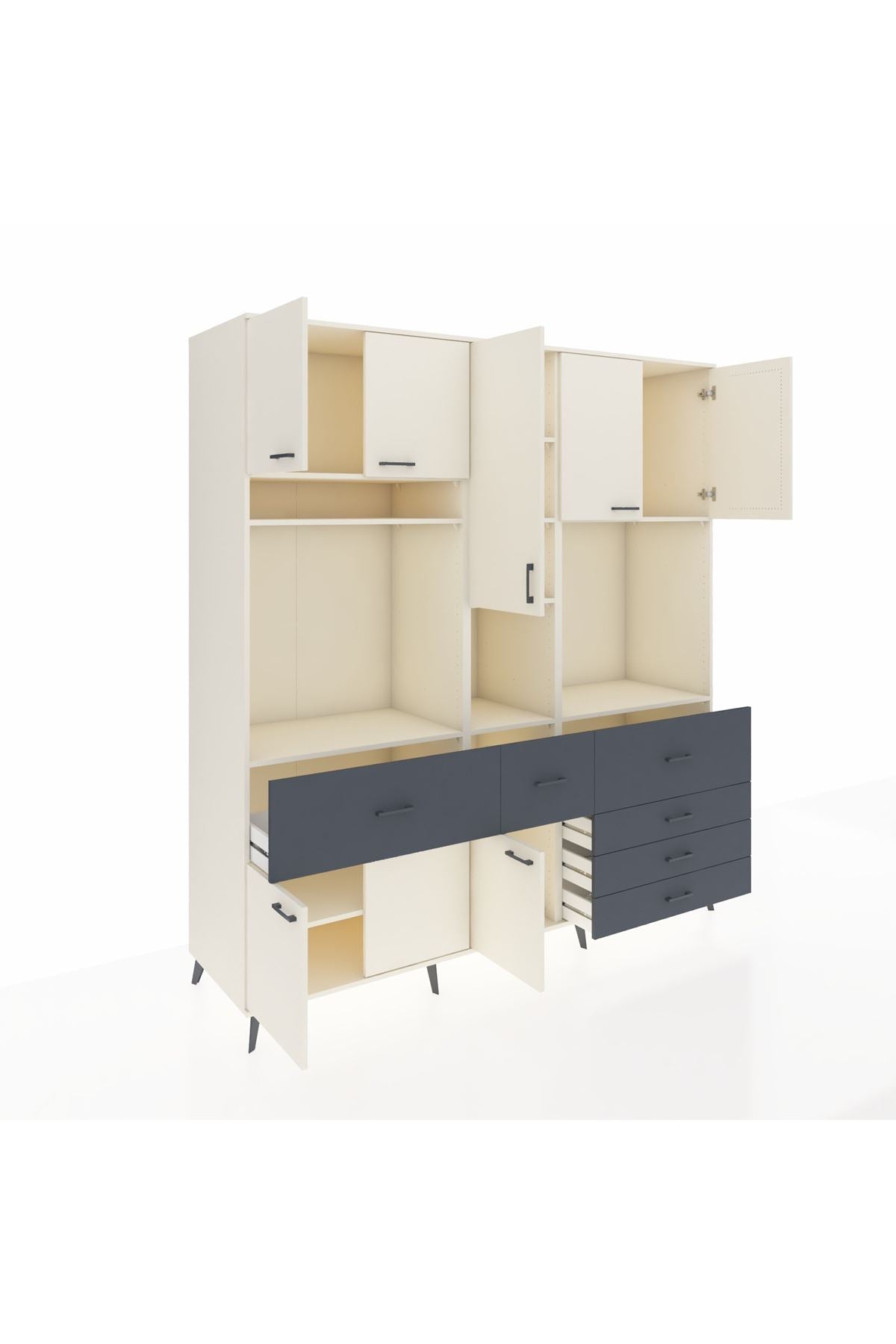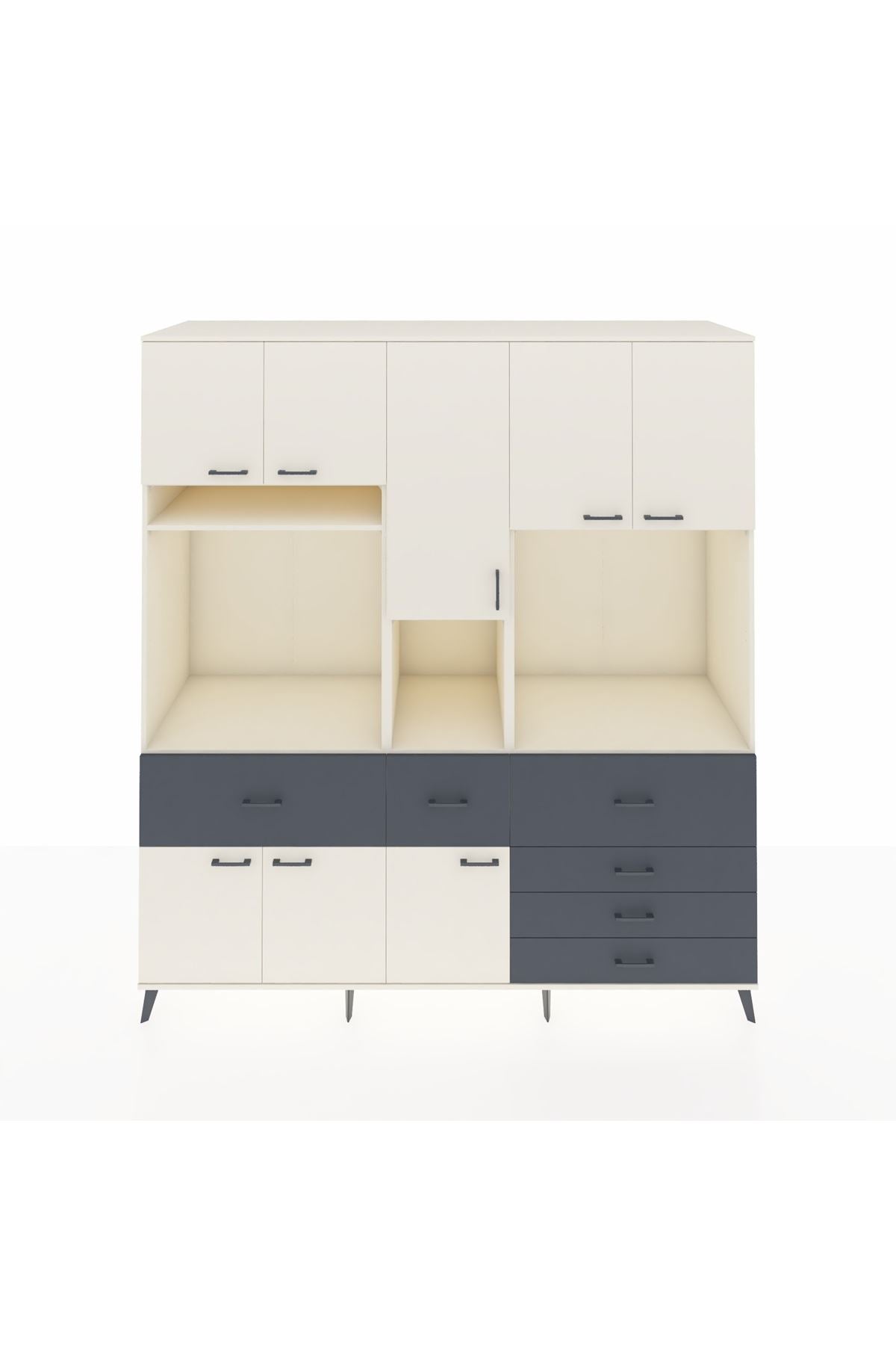 Kronos Dolap 10 Raflı 6 Çekmeceli 8 Kapaklı 220x59x243 Aytaşı-Aytaşı/Antrasit