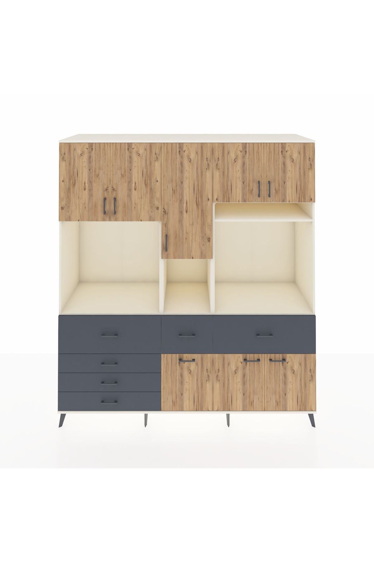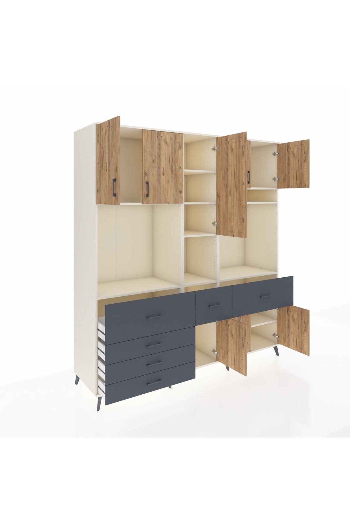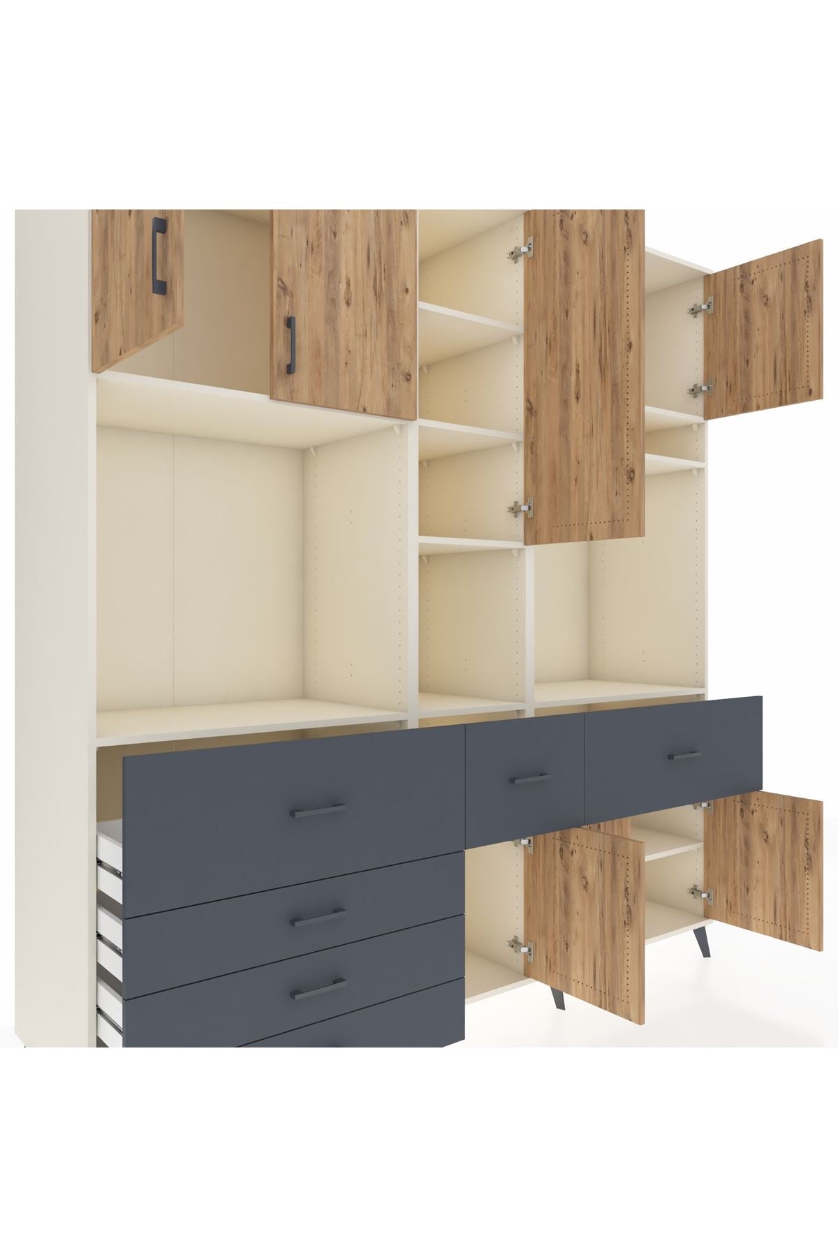 Kronos Dolap 10 Raflı 6 Çekmeceli 8 Kapaklı 220x59x243 Aytaşı-Çam/Antrasit