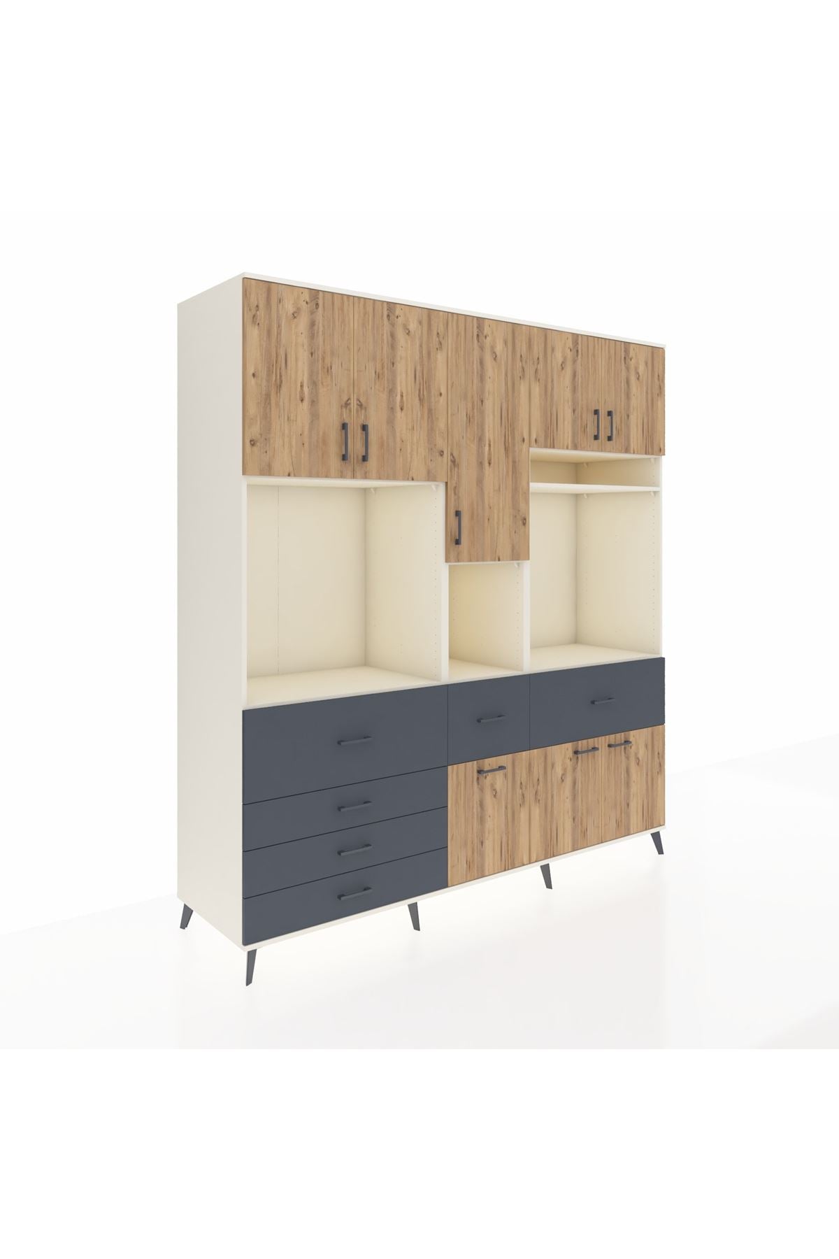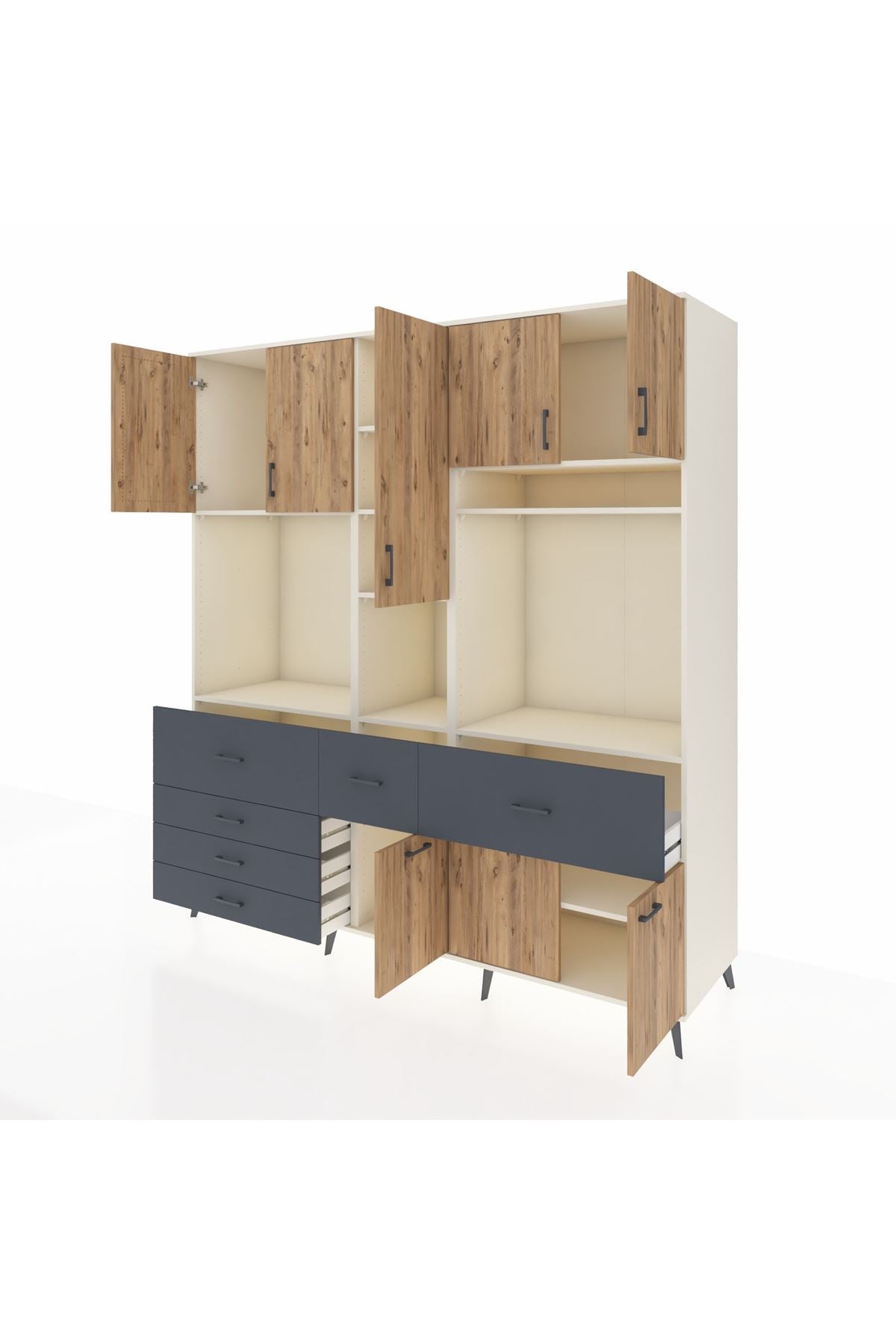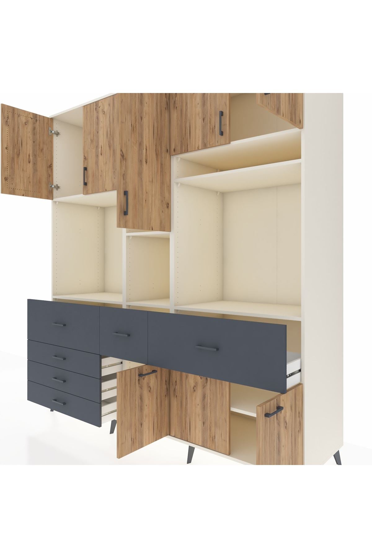 Kronos Dolap 10 Raflı 6 Çekmeceli 8 Kapaklı 220x59x243 Aytaşı-Çam/Antrasit