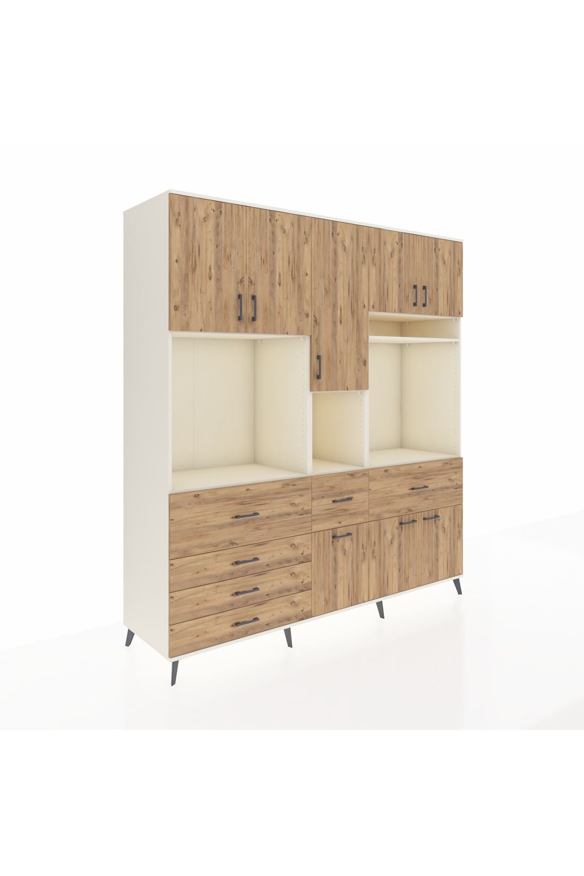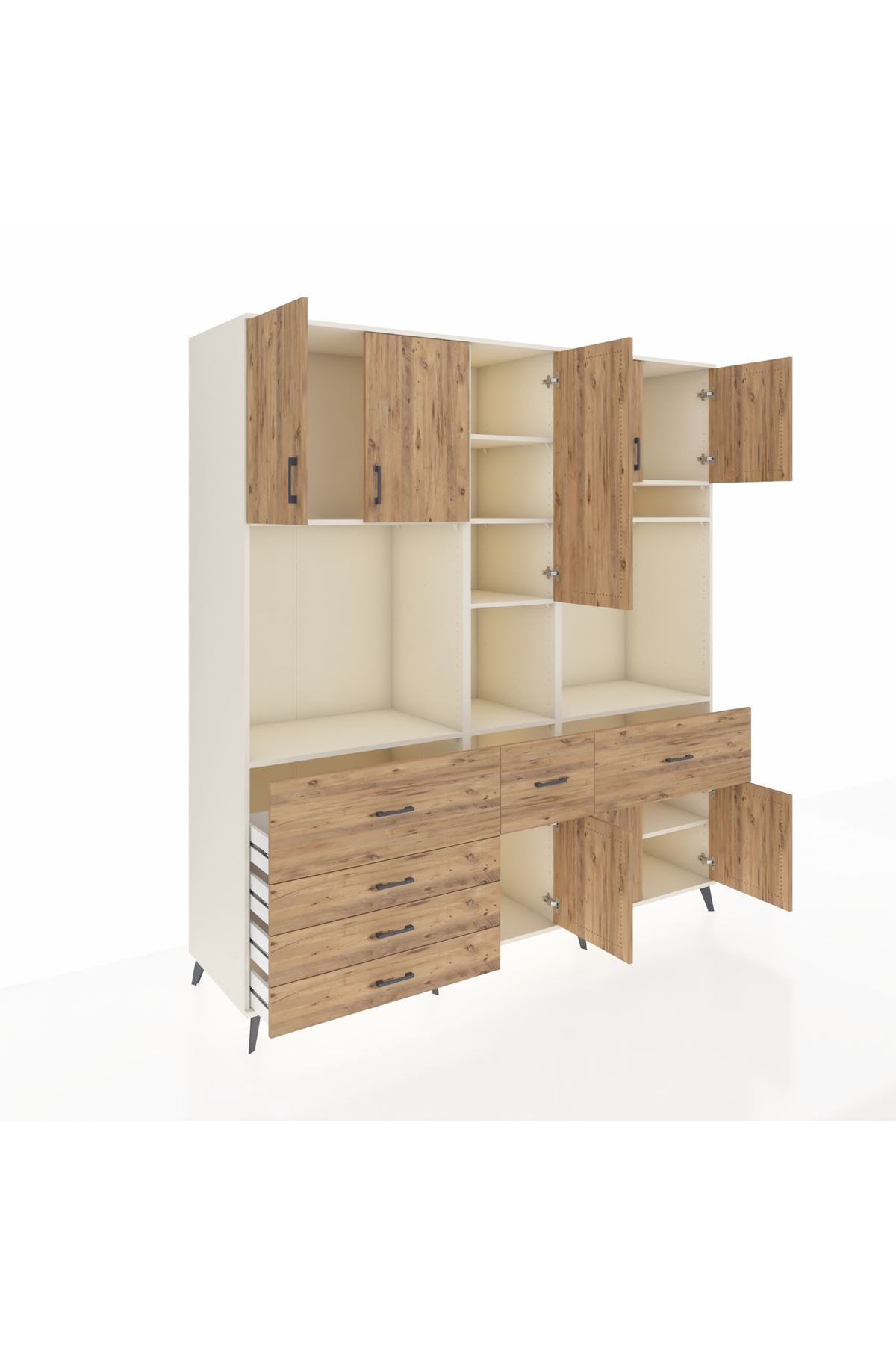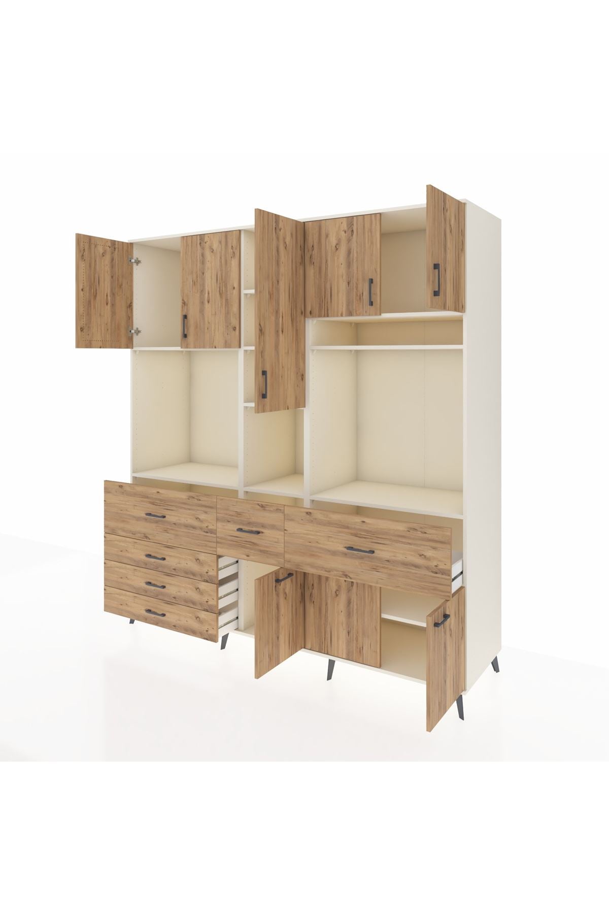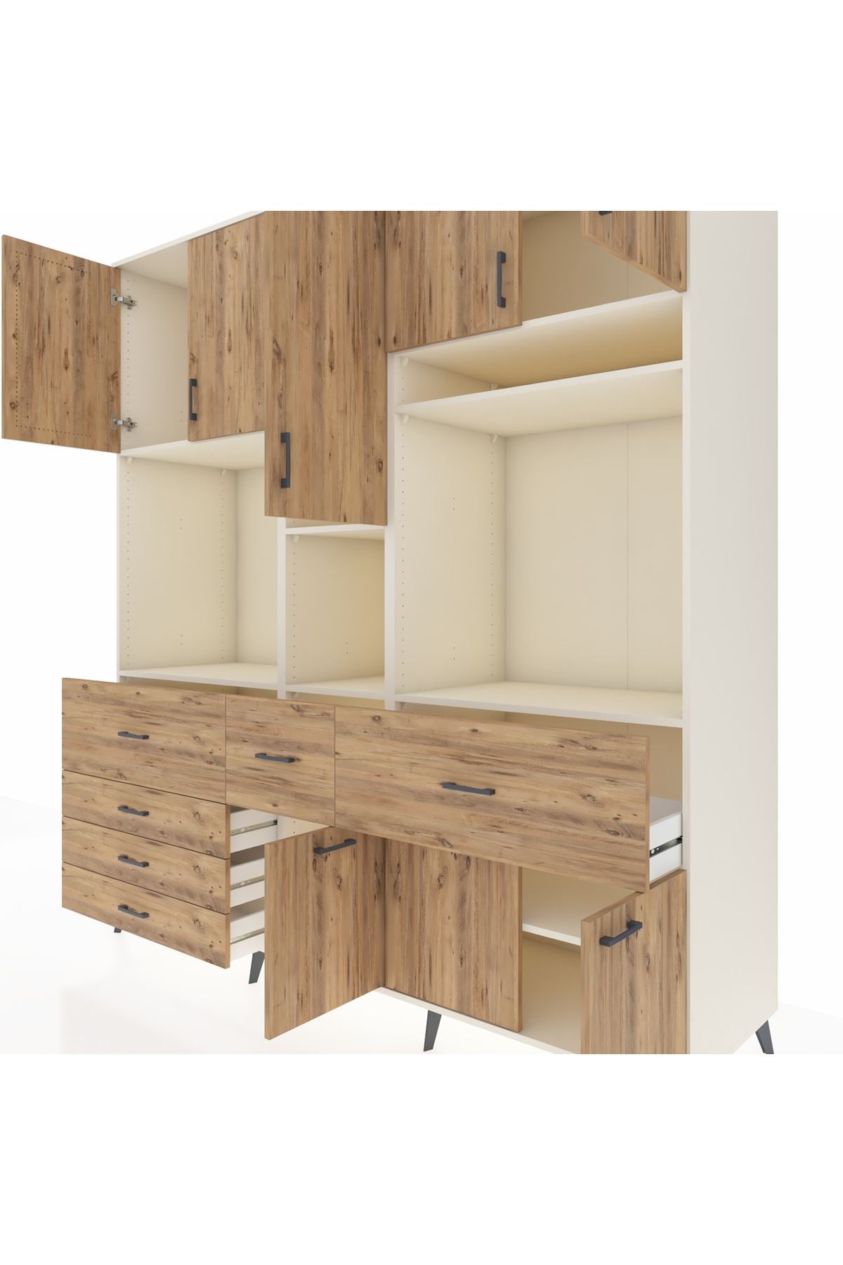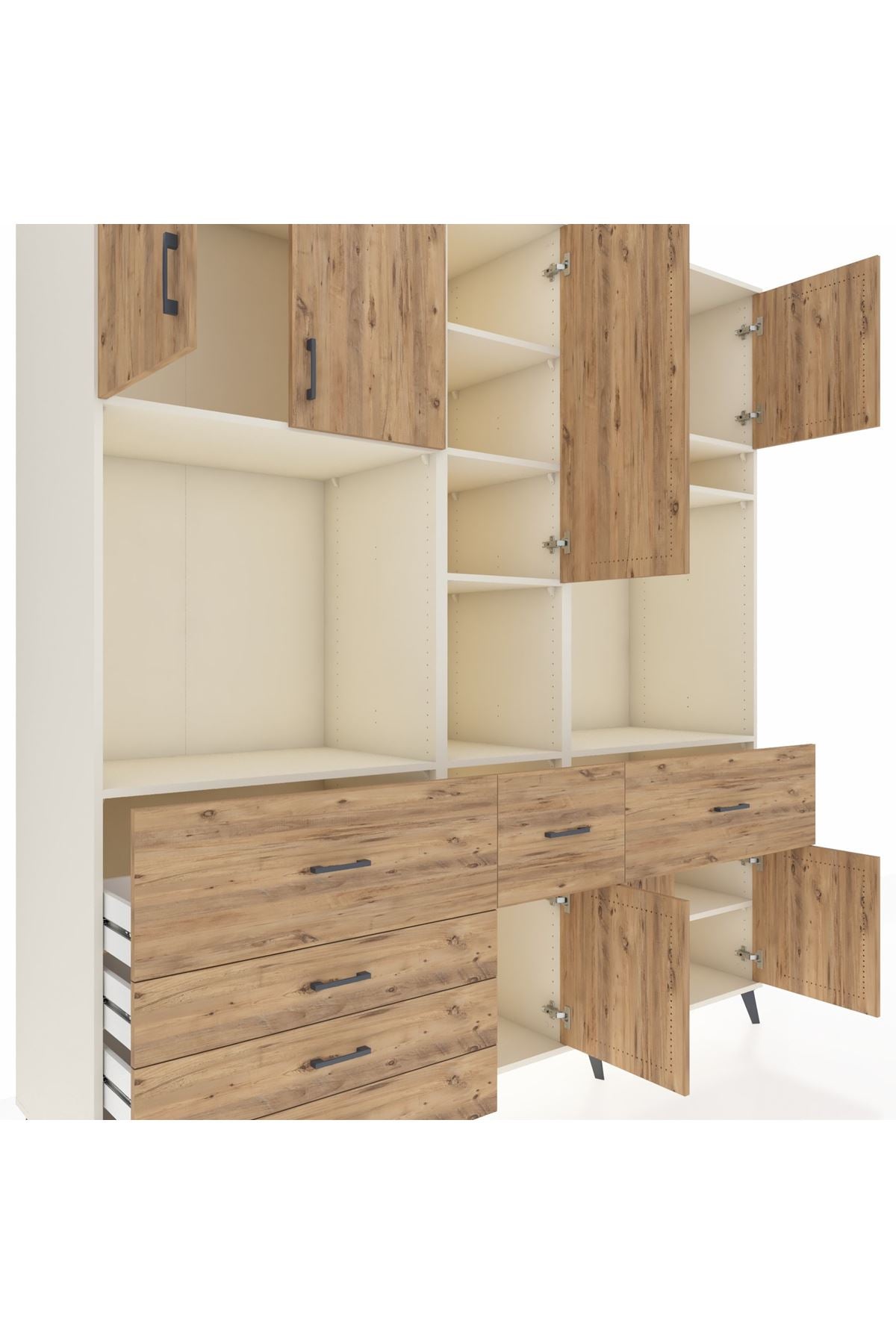 Kronos Dolap 10 Raflı 6 Çekmeceli 8 Kapaklı 220x59x243 Aytaşı-Çam/Çam