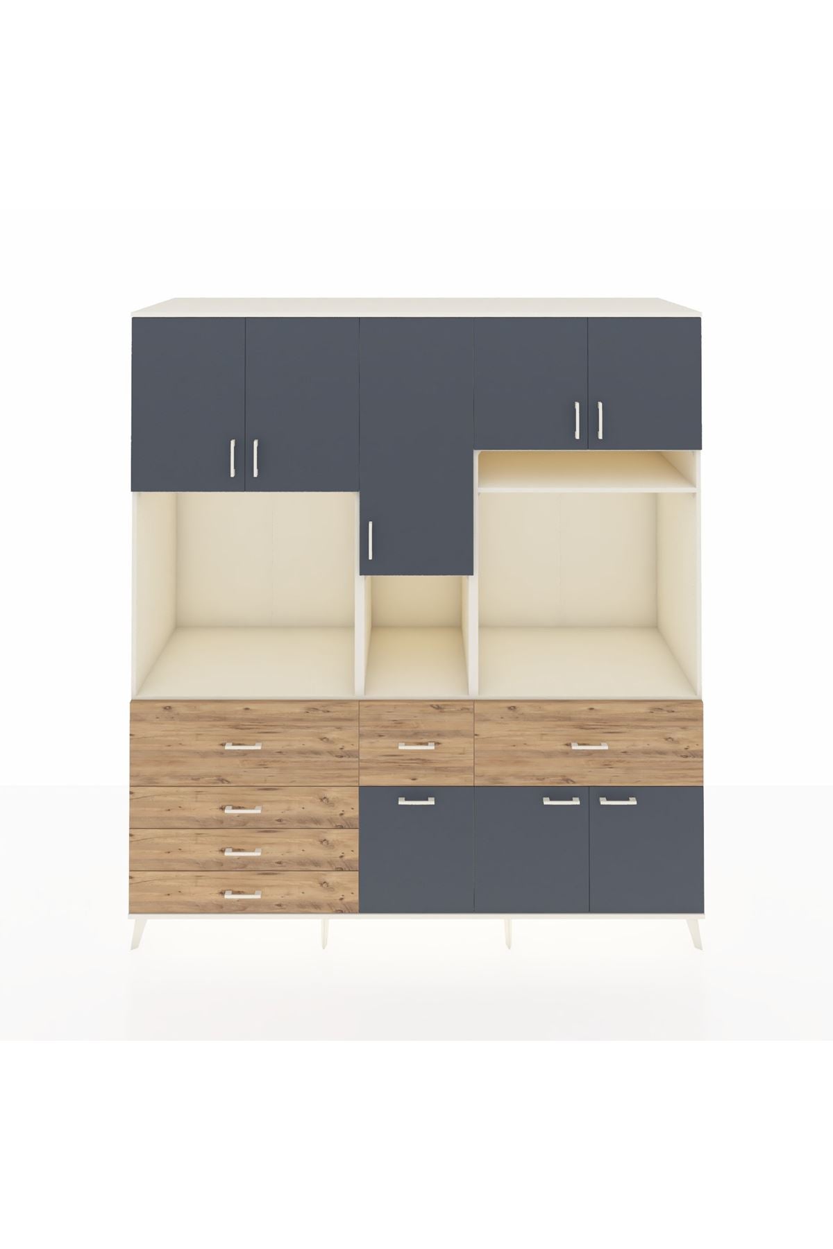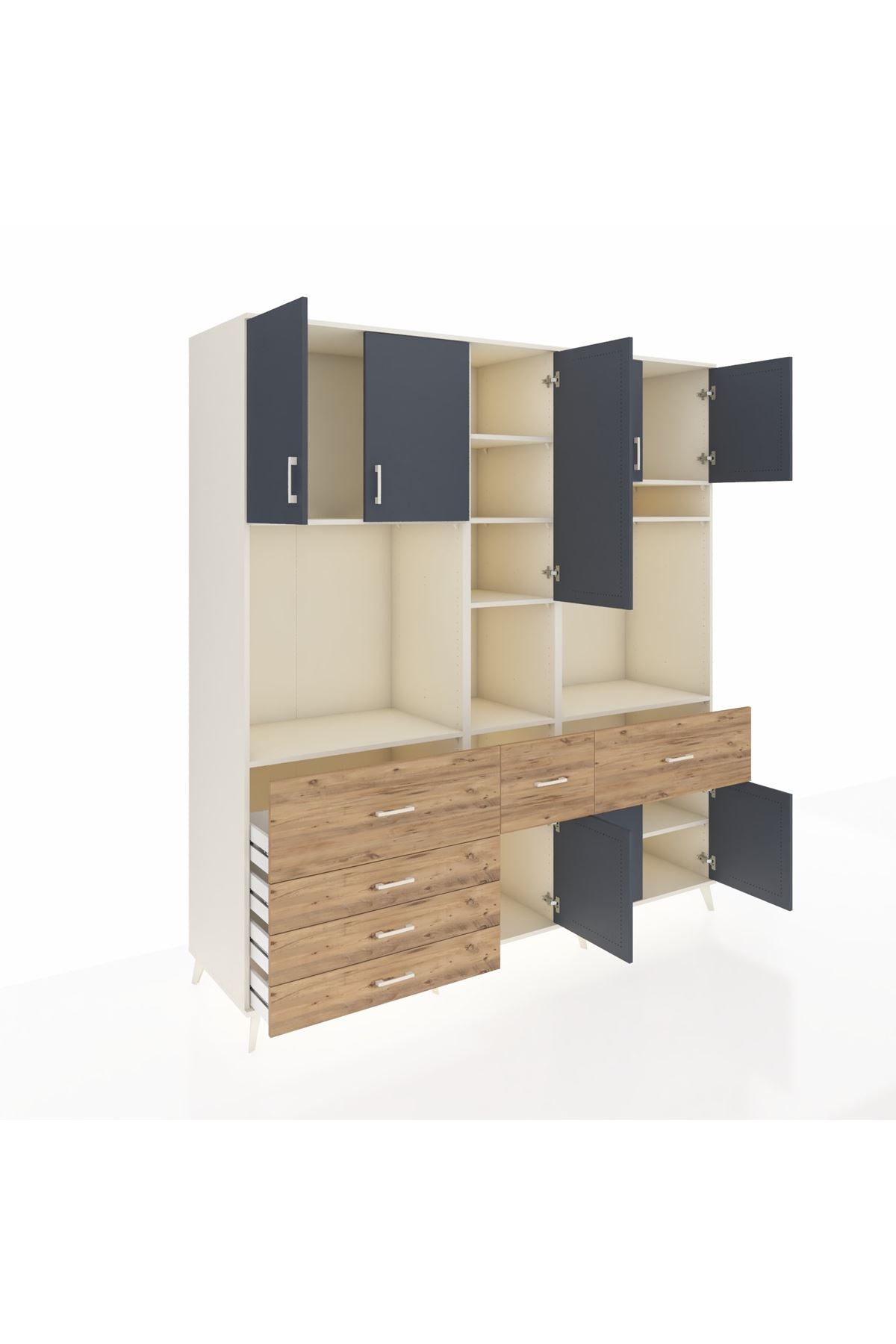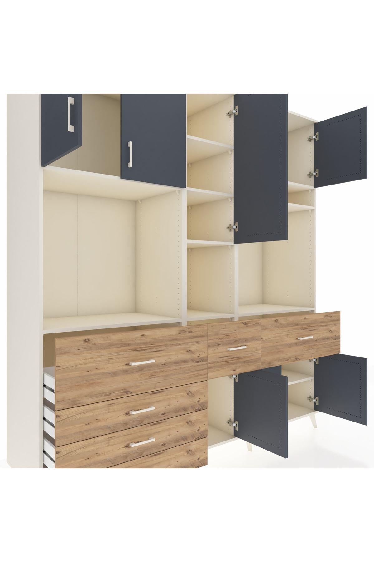 Kronos Dolap 10 Raflı 6 Çekmeceli 8 Kapaklı 220x59x243 Aytaşı-Antrasit/Çam