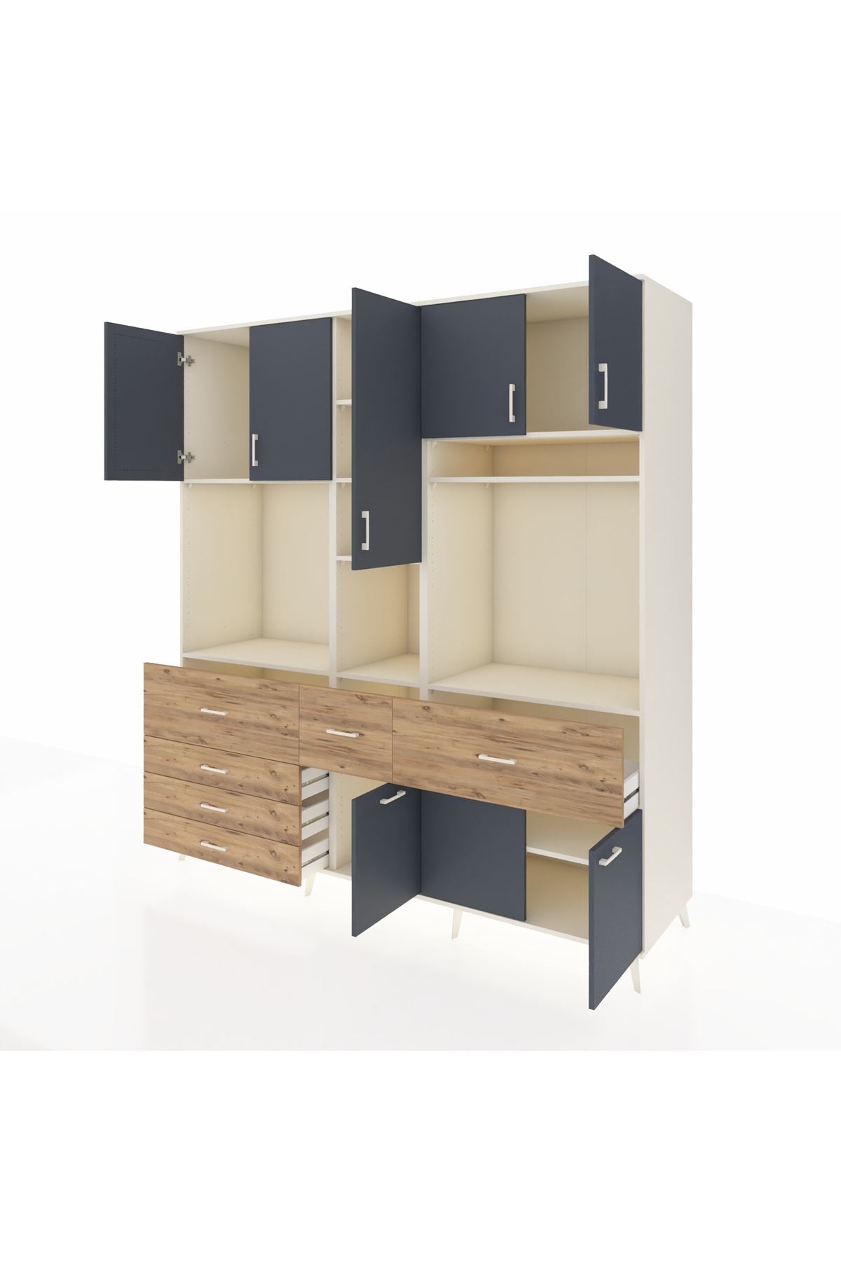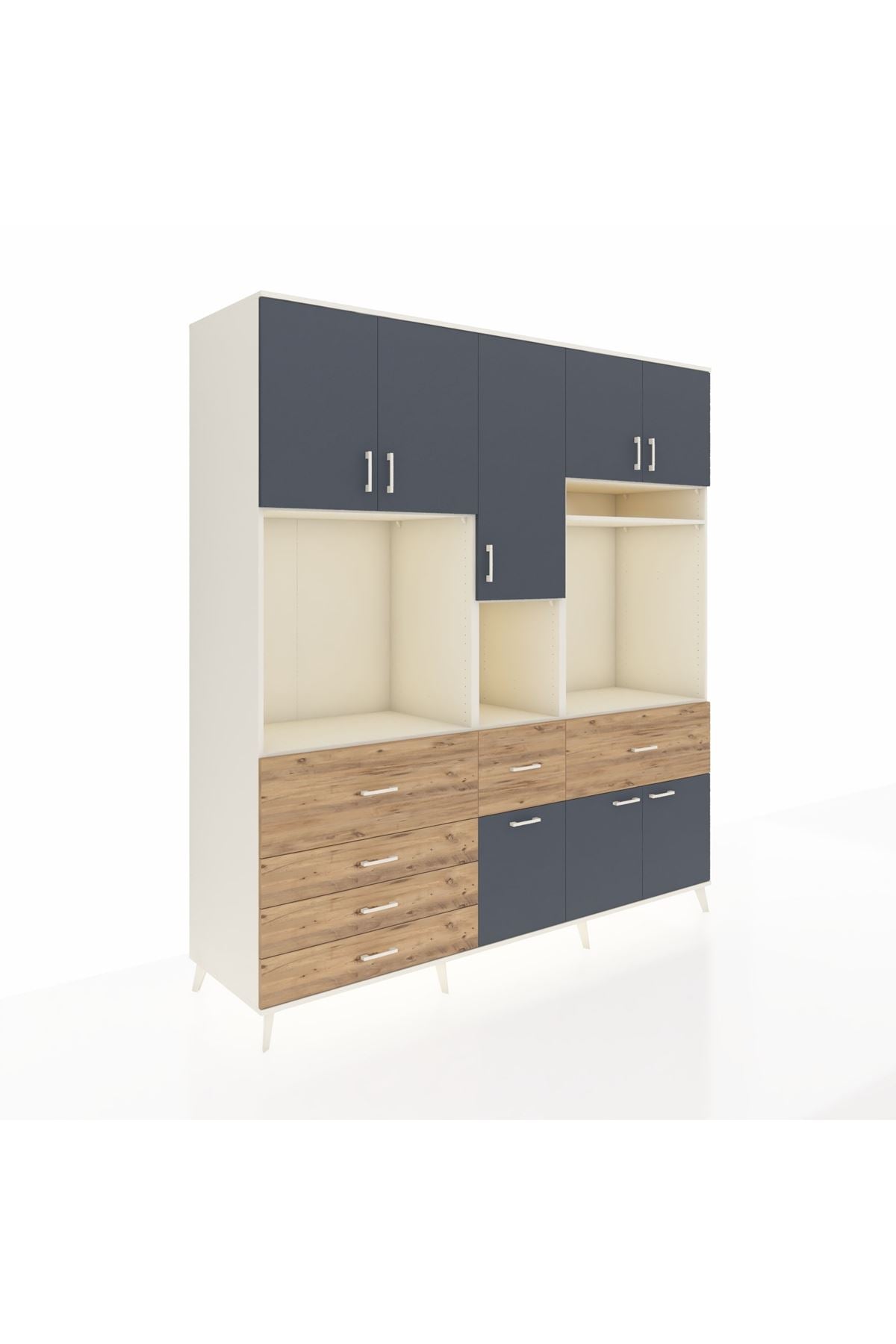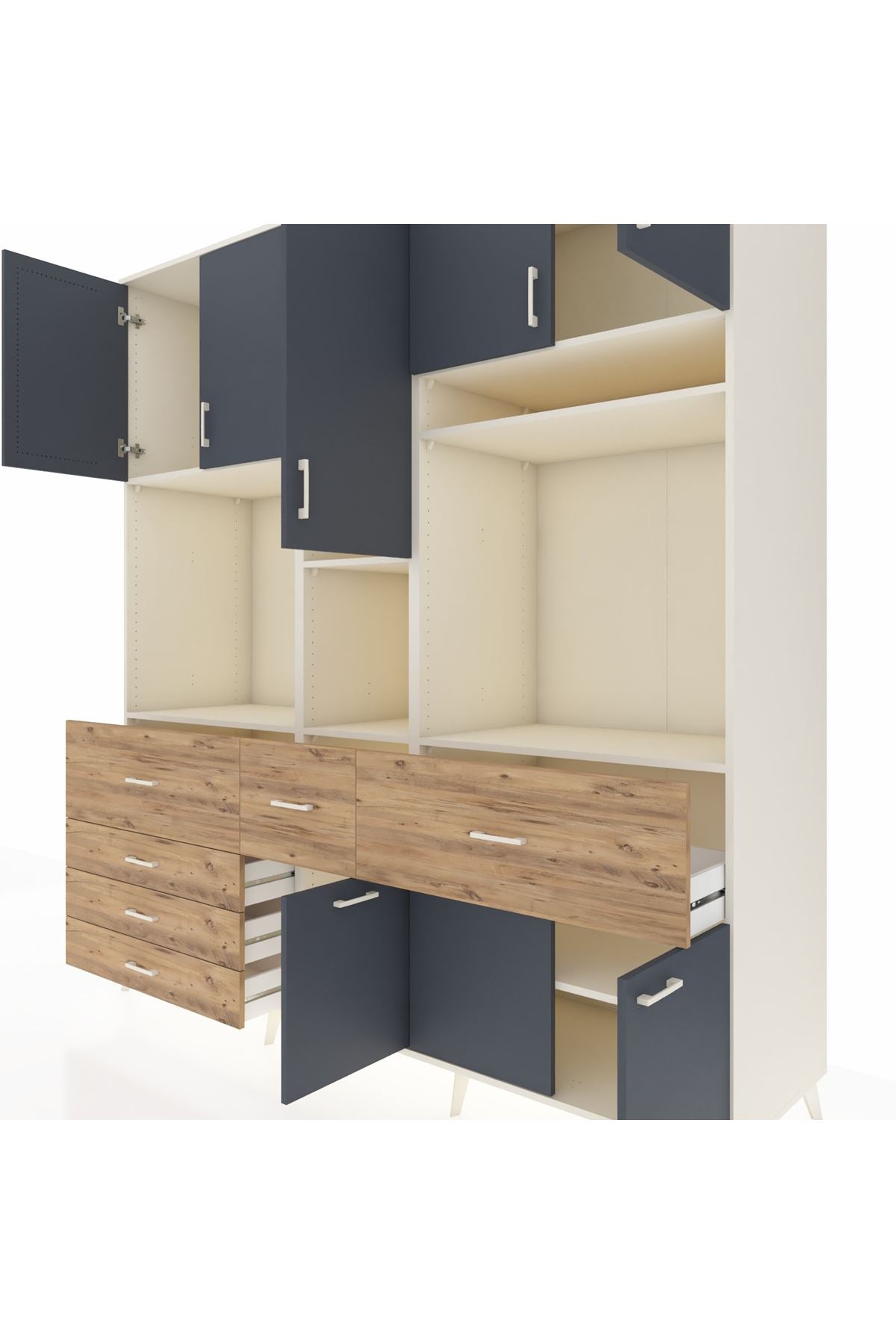Kronos Dolap 10 Raflı 6 Çekmeceli 8 Kapaklı 220x59x243 Aytaşı-Antrasit/Çam
