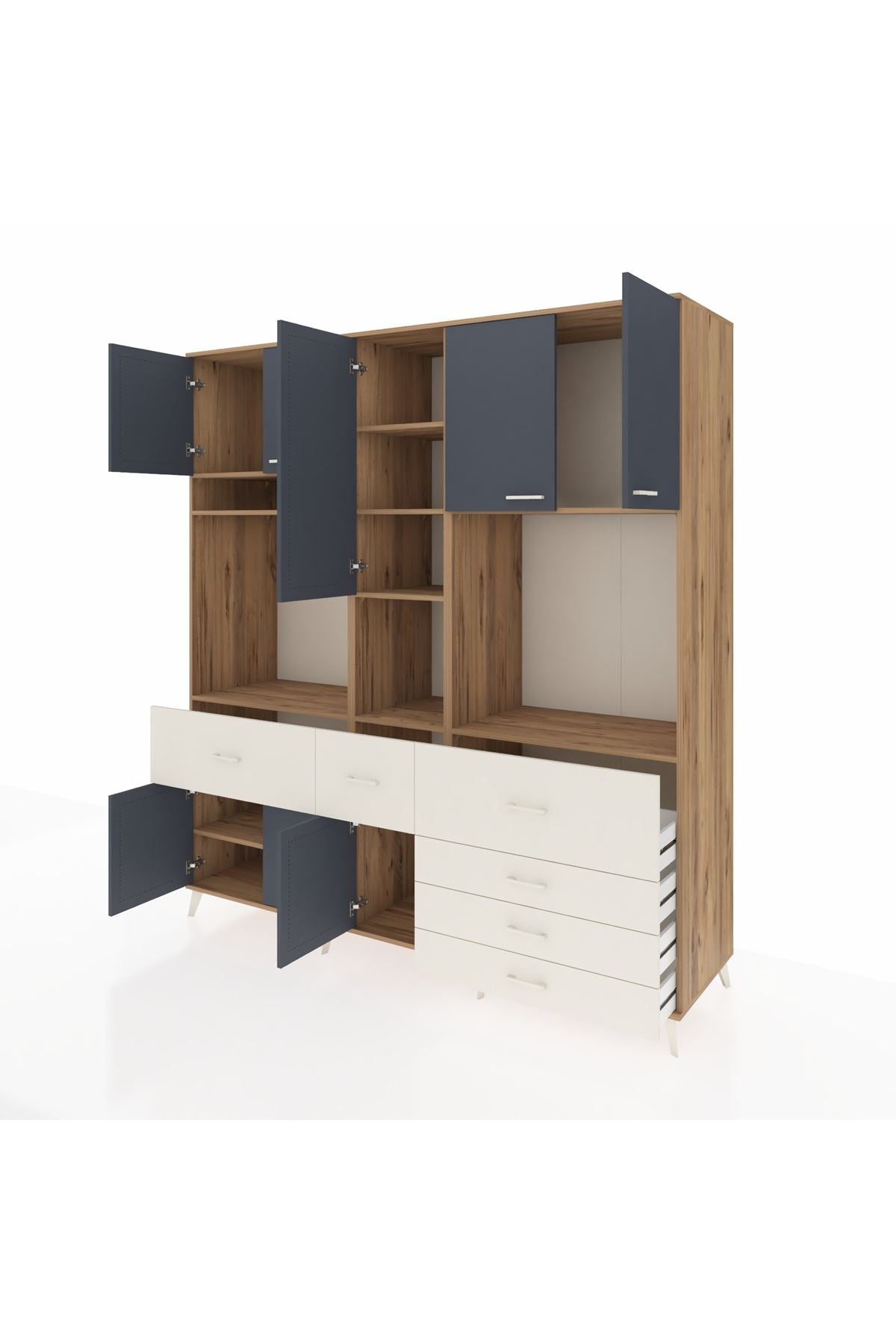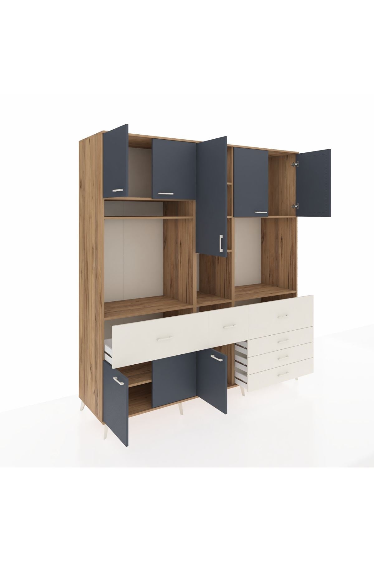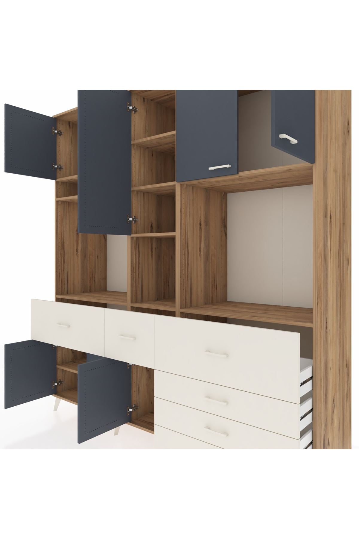Kronos Dolap 10 Raflı 6 Çekmeceli 8 Kapaklı 220x59x243 Çam-Antrasit/Aytaşı