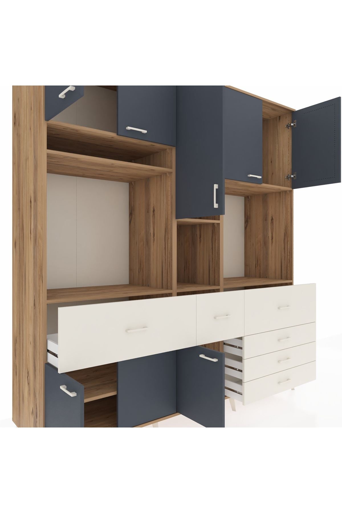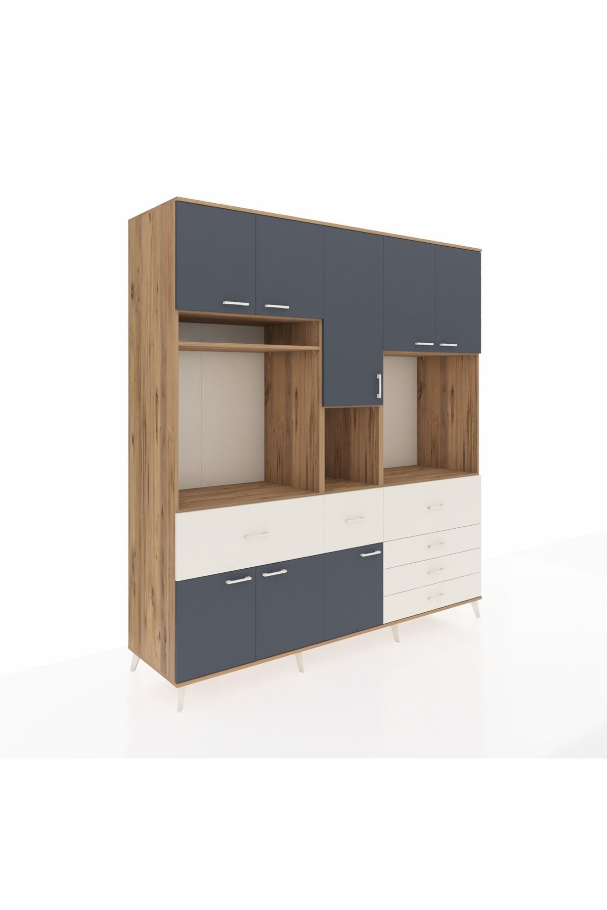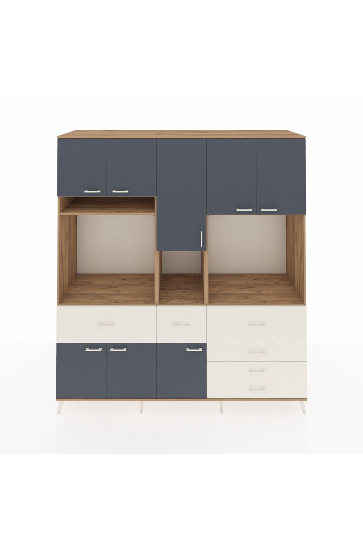 Kronos Dolap 10 Raflı 6 Çekmeceli 8 Kapaklı 220x59x243 Çam-Antrasit/Aytaşı