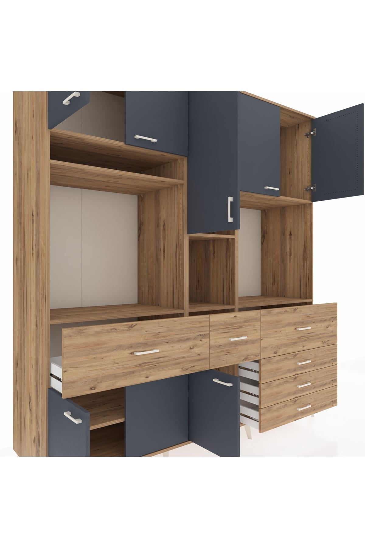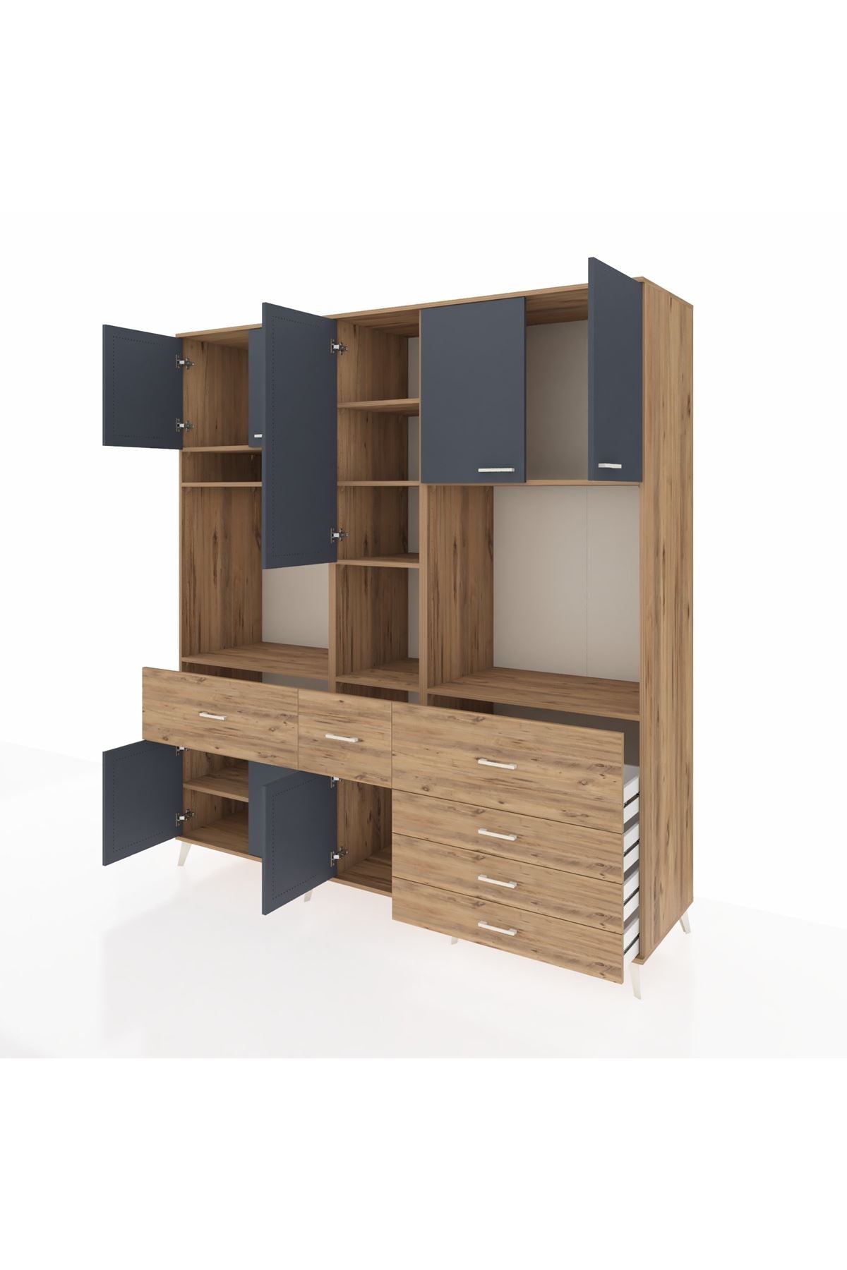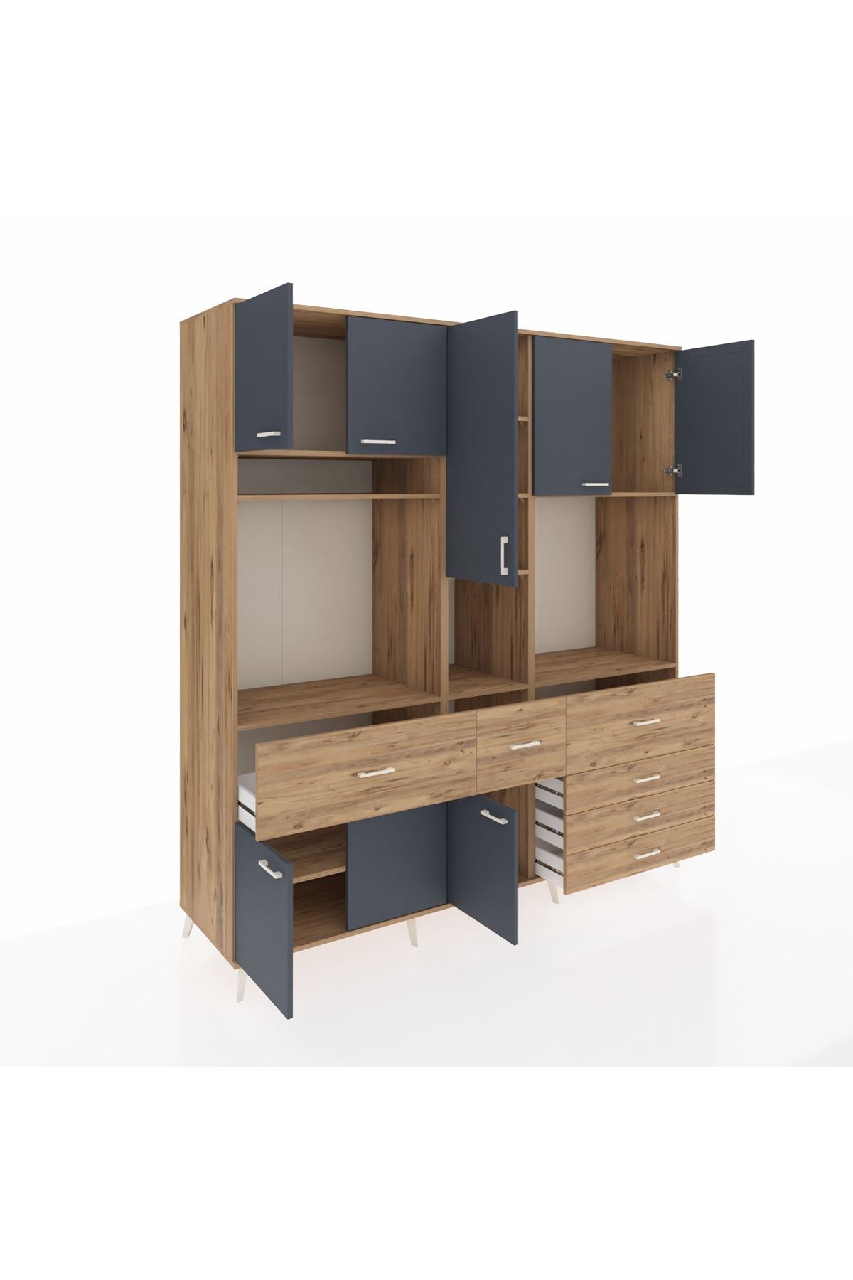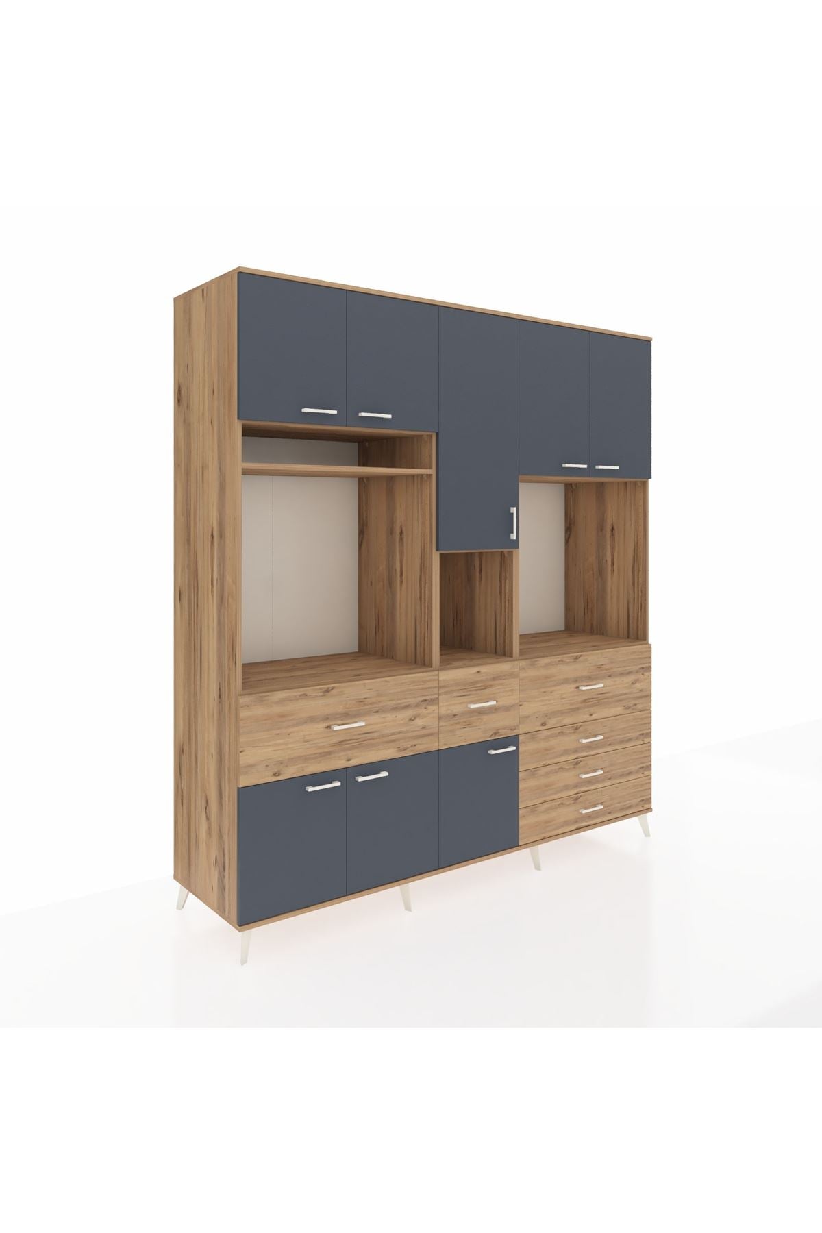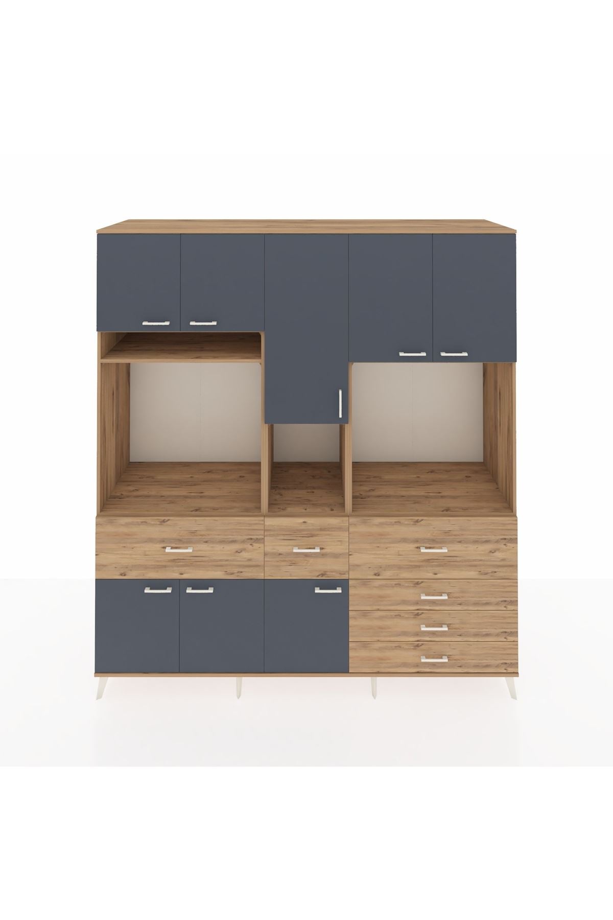 Kronos Dolap 10 Raflı 6 Çekmeceli 8 Kapaklı 220x59x243 Çam-Antrasit/Çam