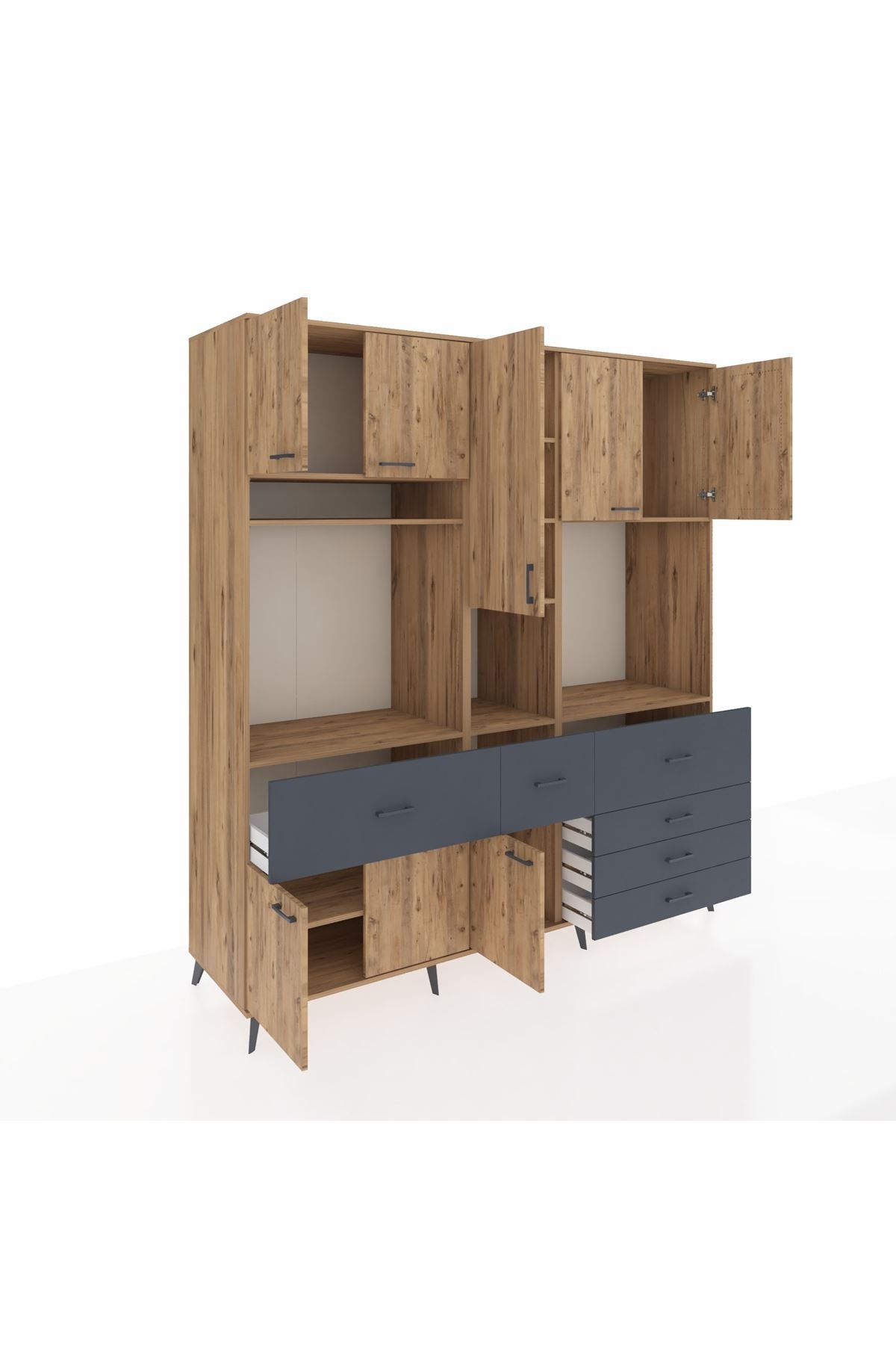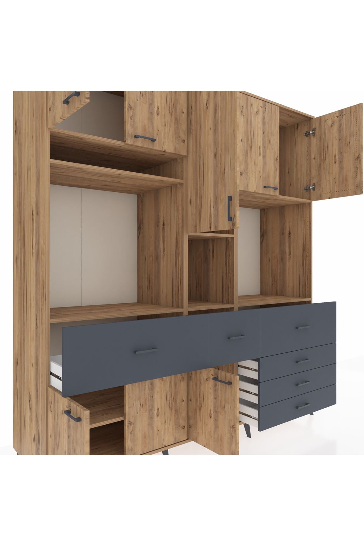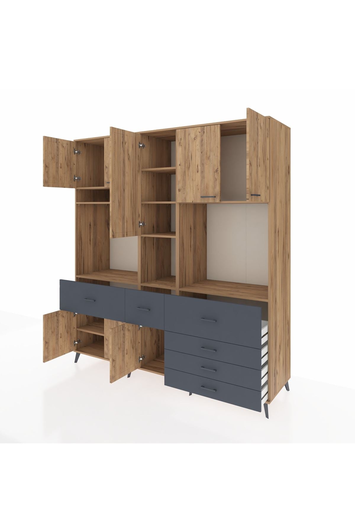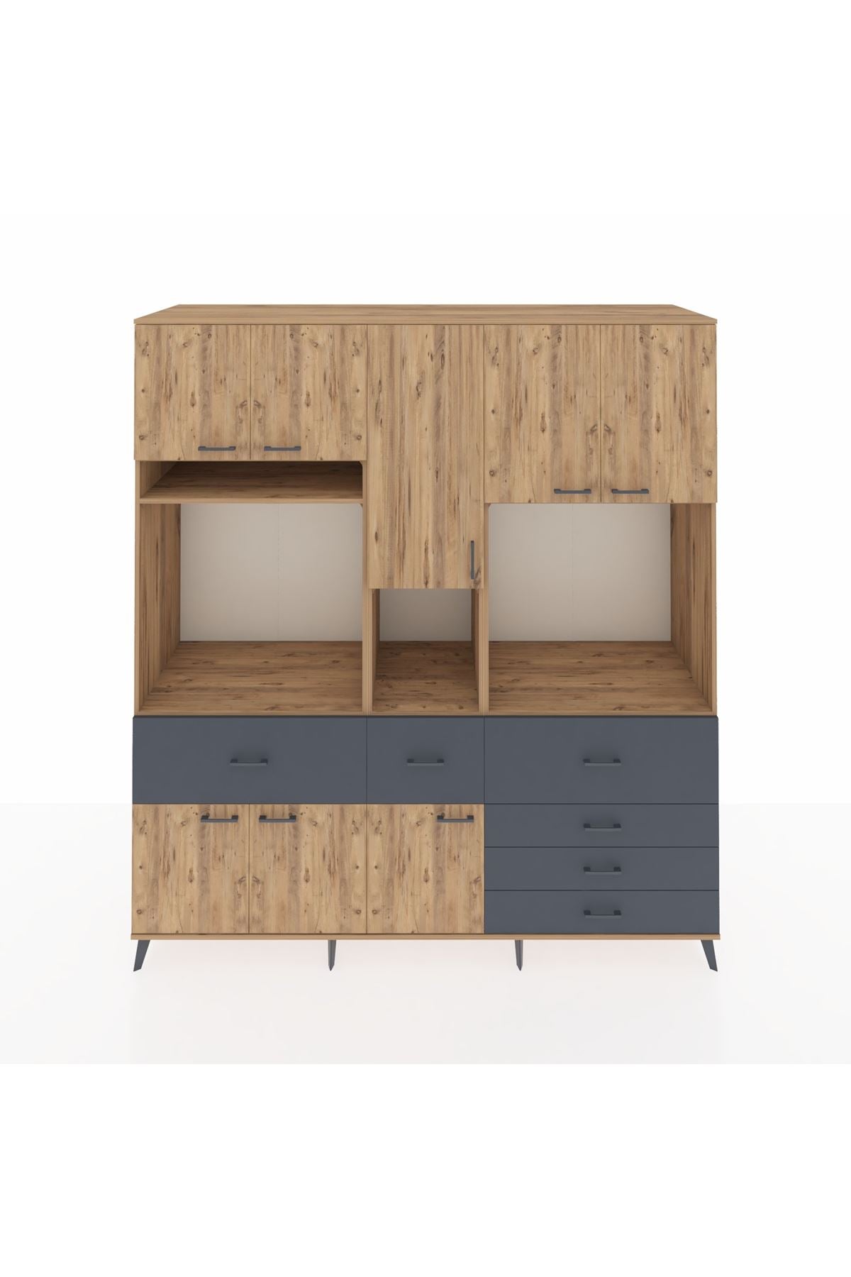 Kronos Dolap 10 Raflı 6 Çekmeceli 8 Kapaklı 220x59x243 Çam-Çam/Antrasit