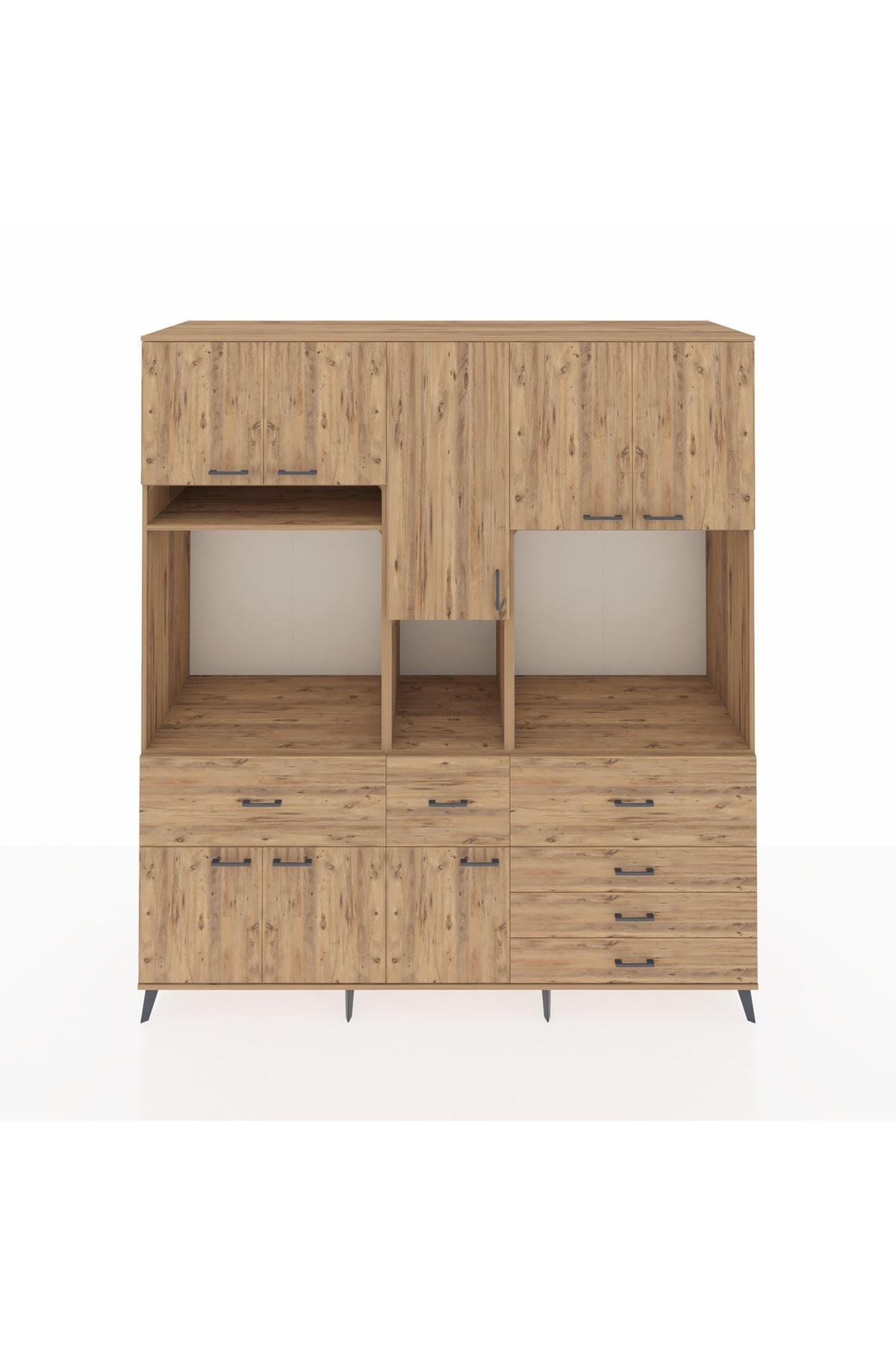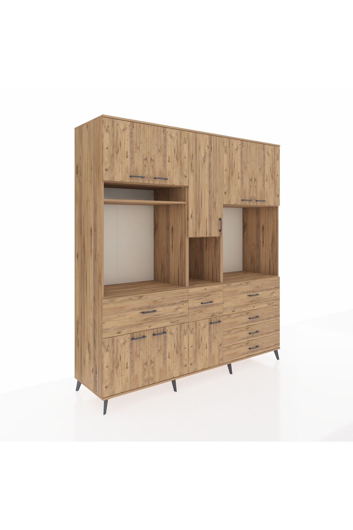 Kronos Dolap 10 Raflı 6 Çekmeceli 8 Kapaklı 220x59x243 Çam-Çam/Çam