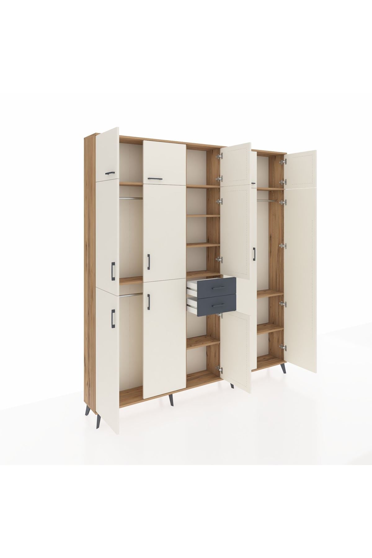 Arges Dolap 10 Raflı 2 Çekmeceli 3 Askılı 220x30x243 Çam-Aytaşı/Antrasit