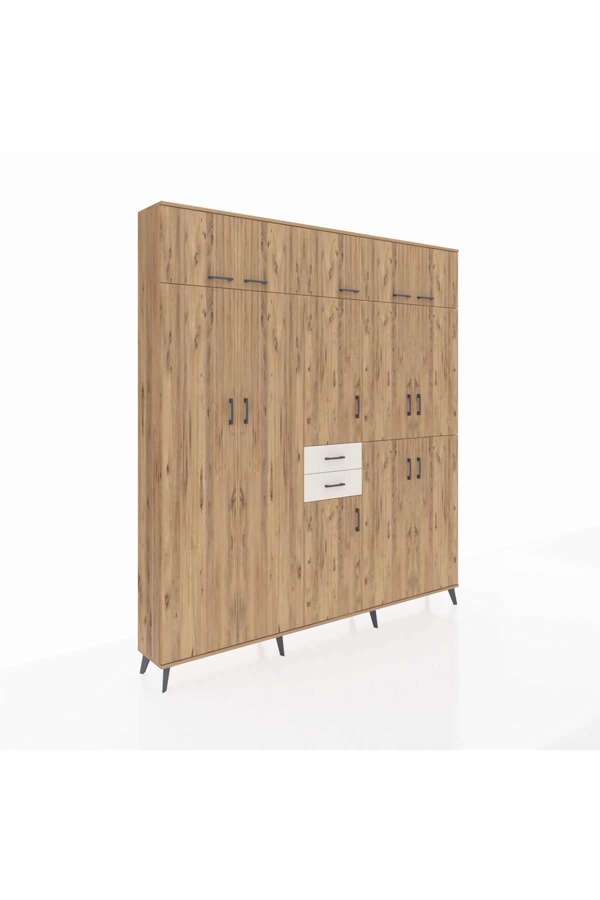 Arges Dolap 10 Raflı 2 Çekmeceli 3 Askılı 220x30x243 Çam-Çam/Aytaşı