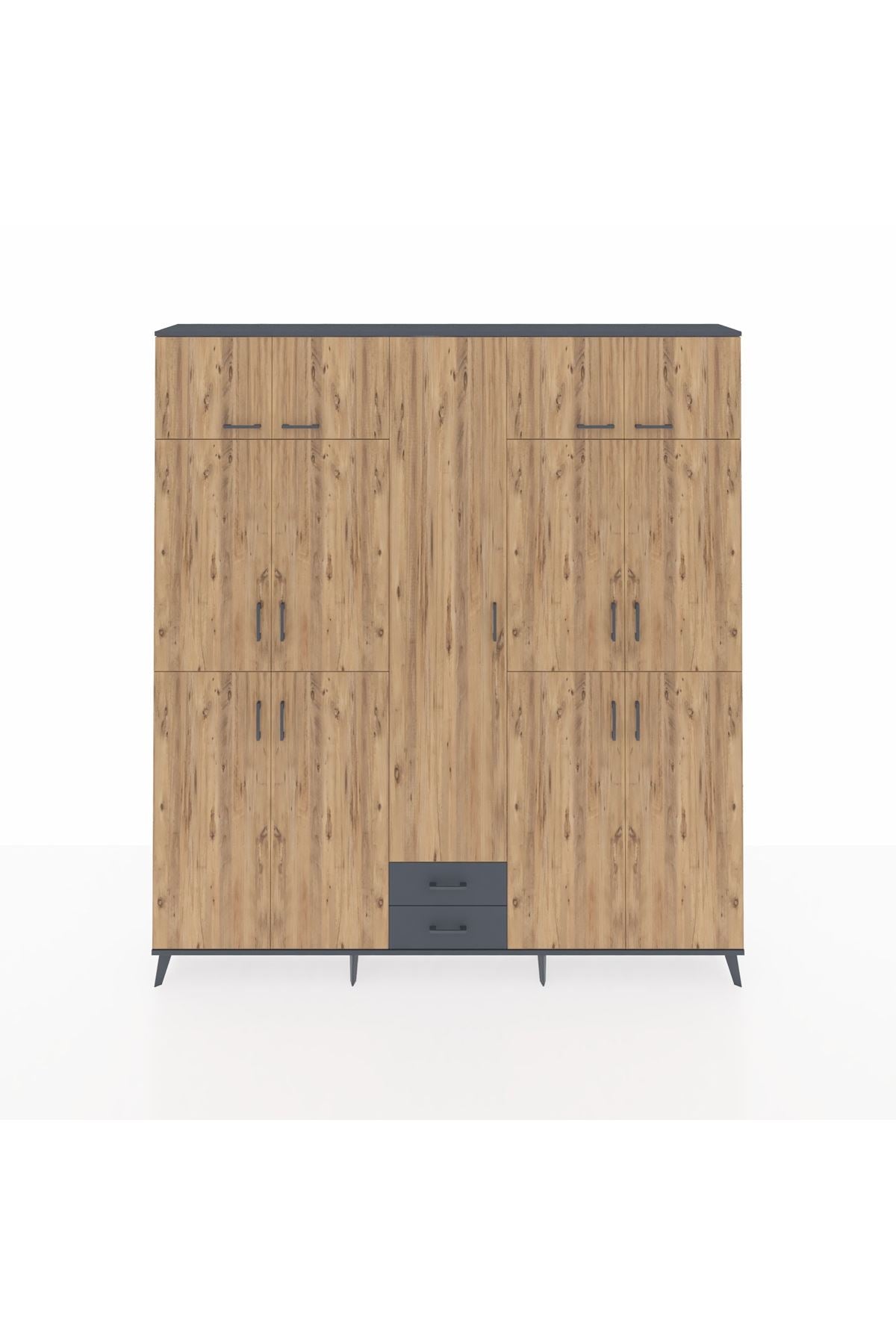 Arges Dolap 10 Raflı 2 Çekmeceli 4 Askılı 220x30x243 Çam-Çam/Antrasit