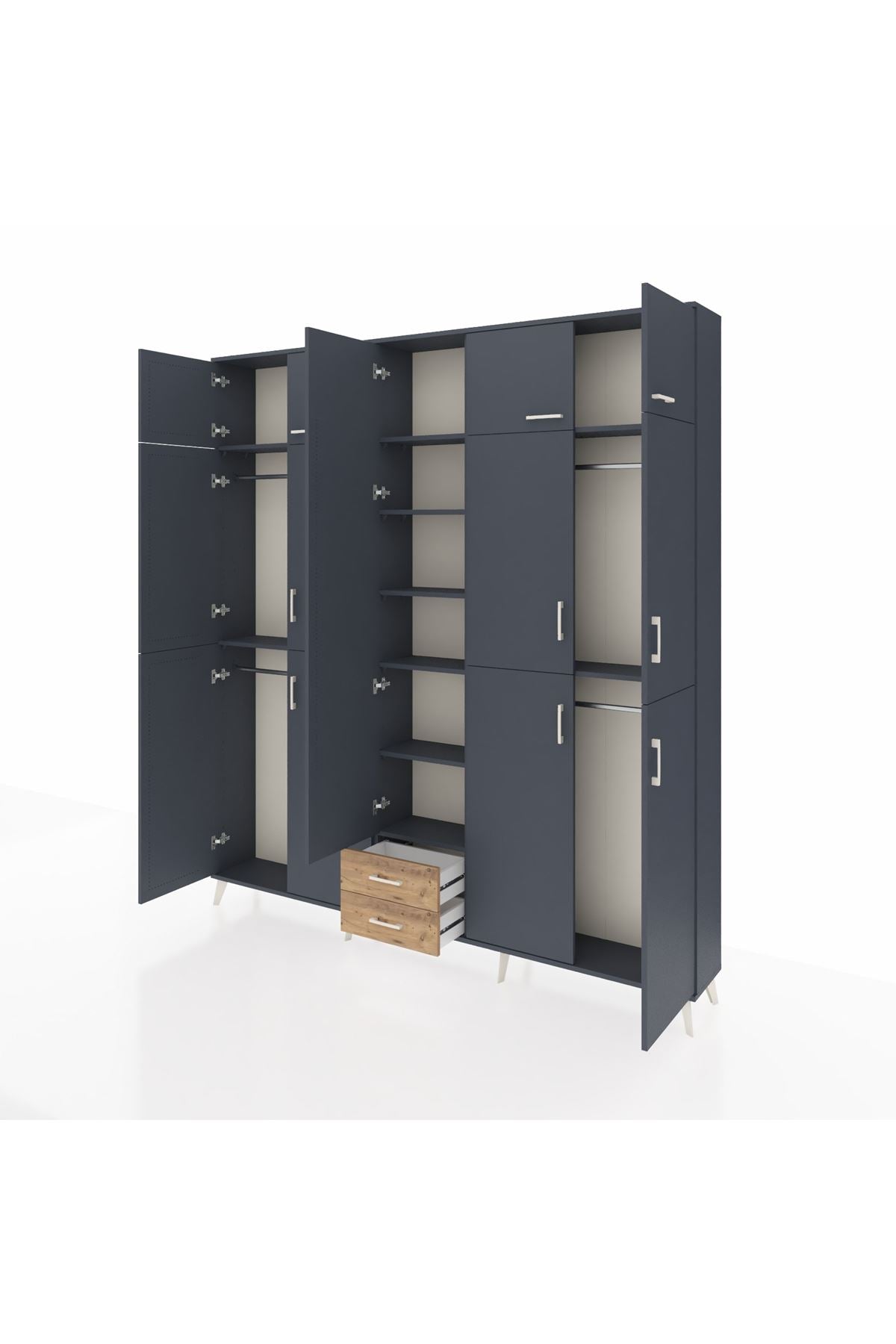 Arges Dolap 10 Raflı 2 Çekmeceli 4 Askılı 220x30x243 Antrasit-Antrasit/Çam