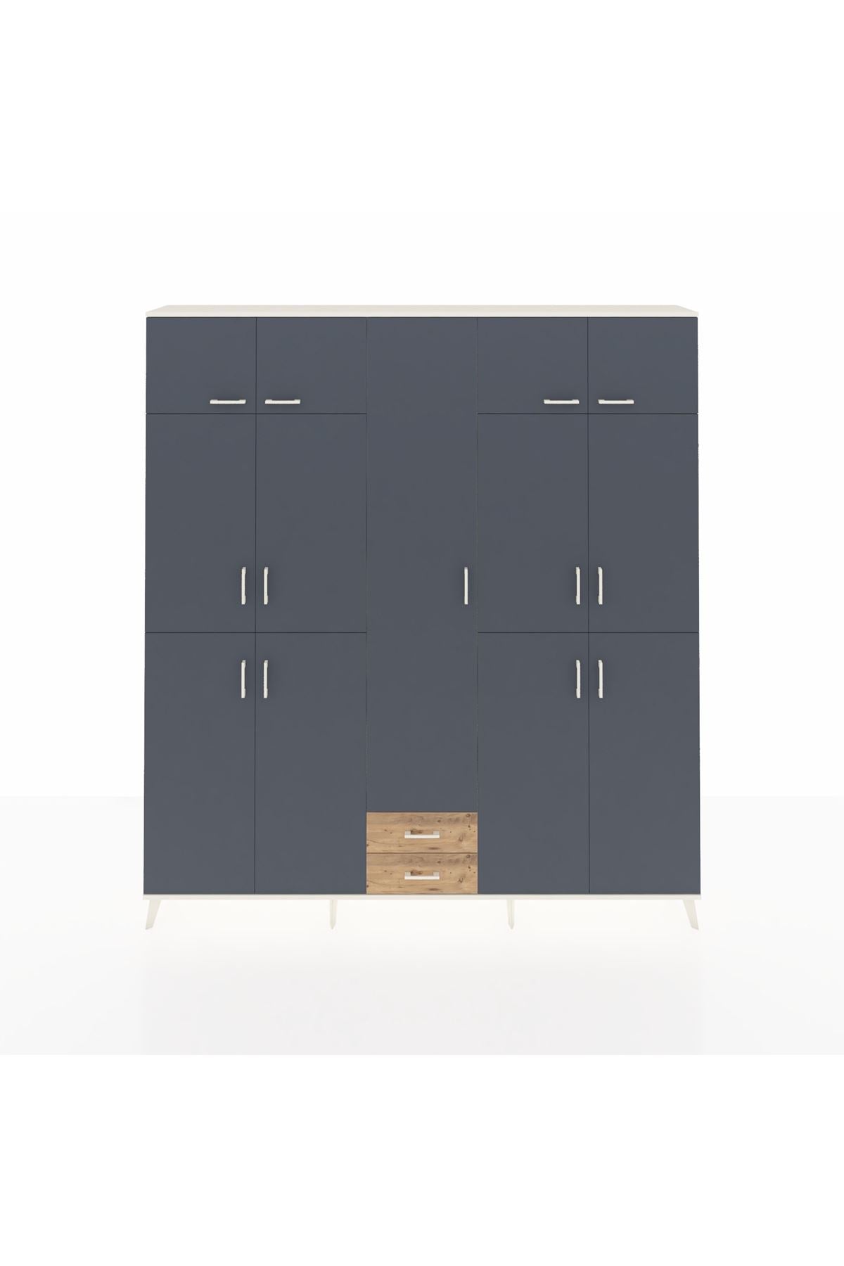 Arges Dolap 10 Raflı 2 Çekmeceli 4 Askılı 220x30x243 Aytaşı-Antrasit/Çam