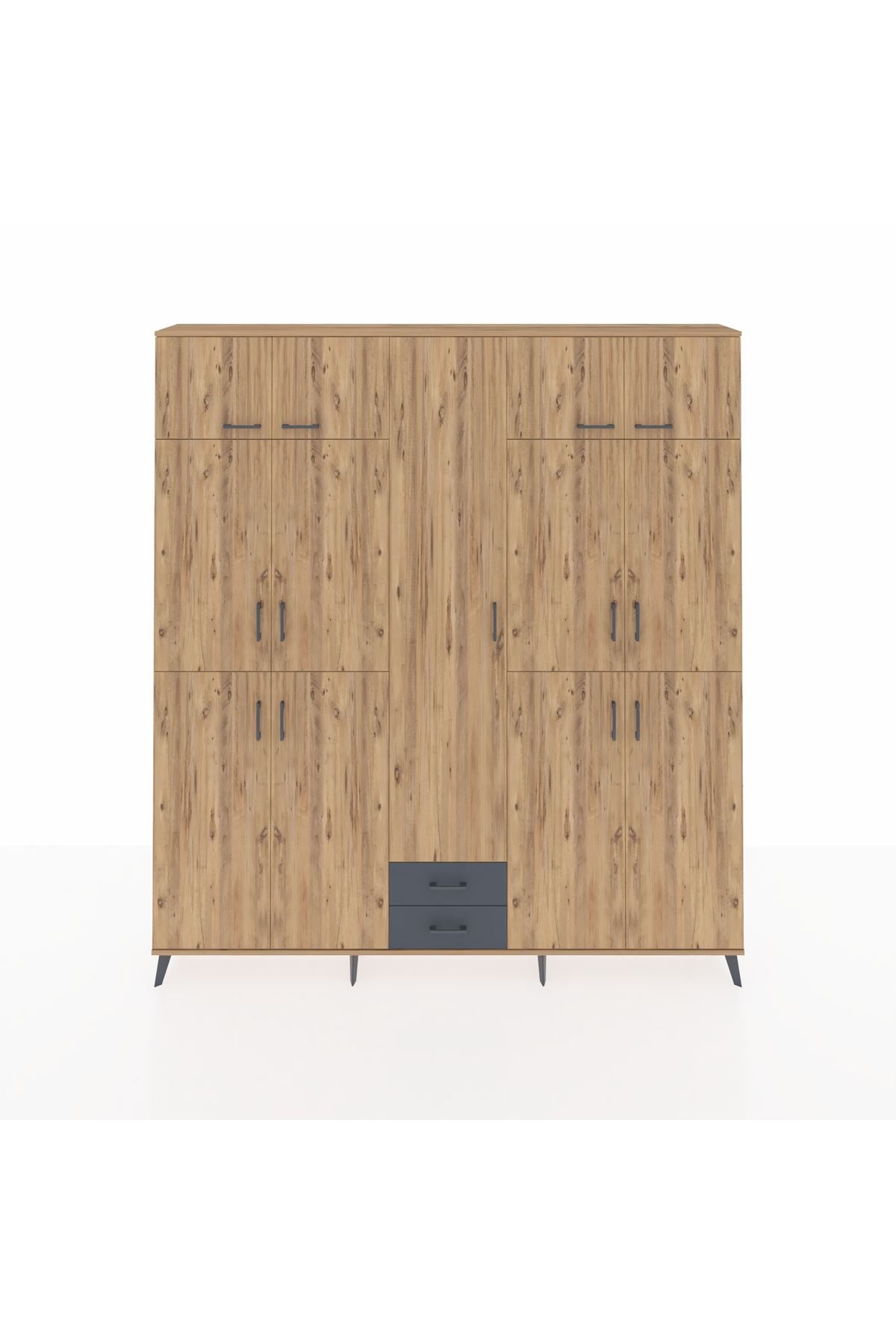 Arges Dolap 10 Raflı 2 Çekmeceli 4 Askılı 220x30x243 Çam-Çam/Antrasit