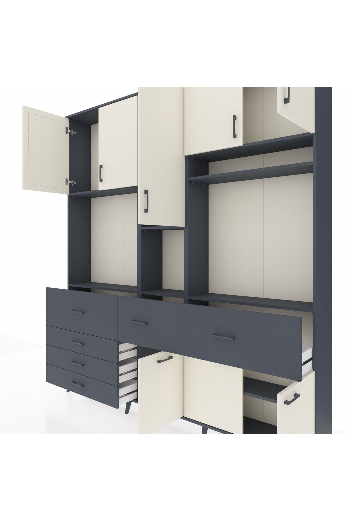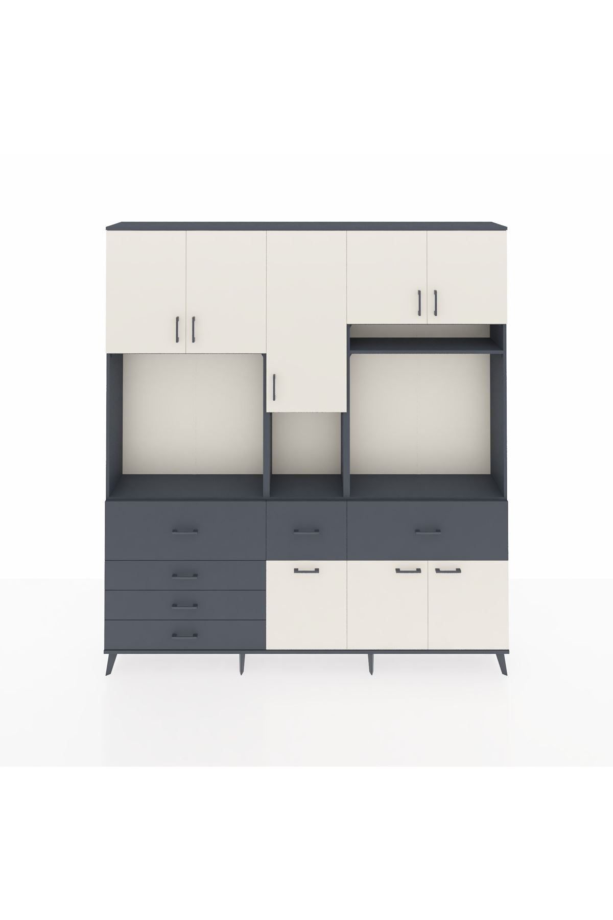 Arges Dolap 10 Raflı 6 Çekmeceli 8 Kapaklı 220x30x243 Antrasit-Aytaşı/Antrasit