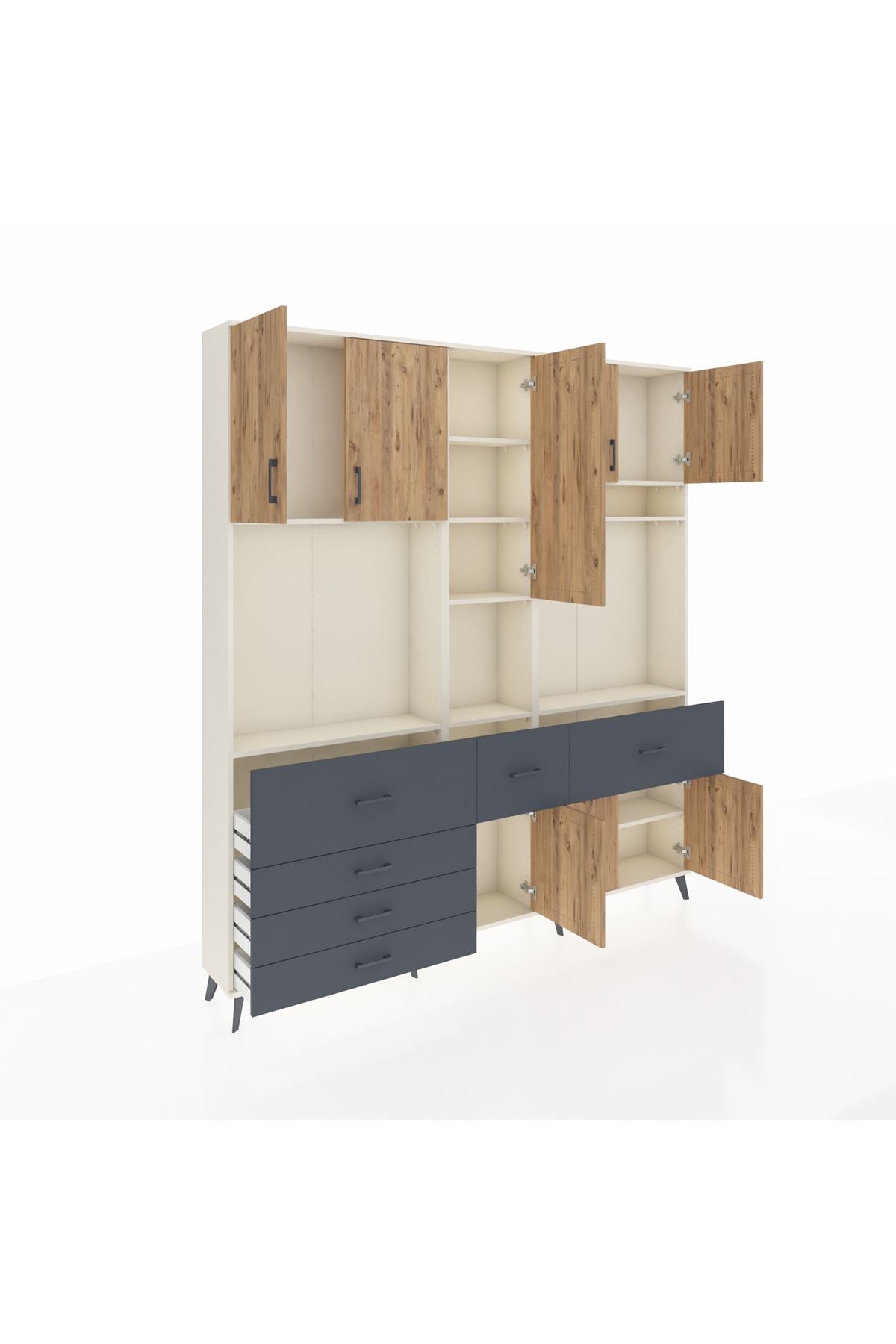Arges Dolap 10 Raflı 6 Çekmeceli 8 Kapaklı 220x30x243 Antrasit-Çam/Antrasit