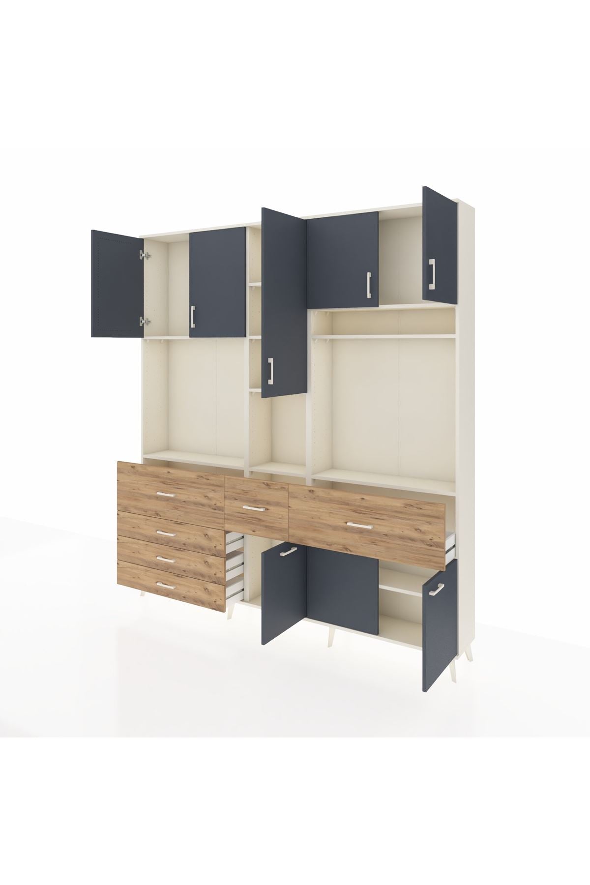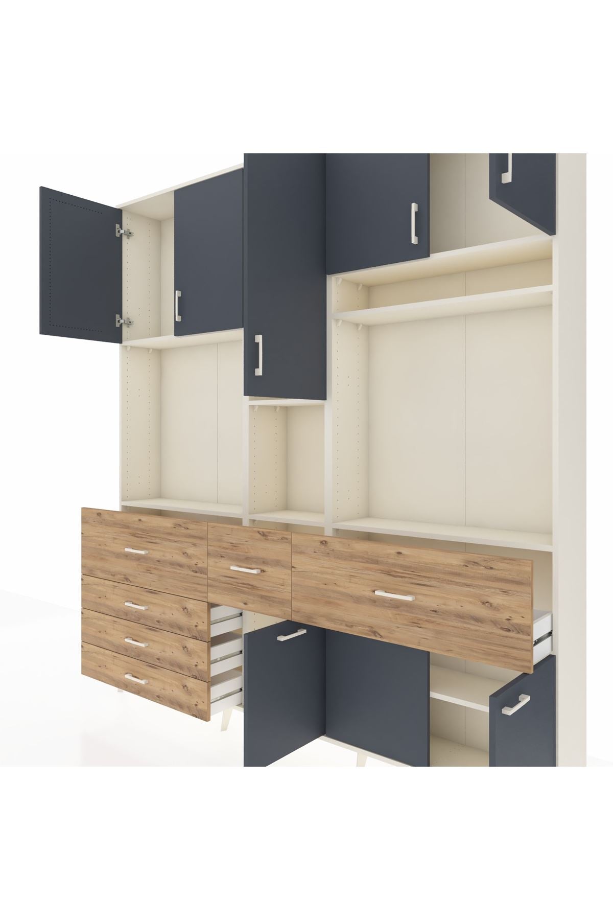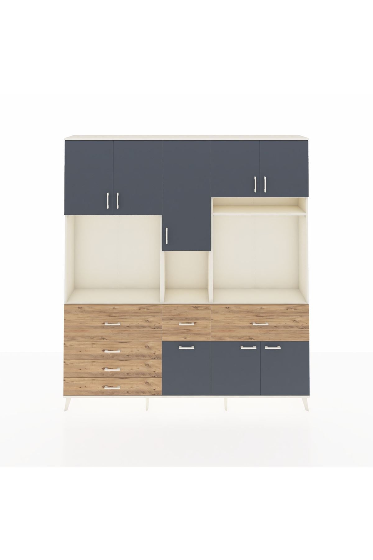 Arges Dolap 10 Raflı 6 Çekmeceli 8 Kapaklı 220x30x243 Aytaşı-Antrasit/Çam