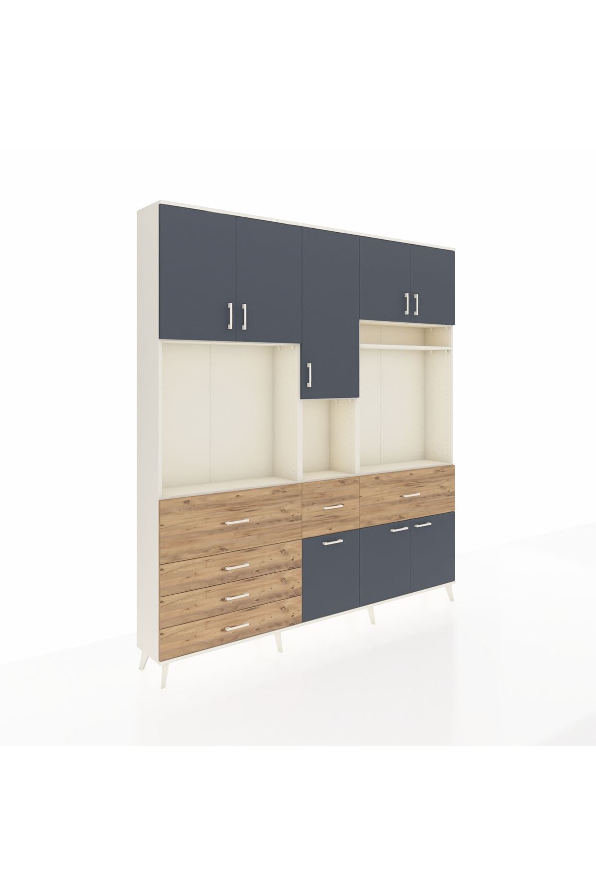 Arges Dolap 10 Raflı 6 Çekmeceli 8 Kapaklı 220x30x243 Aytaşı-Antrasit/Çam📐 Ölçüler: