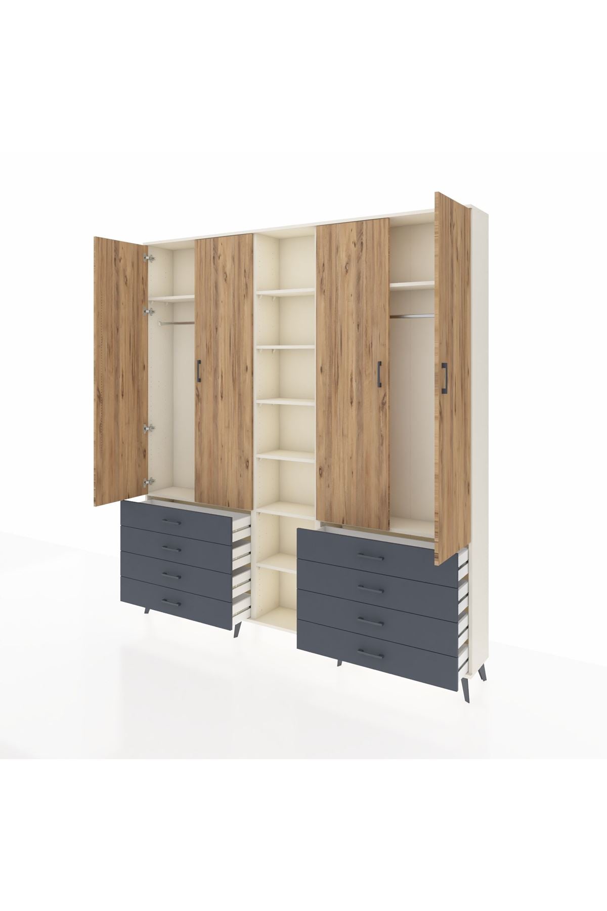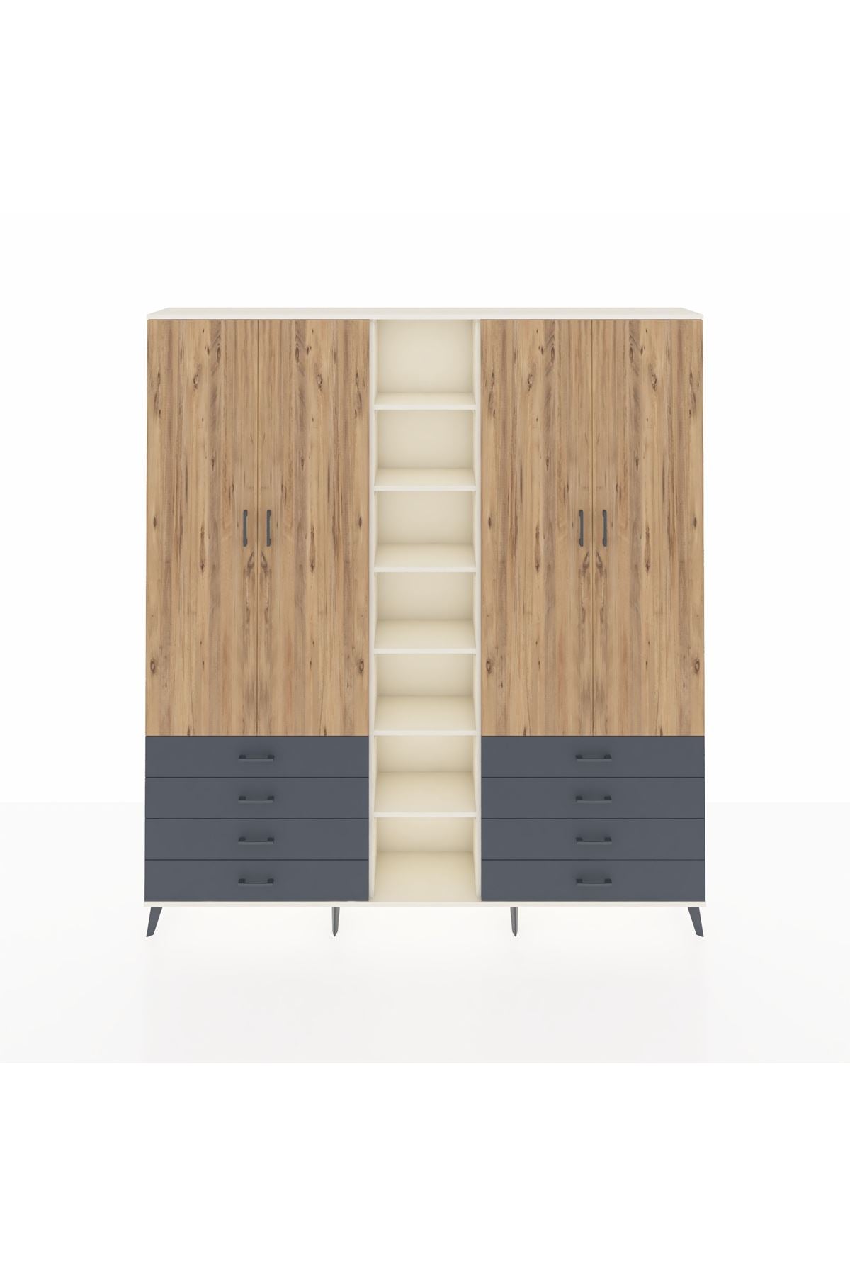 Arges Dolap 10 Raflı 8 Çekmeceli 2 Askılı 220x30x243 Çam-Çam/Antrasit