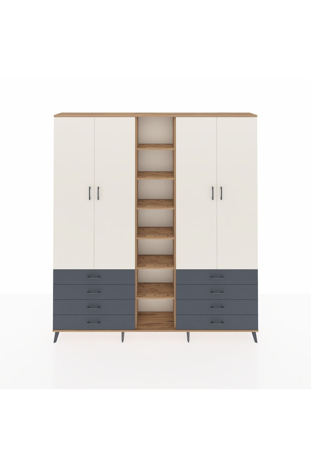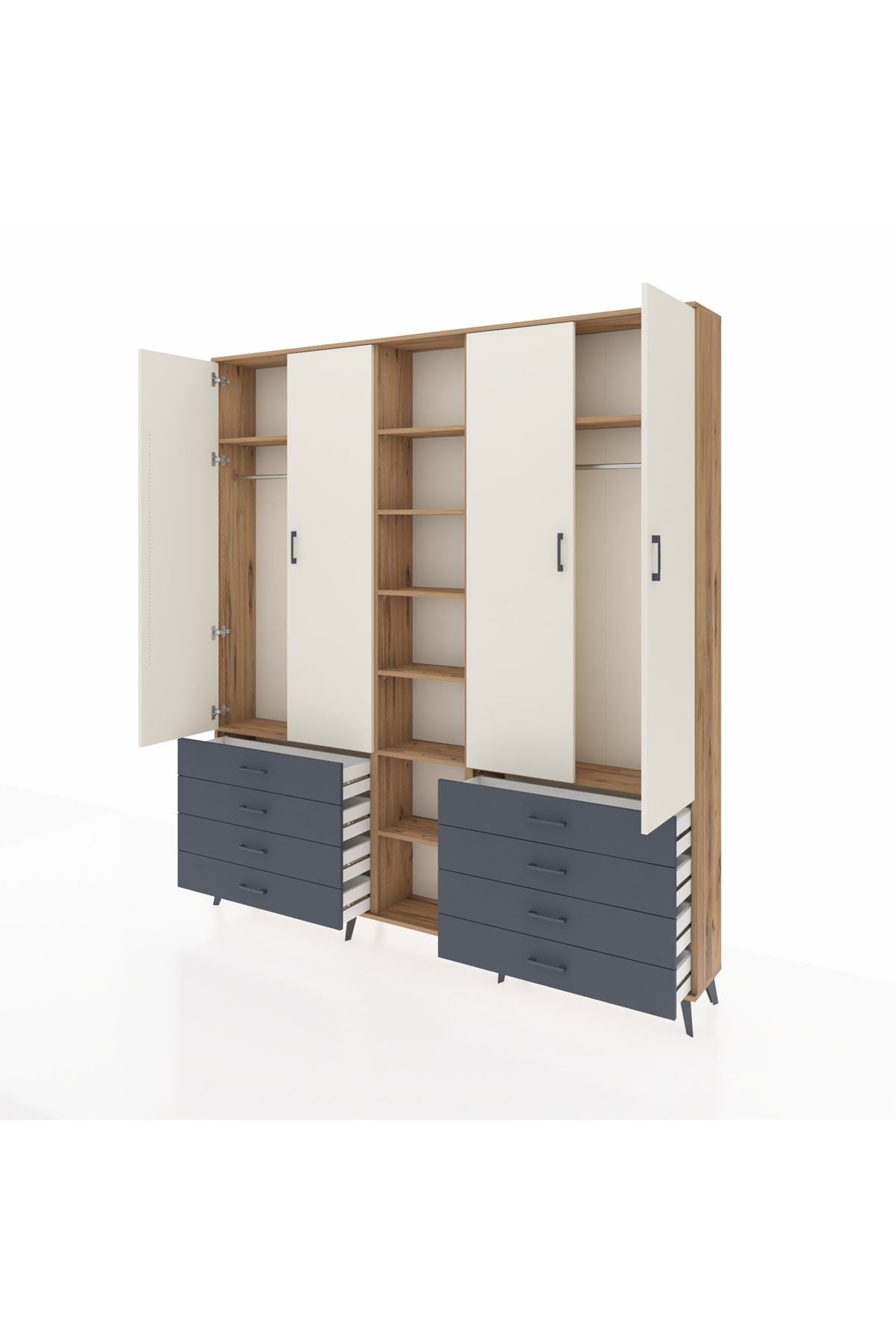 Arges Dolap 10 Raflı 8 Çekmeceli 2 Askılı 220x30x243 Çam-Aytaşı/Antrasit